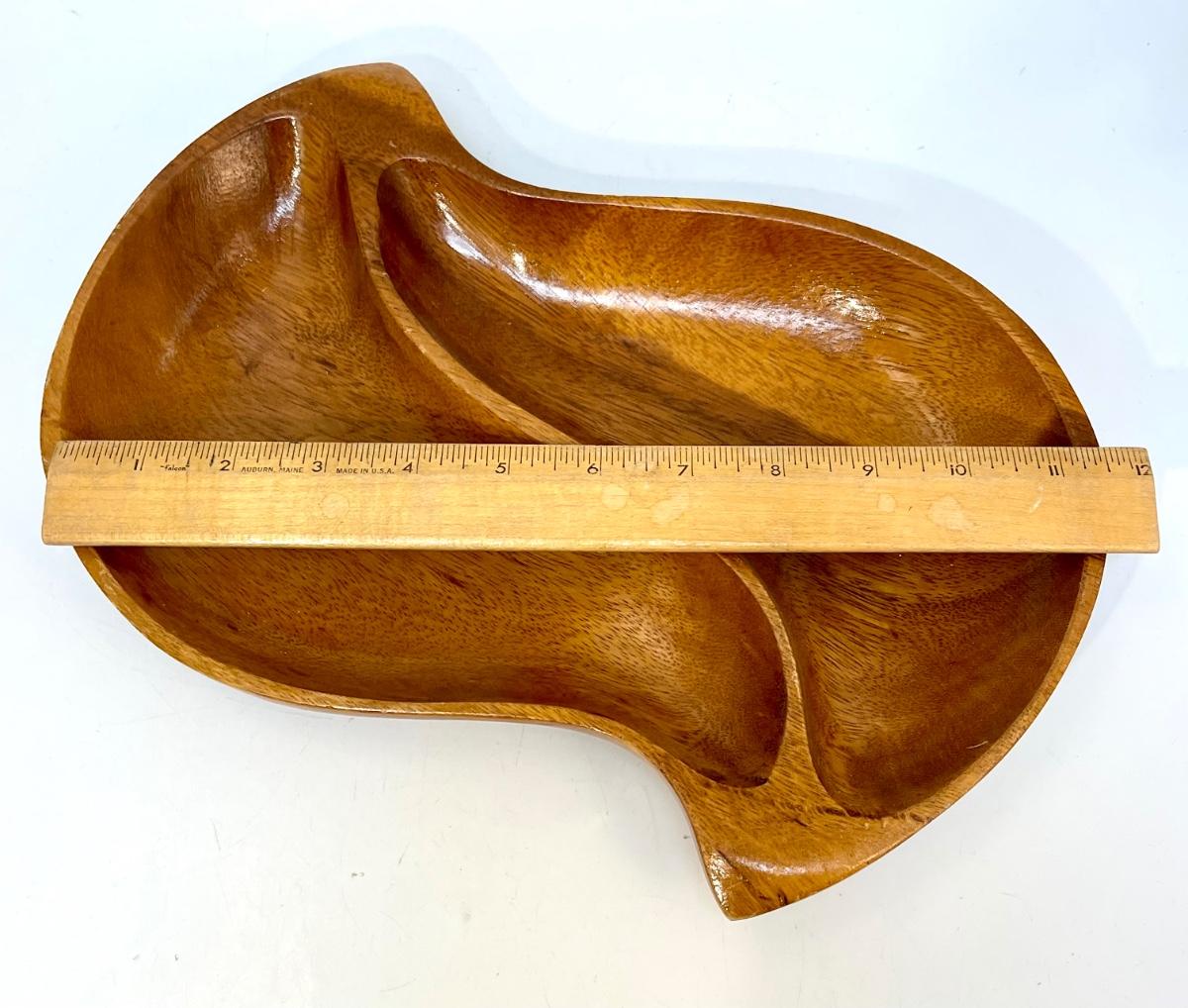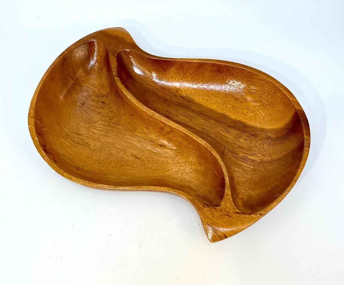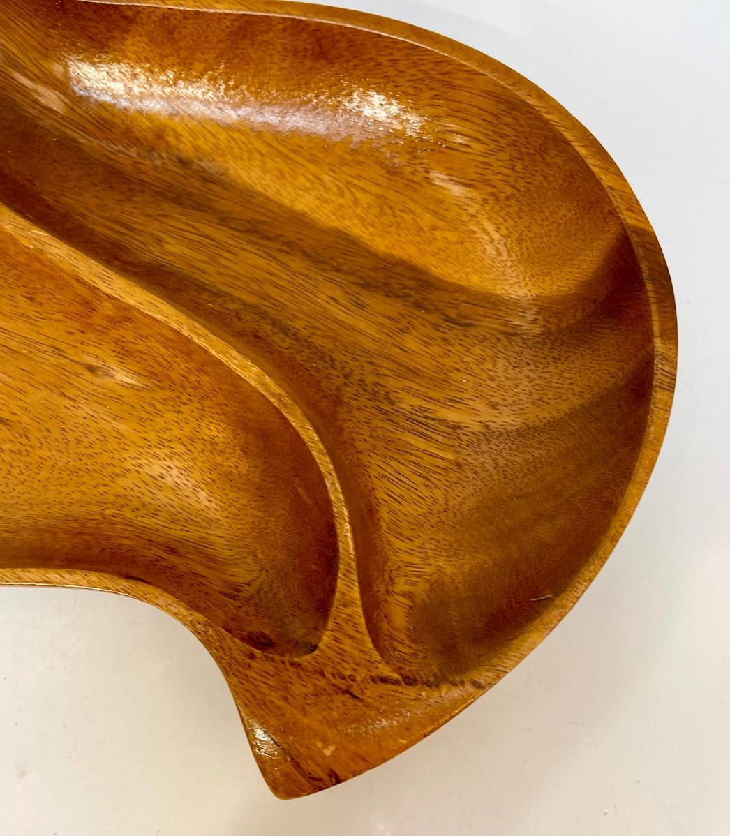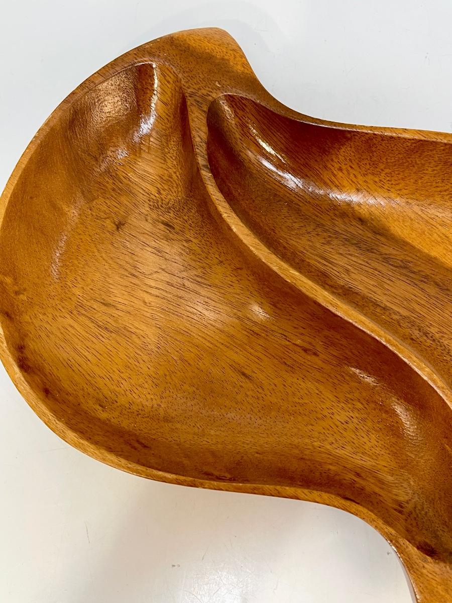 Vintage Retro Monkey Pod Wood Divided Swirl Bowl