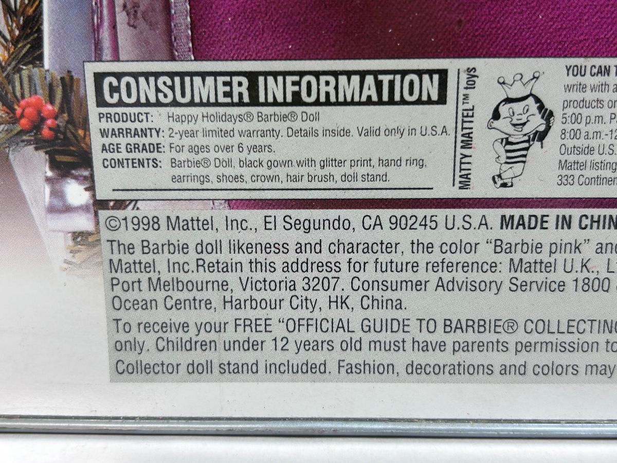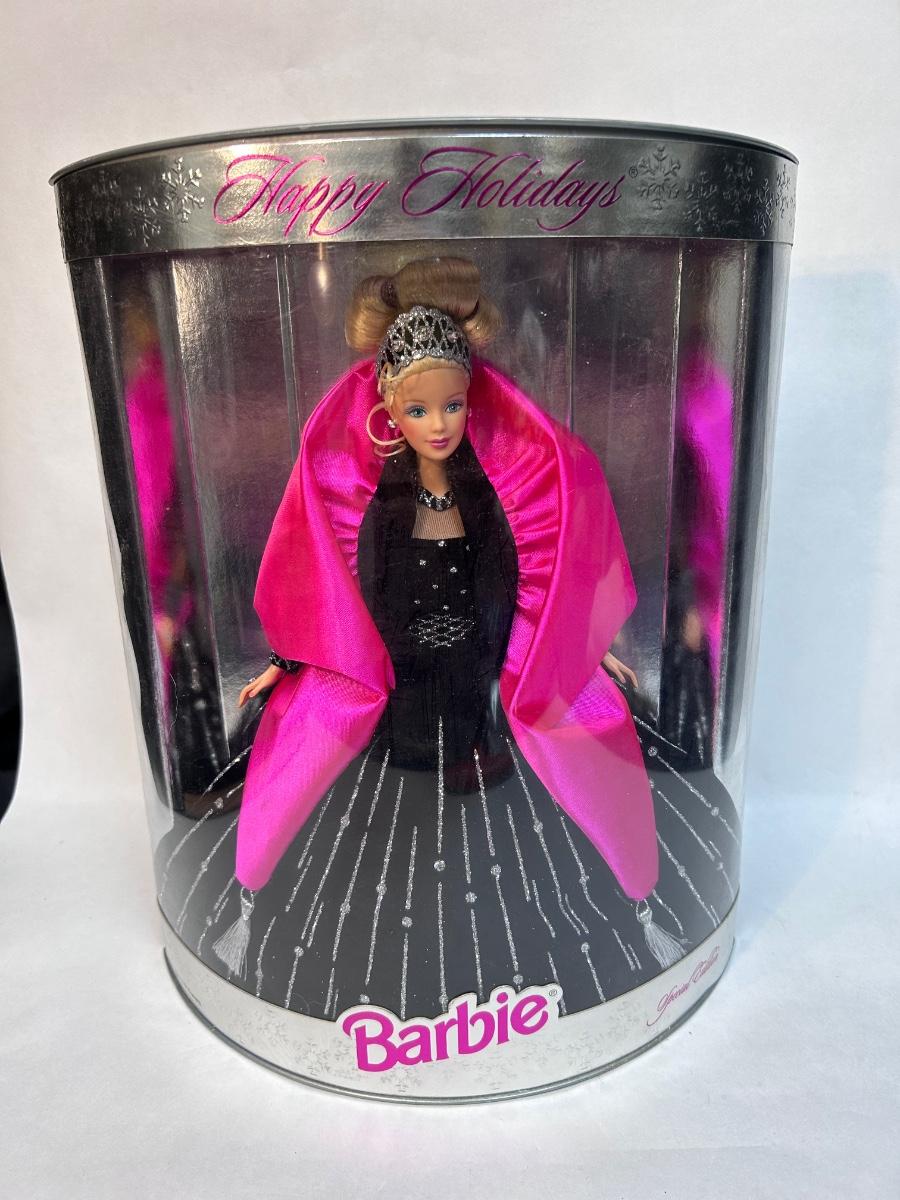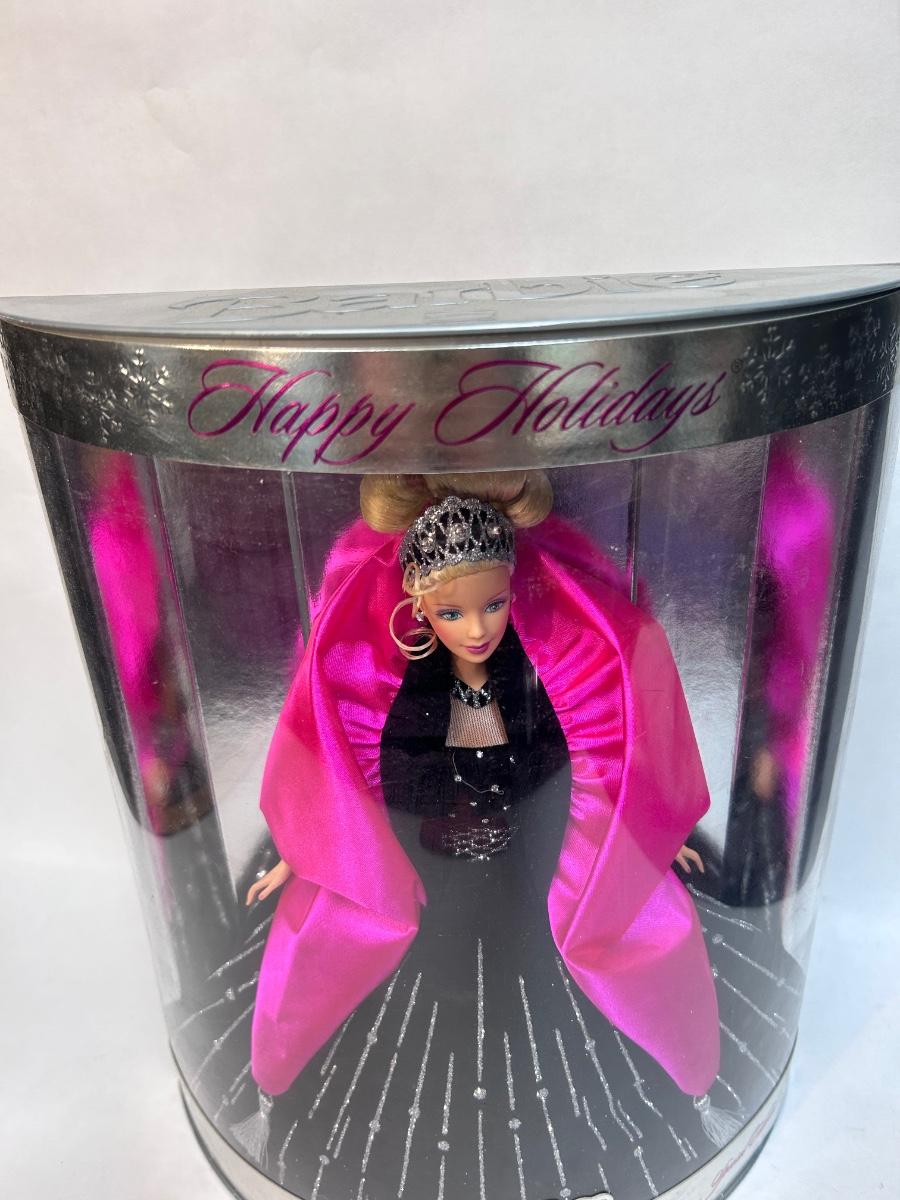 1998 Special Edition Happy Holidays Barbie New in Box #20200 Pink and Black Dress. In good condition, never removed from box. Hard plastic box top and bottom perfect for display.