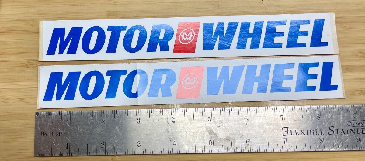 Pair of Vintage Motor Wheel Automotive Equipment Stickers