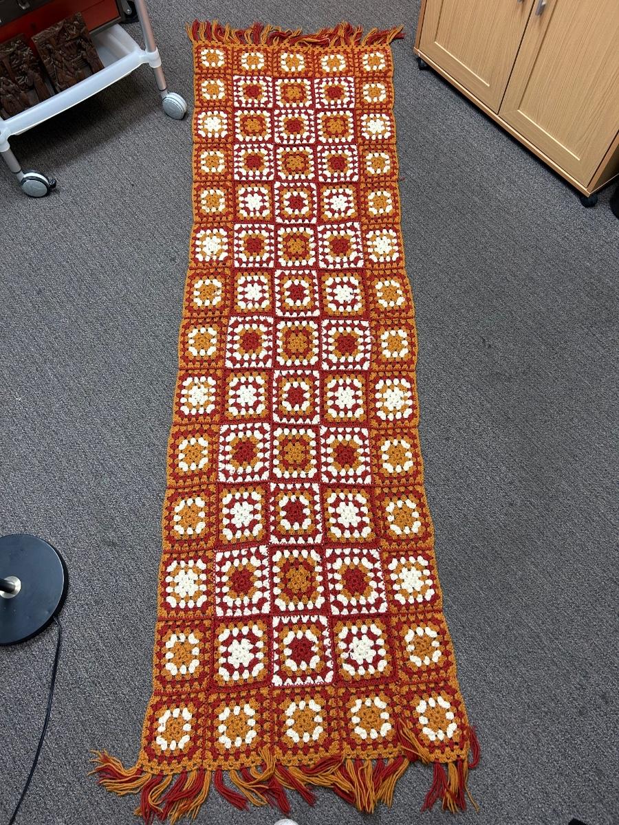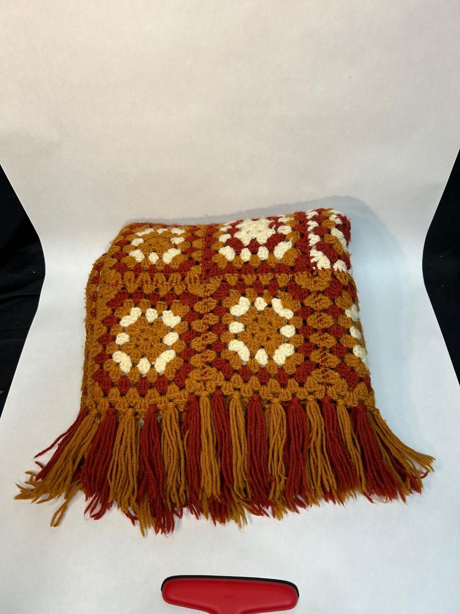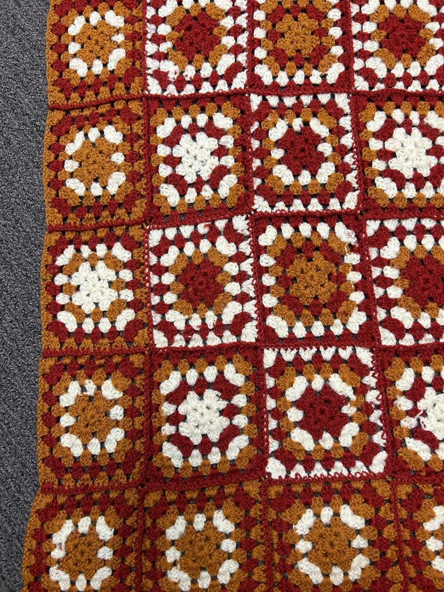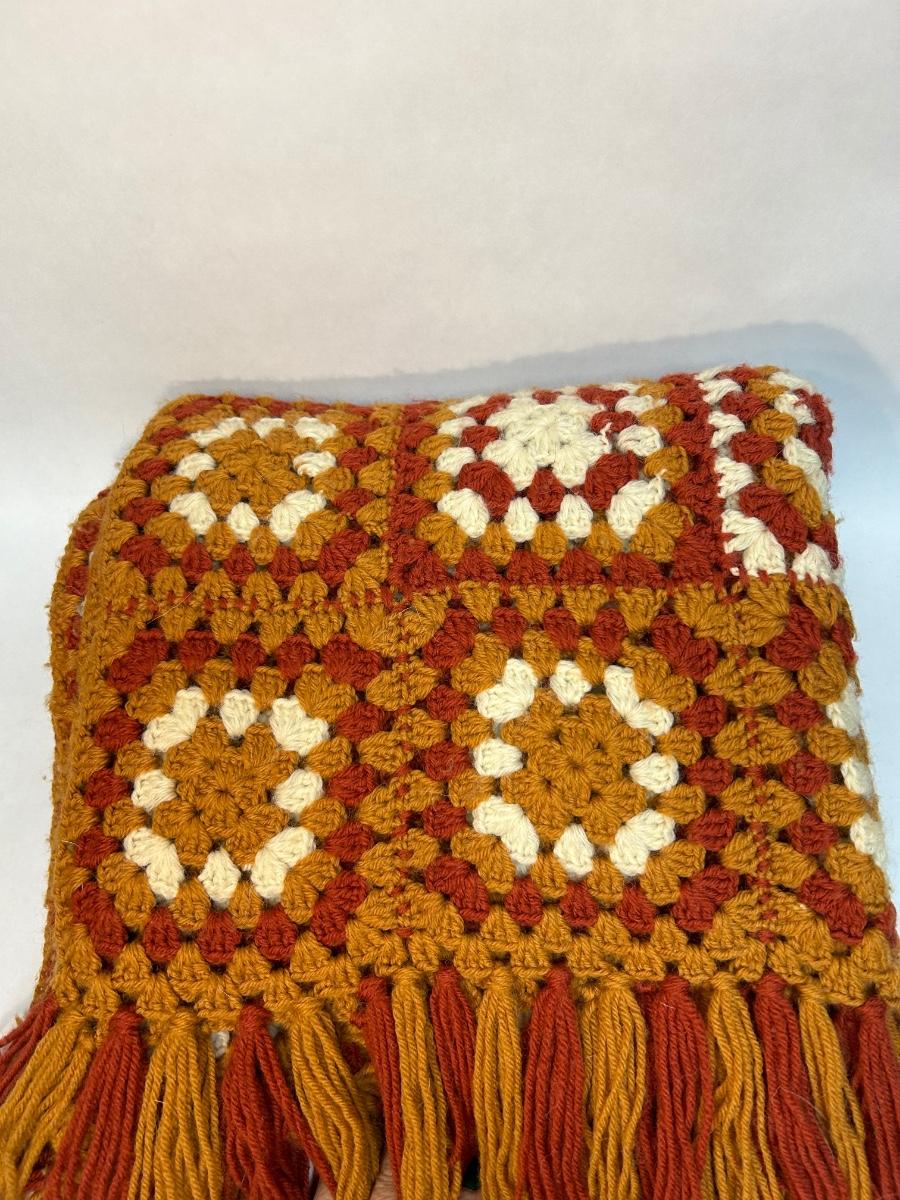 Vintage Orange and White Color Block Checkered Crochet Afghan Throw Lap Blanket. In good condition. No holes or stains.