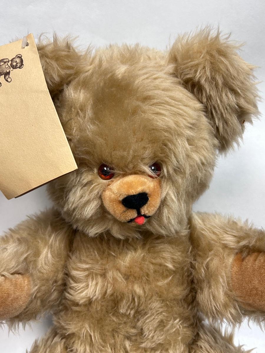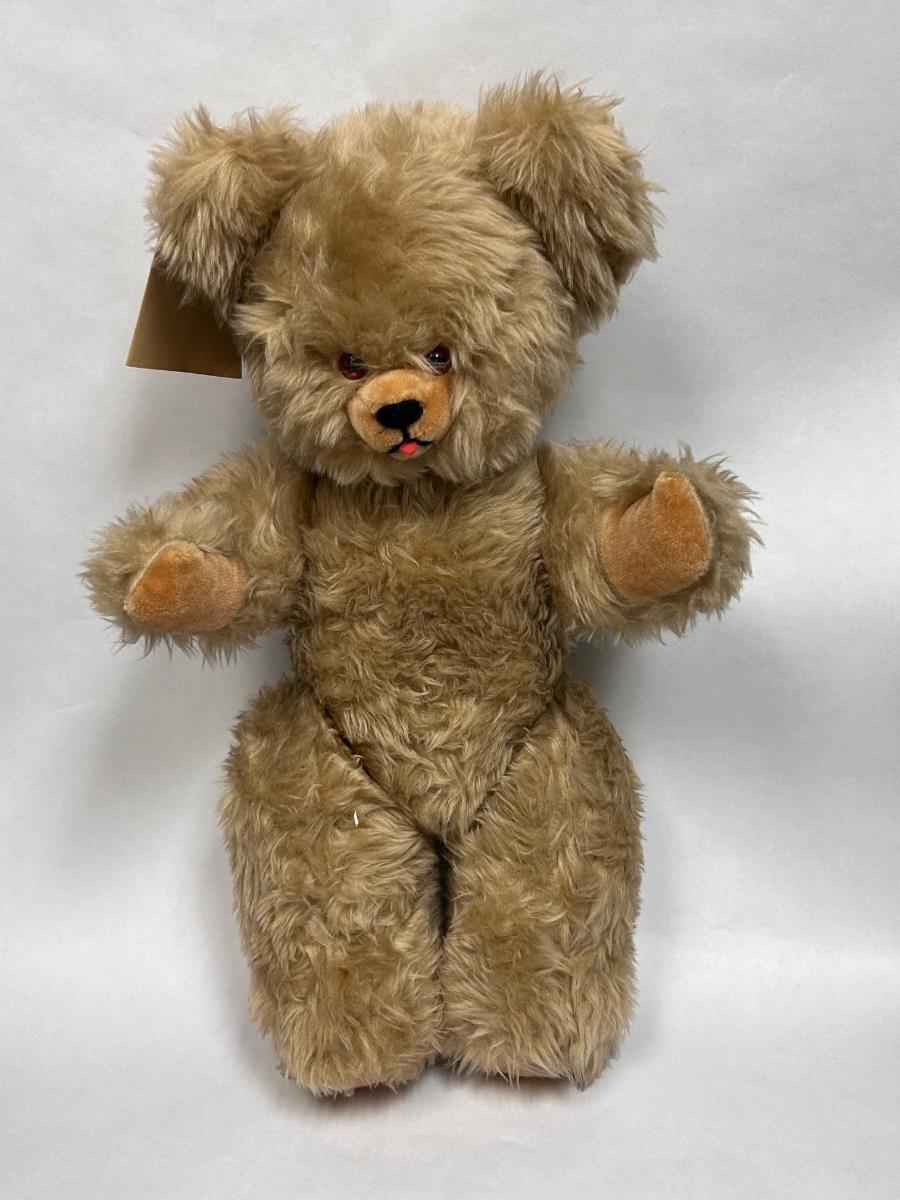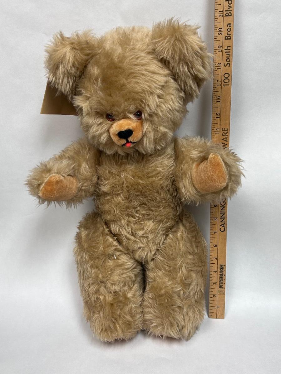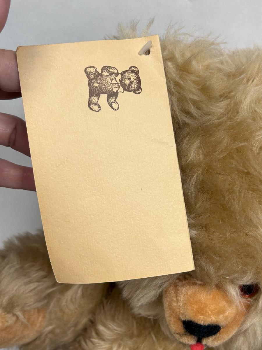 Vintage Jointed Teddy Bear Plush Stuffed Animal. In good condition. Has original hang tag attached. Has a music box inside, but not working, possibly just needs new batteries. Displays nice.