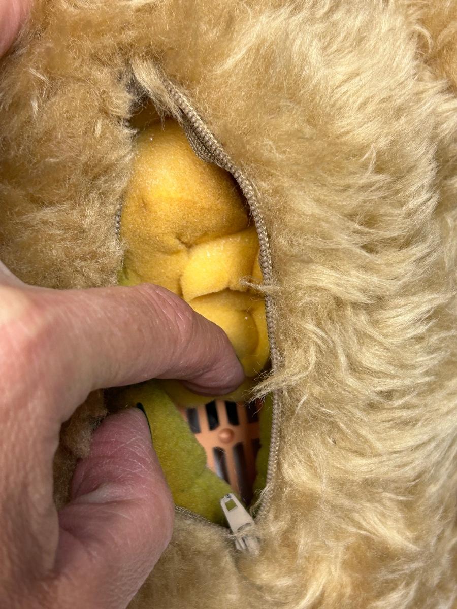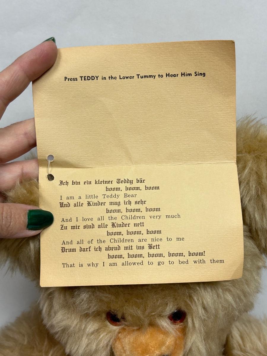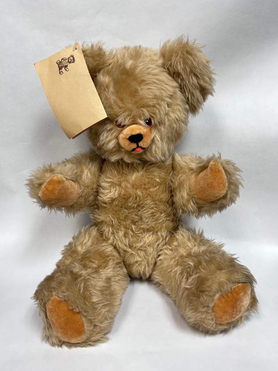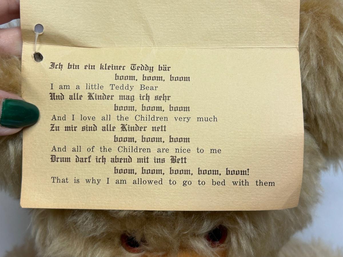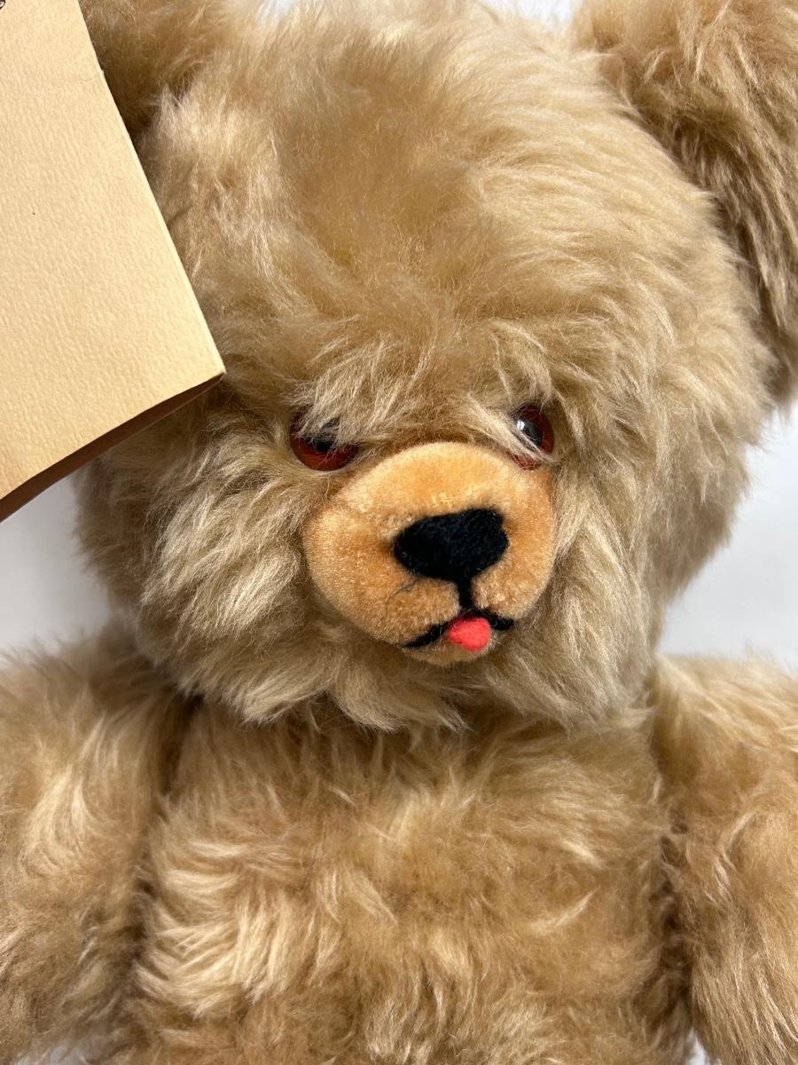 Vintage Jointed Teddy Bear Plush Stuffed Animal. In good condition. Has original hang tag attached. Has a music box inside, but not working, possibly just needs new batteries. Displays nice.