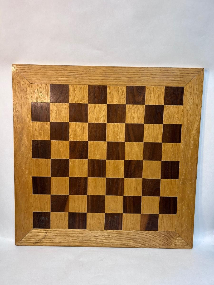 Large Wooden Checker Chess Board with Felt Bottom. In good condition, needs to be cleaned lightly. About 18" size.