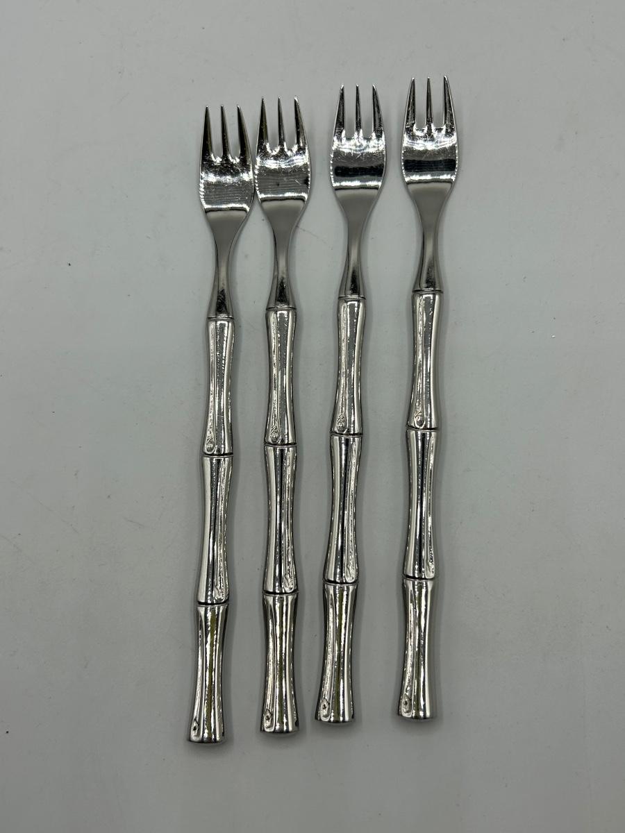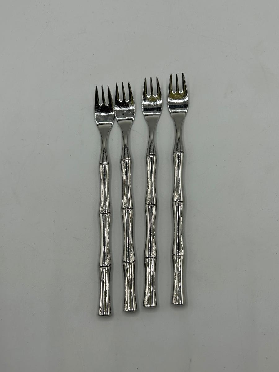 Set of 4 Stainless Steel Bamboo Shaped Handle Cocktail Forks