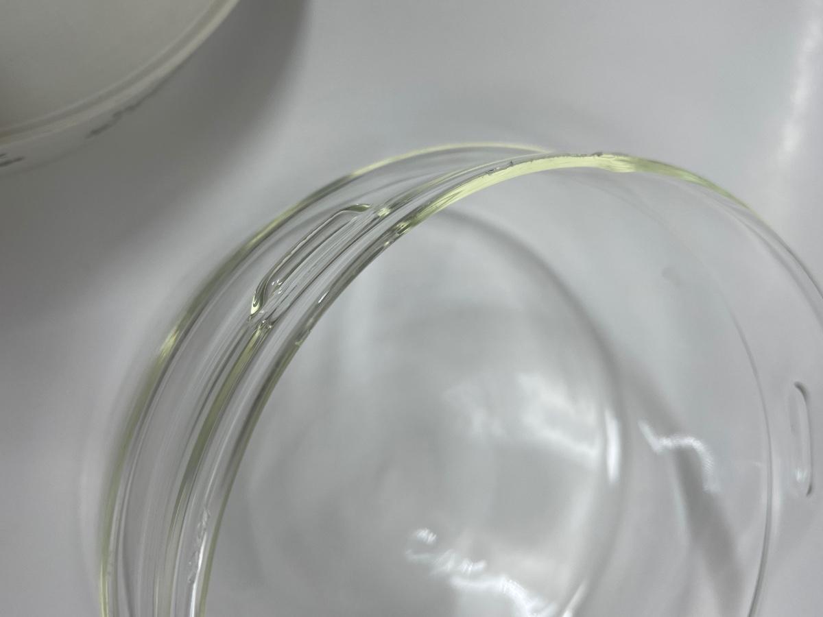 In good used condition, but there is roughness to a small section of the glass rim. We tried to capture it on a photo, but couldn't.