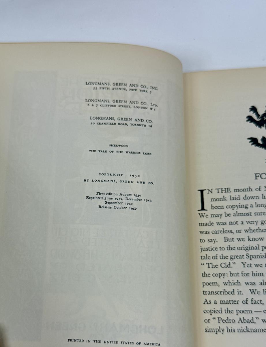 Vintage Hardcover Book Tale of the Warrior Lord Merrium Sherwood 1930 an 11th Century Spanish Epic Poem