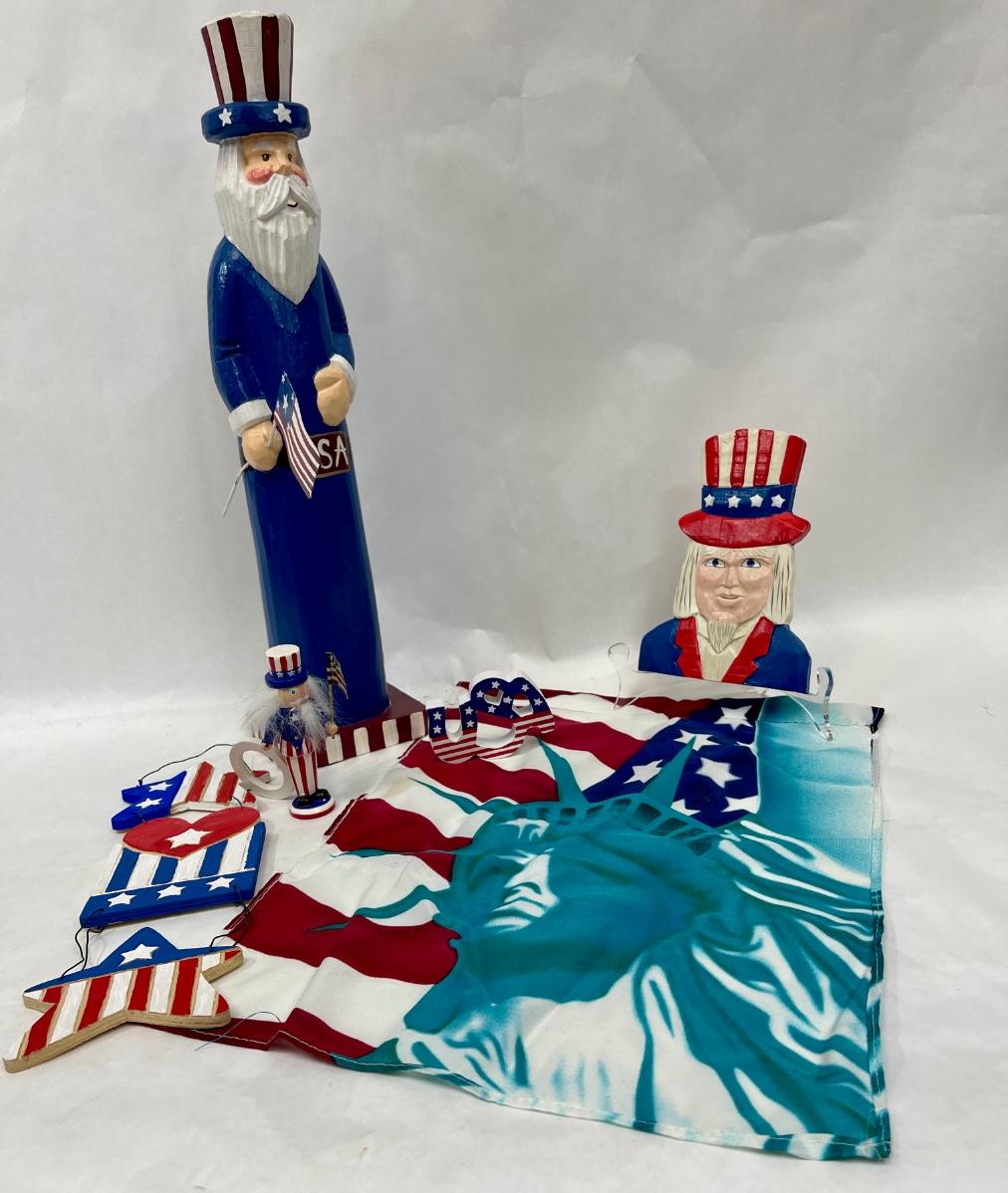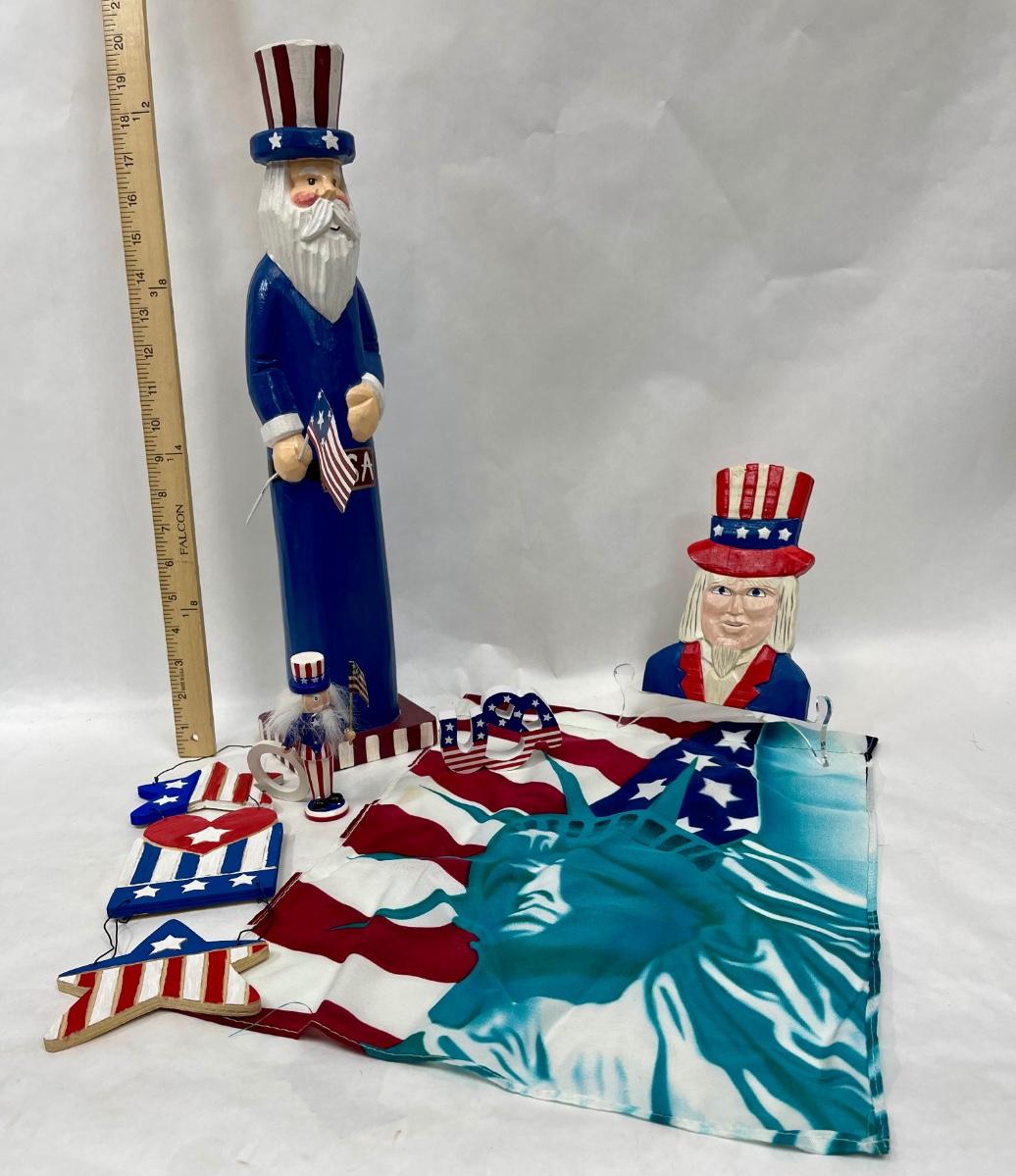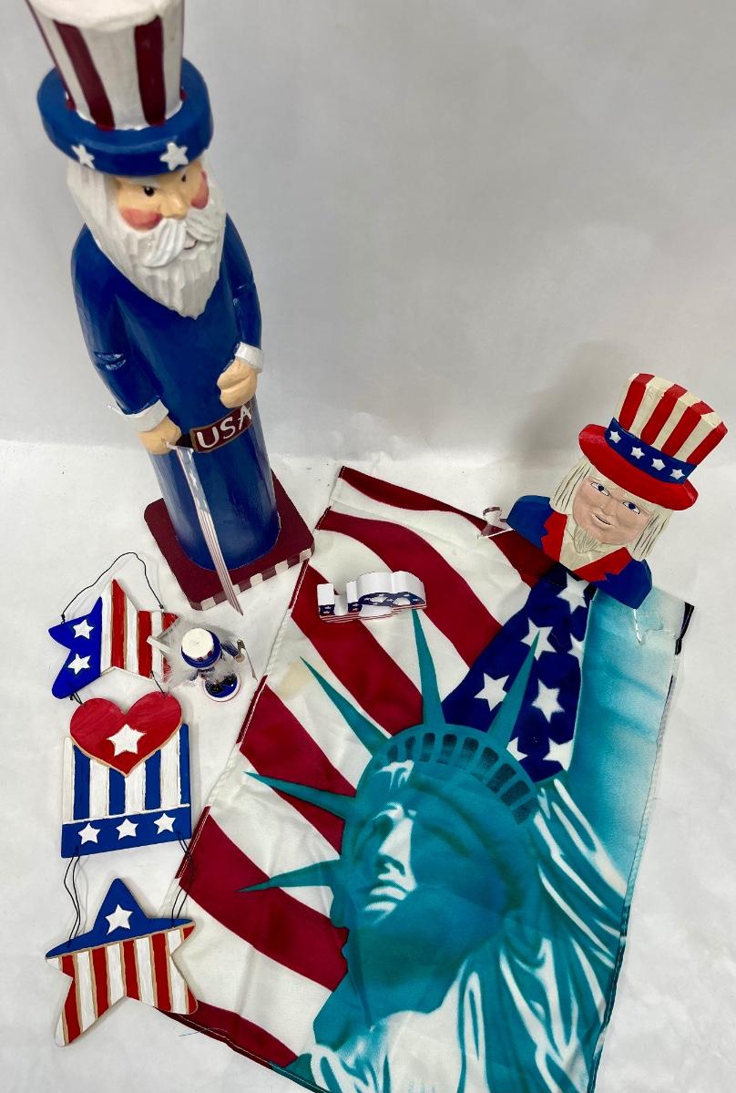 (6) items - 4th of July Lot #1 - Uncle Sam Figures, Statue of Liberty flag