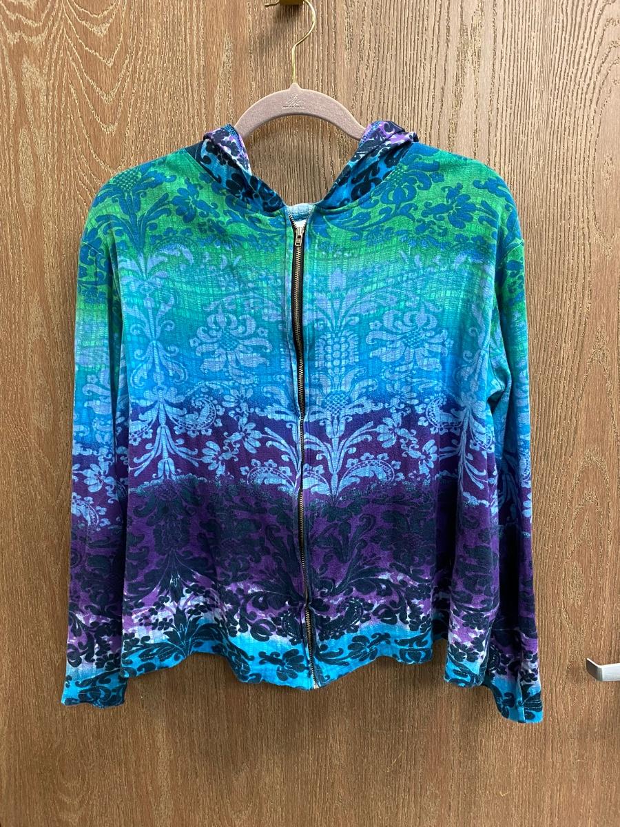 Ladies Womans Purple & Blue Lightweight Zipper Jacket Hoodie Large