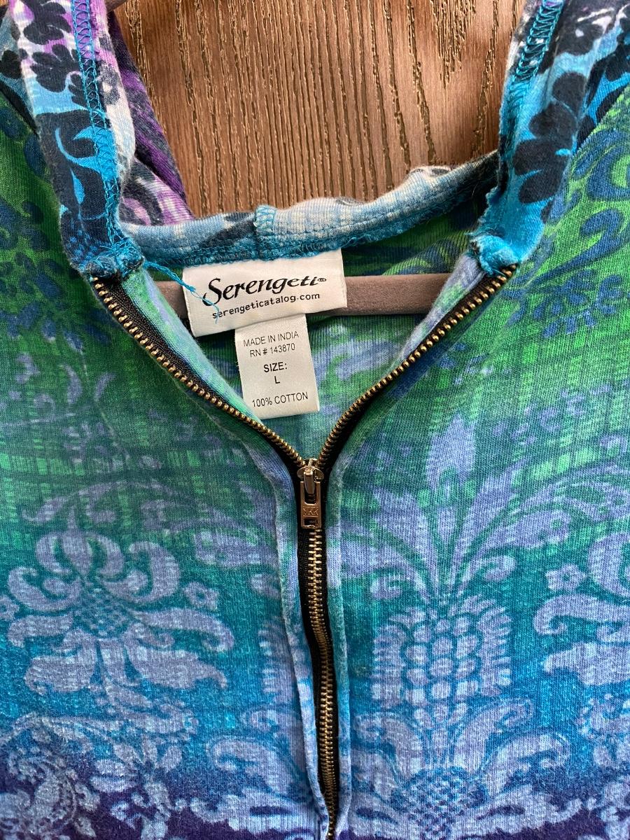 Ladies Womans Purple & Blue Lightweight Zipper Jacket Hoodie Large. In good condition.