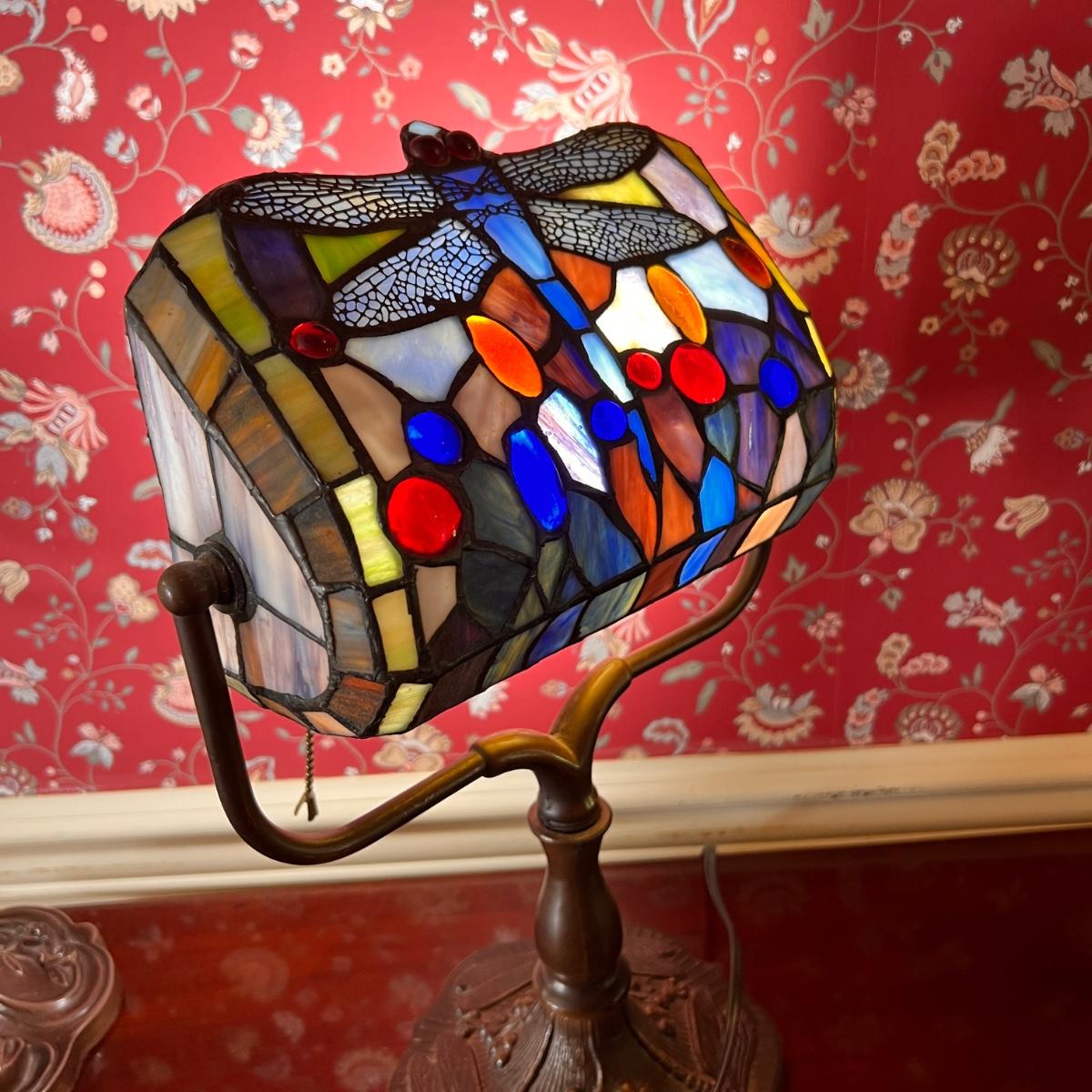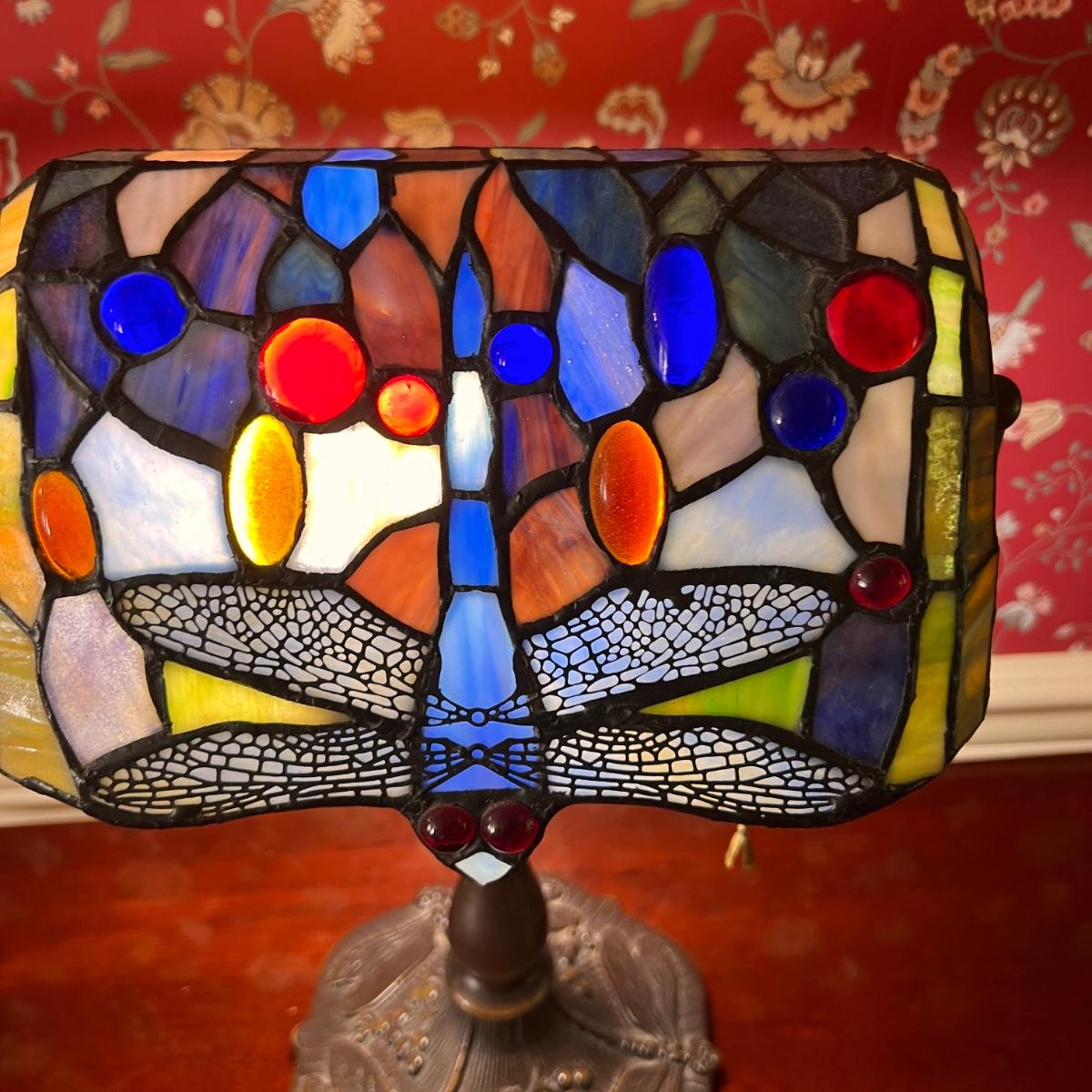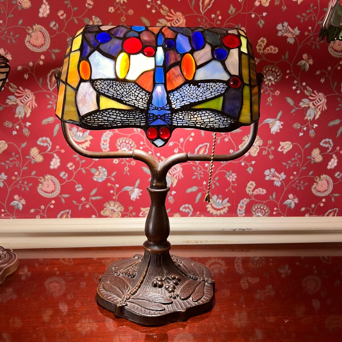 Tiffany Style Banker Table Lamp Dragonfly Stained Glass