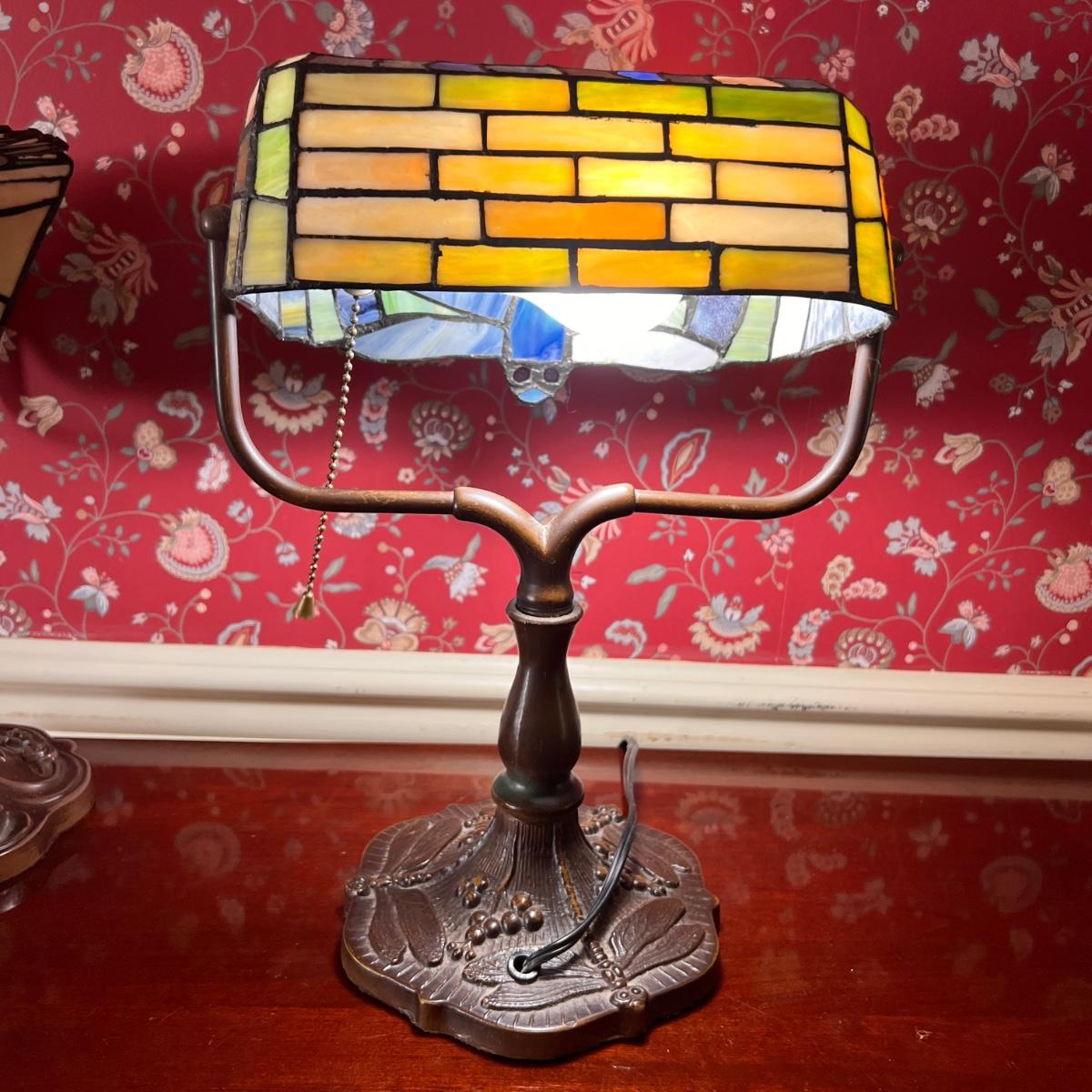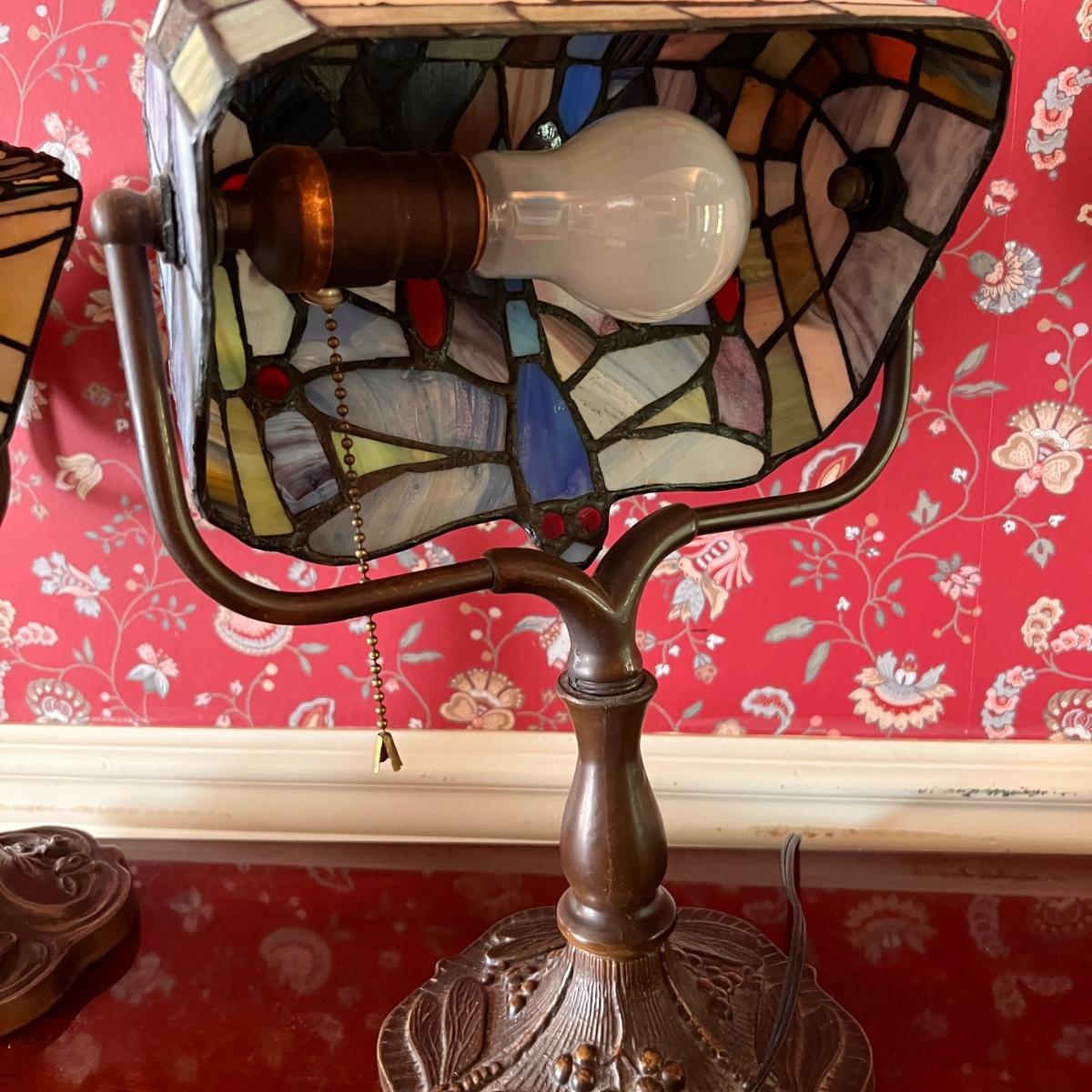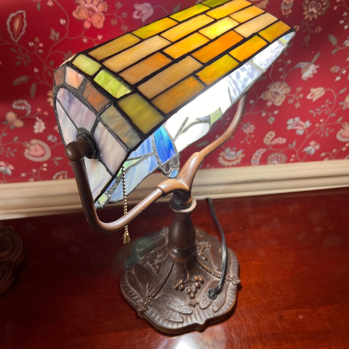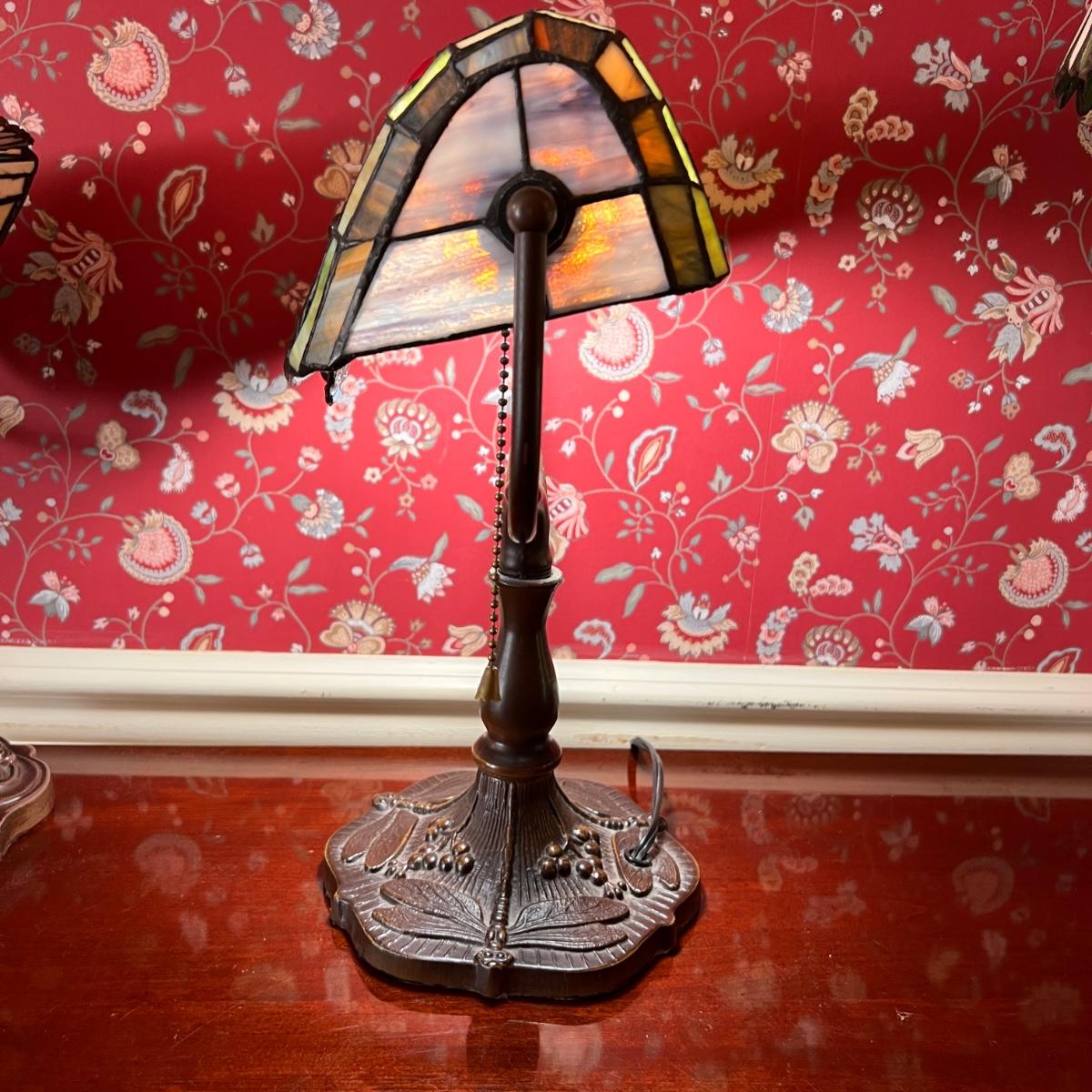 Tiffany Style Banker Table Lamp Dragonfly Stained Glass