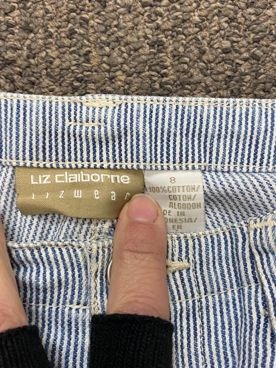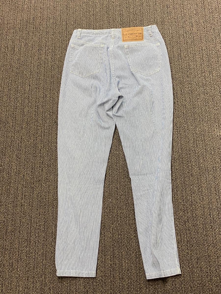 Liz Claiborne Lizwear Casual Comfort Cotton Size 8 Blue Thin Striped Pants