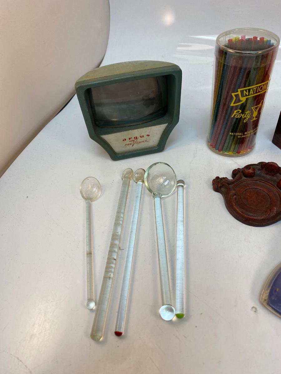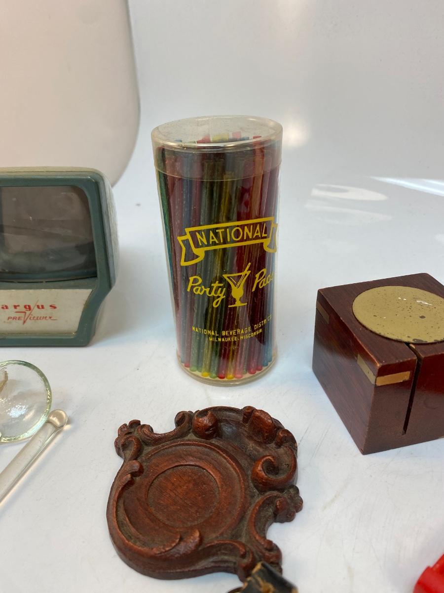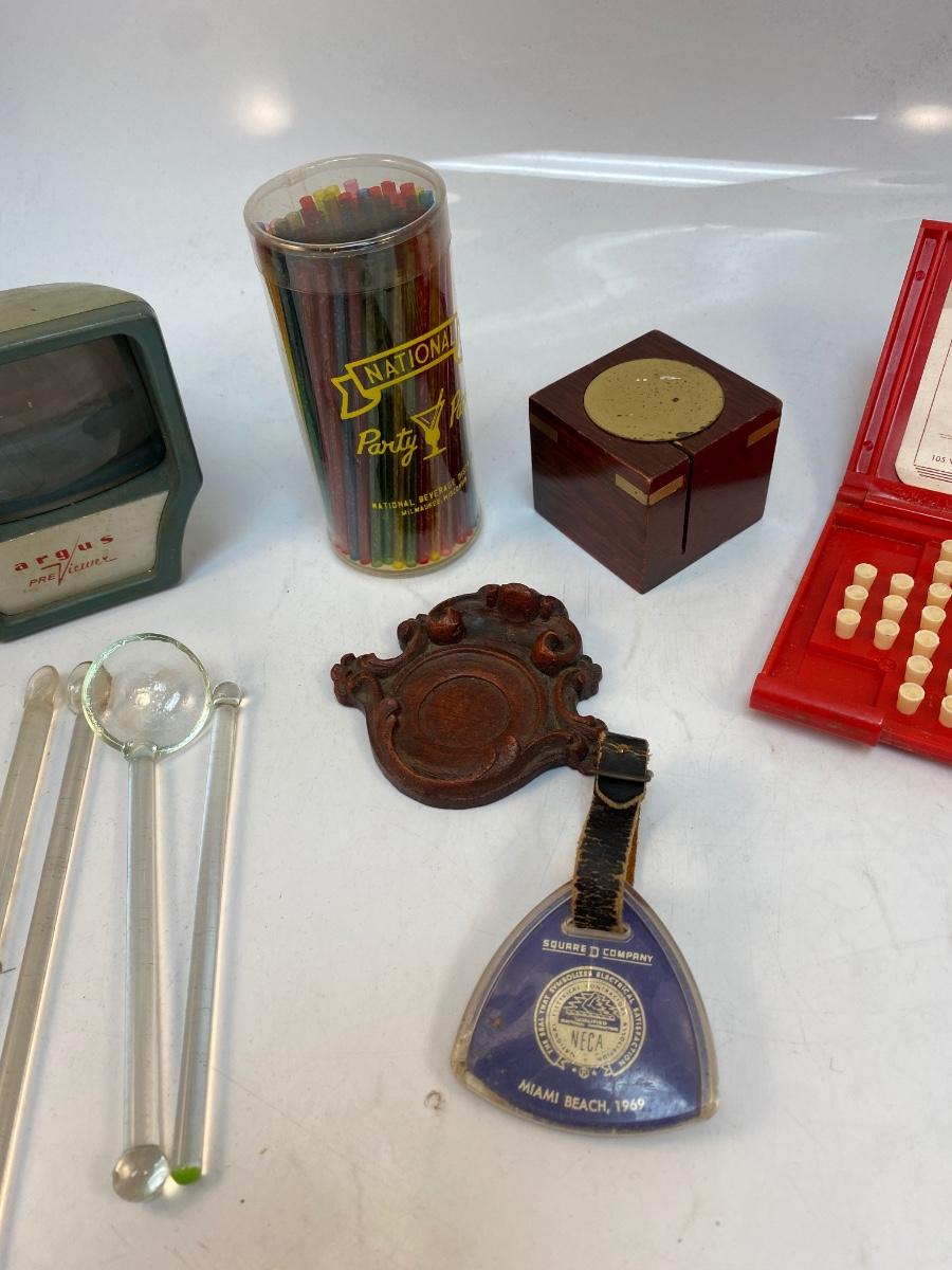 Mixed Random Lot of Vintage Items Slider Viewer Barware Pag Game Stamp Holder