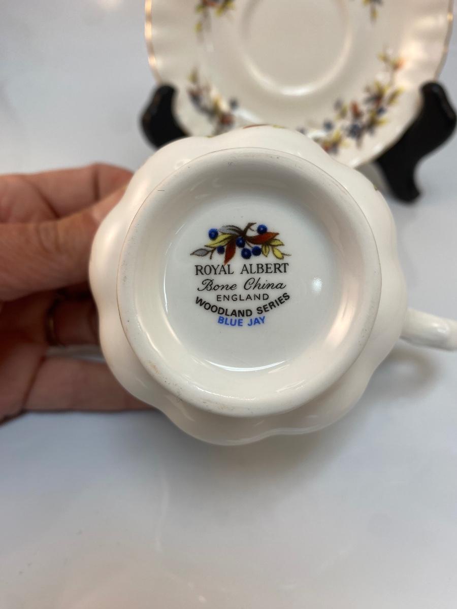 Vintage Royal Albert Woodland Series Blue Jay Teacup and Saucer. In good condition, no chips.
