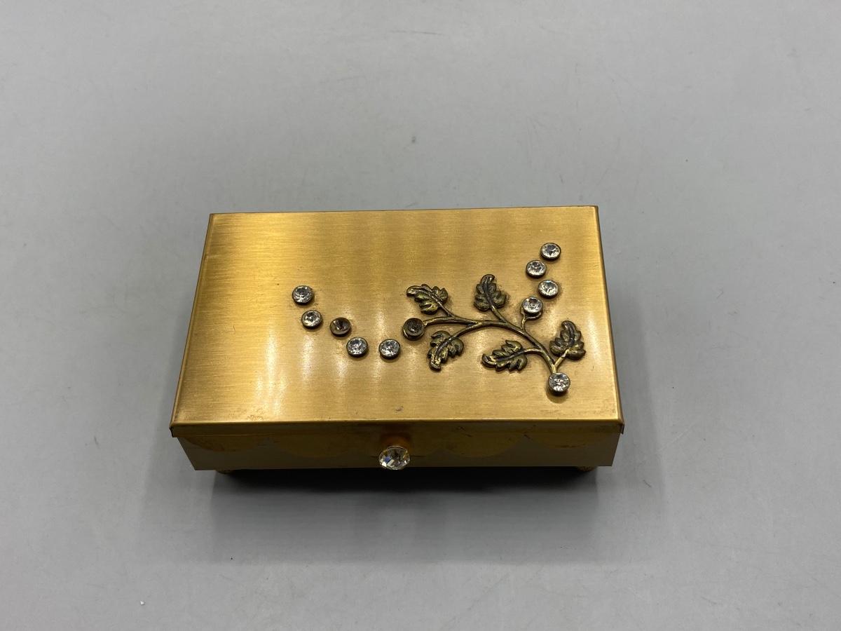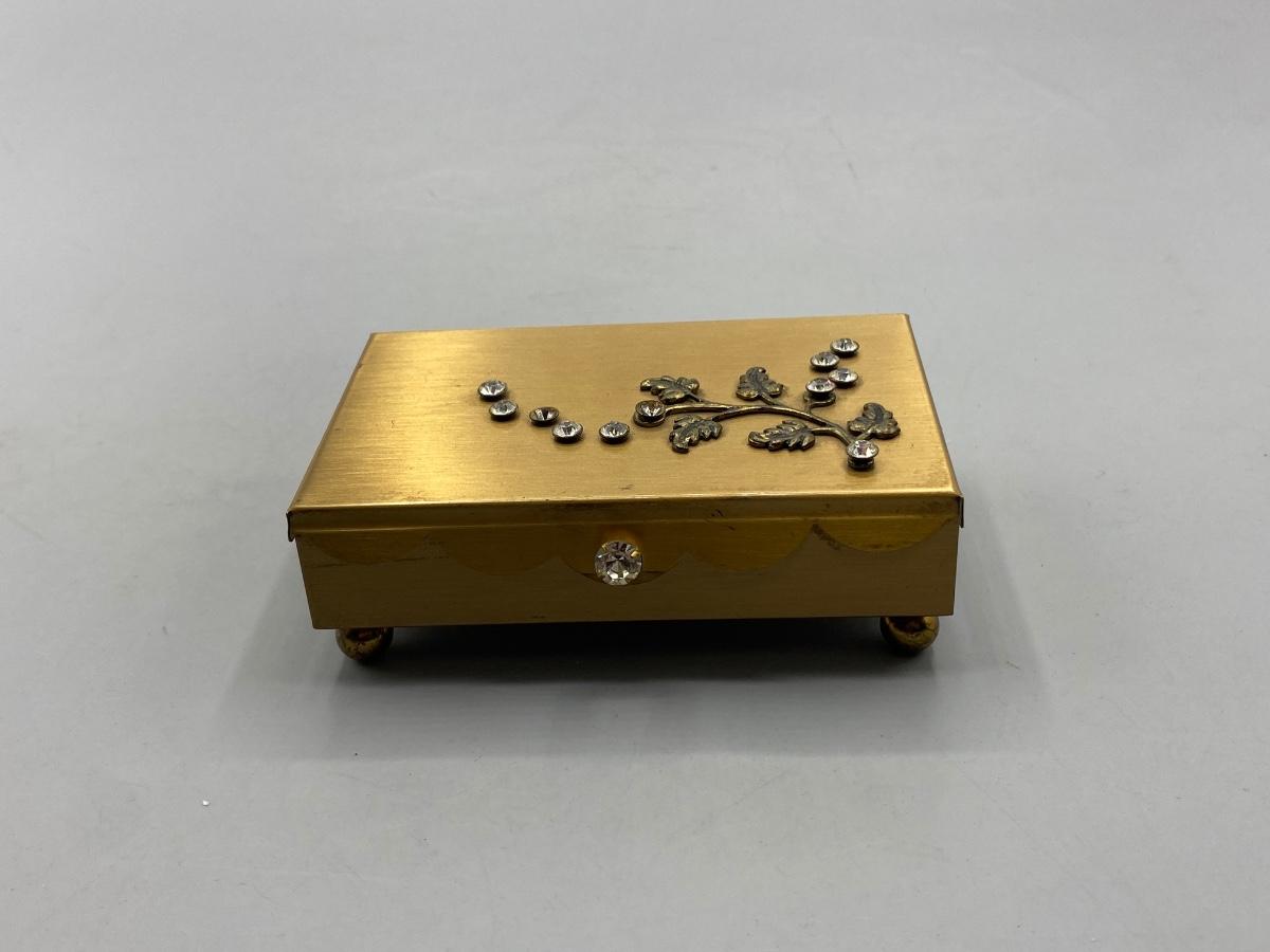 Vintage Brushed Brass Metal Trinket Box Gold Tone Product