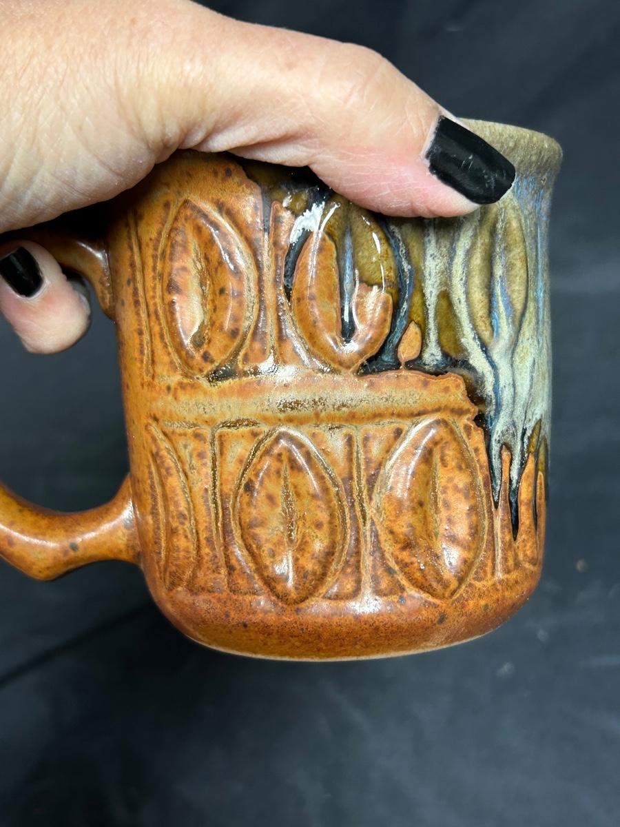 Vintage Hand Thrown Pottery Art Coffee Cup Mug Dripware Glaze Unsigned