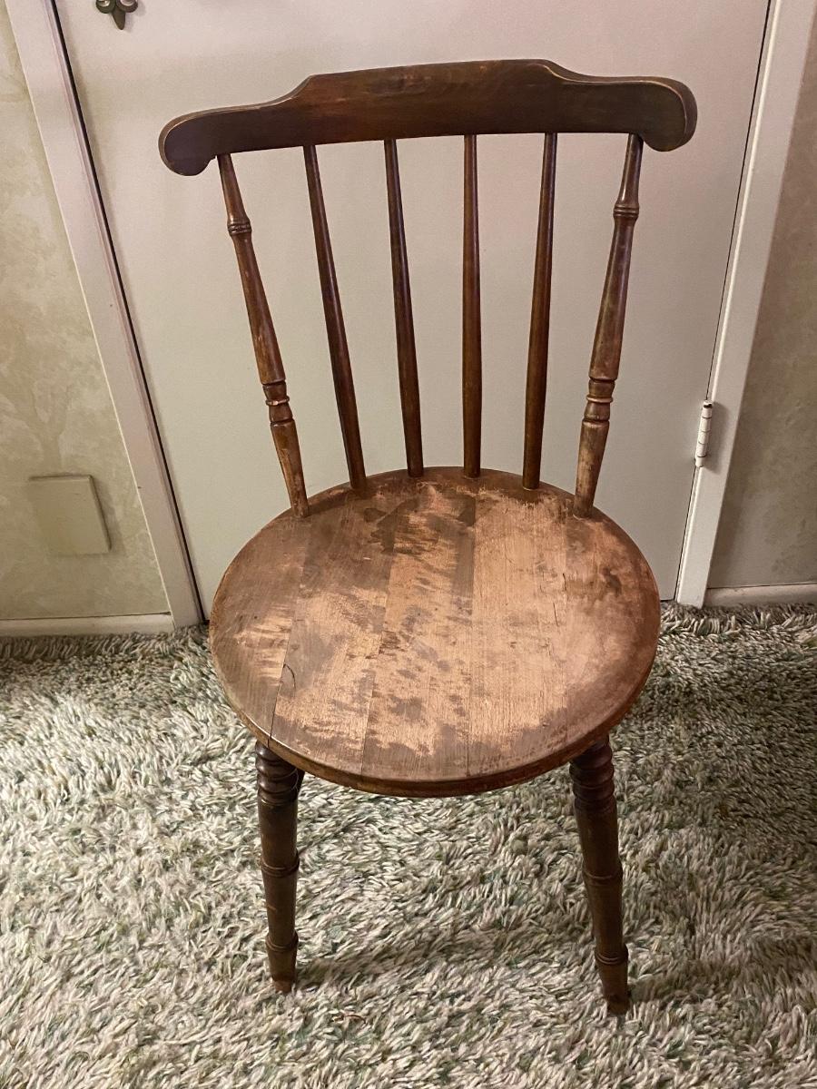 Vintage Spindel Back Wood Side Desk Vanity Chair with Removeable Embroidered Seat Cushion