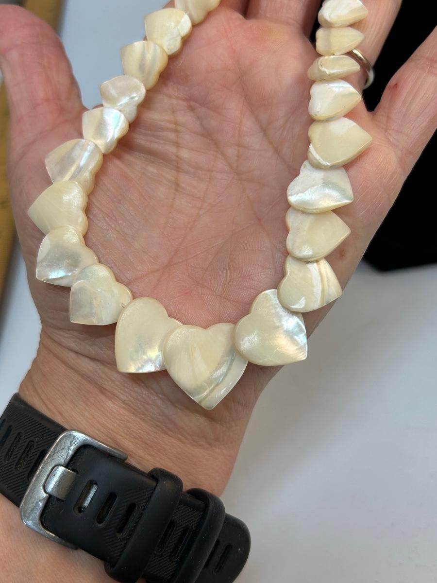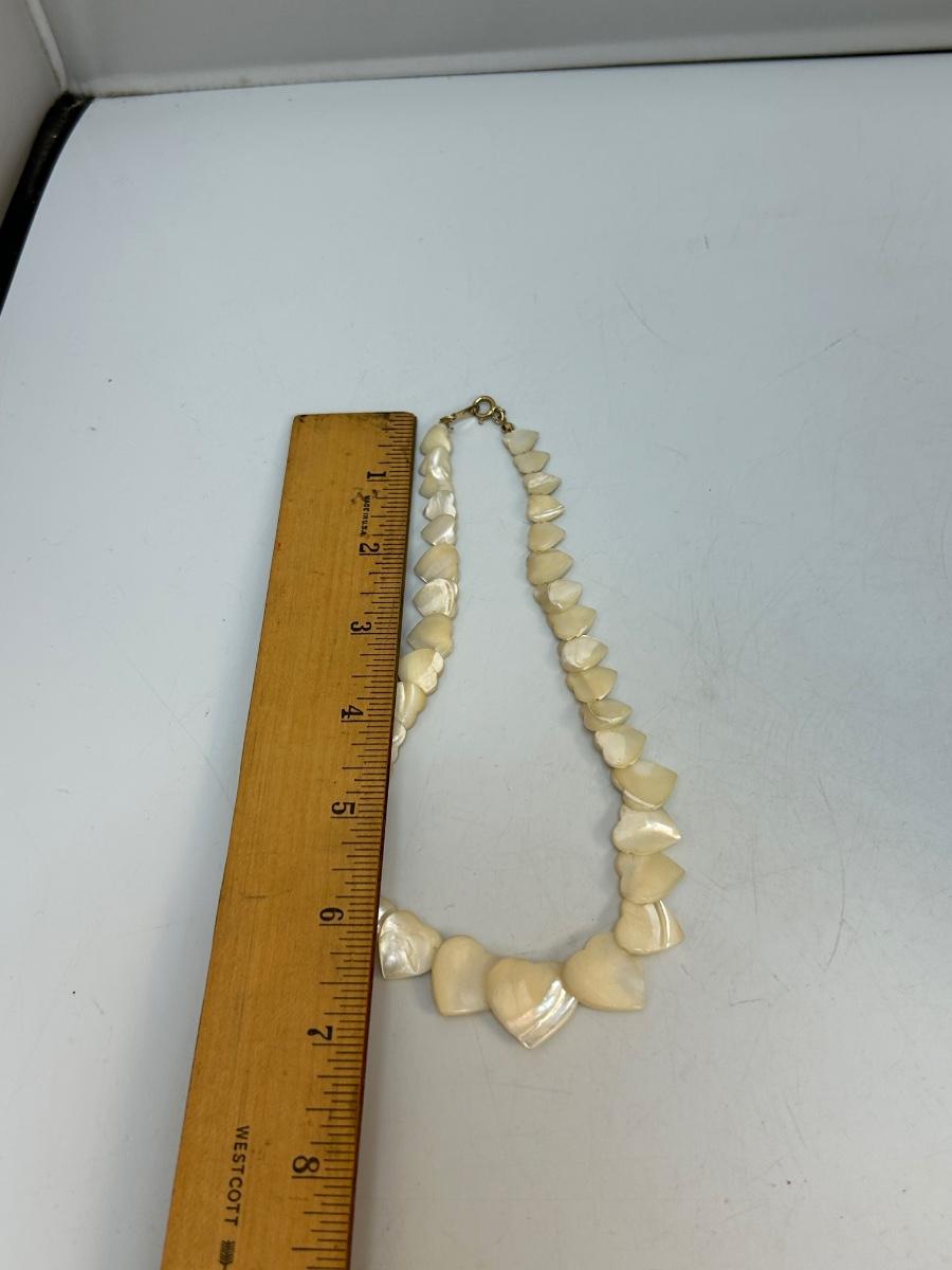 Mother of Pearl Abalone Shell Overlapping Graduating Heart Choker Style Necklace. In good condition.