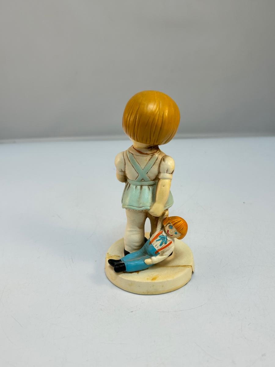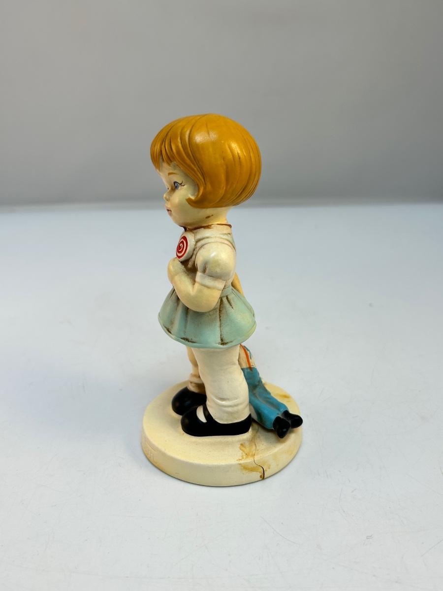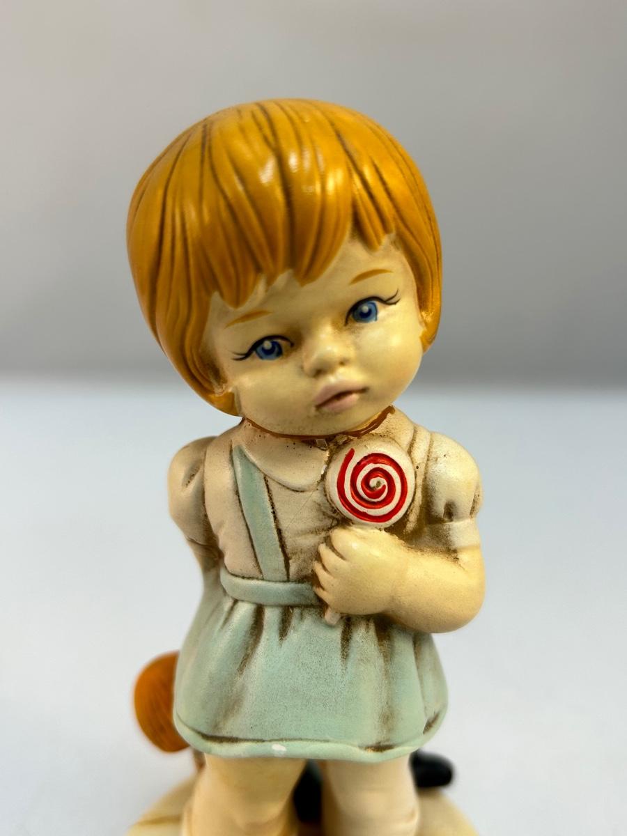 Vintage 1972 Twinton Little Girl with Lollipop and Doll Figurine. Unfortunately, the base has been repaired but it does display ok.