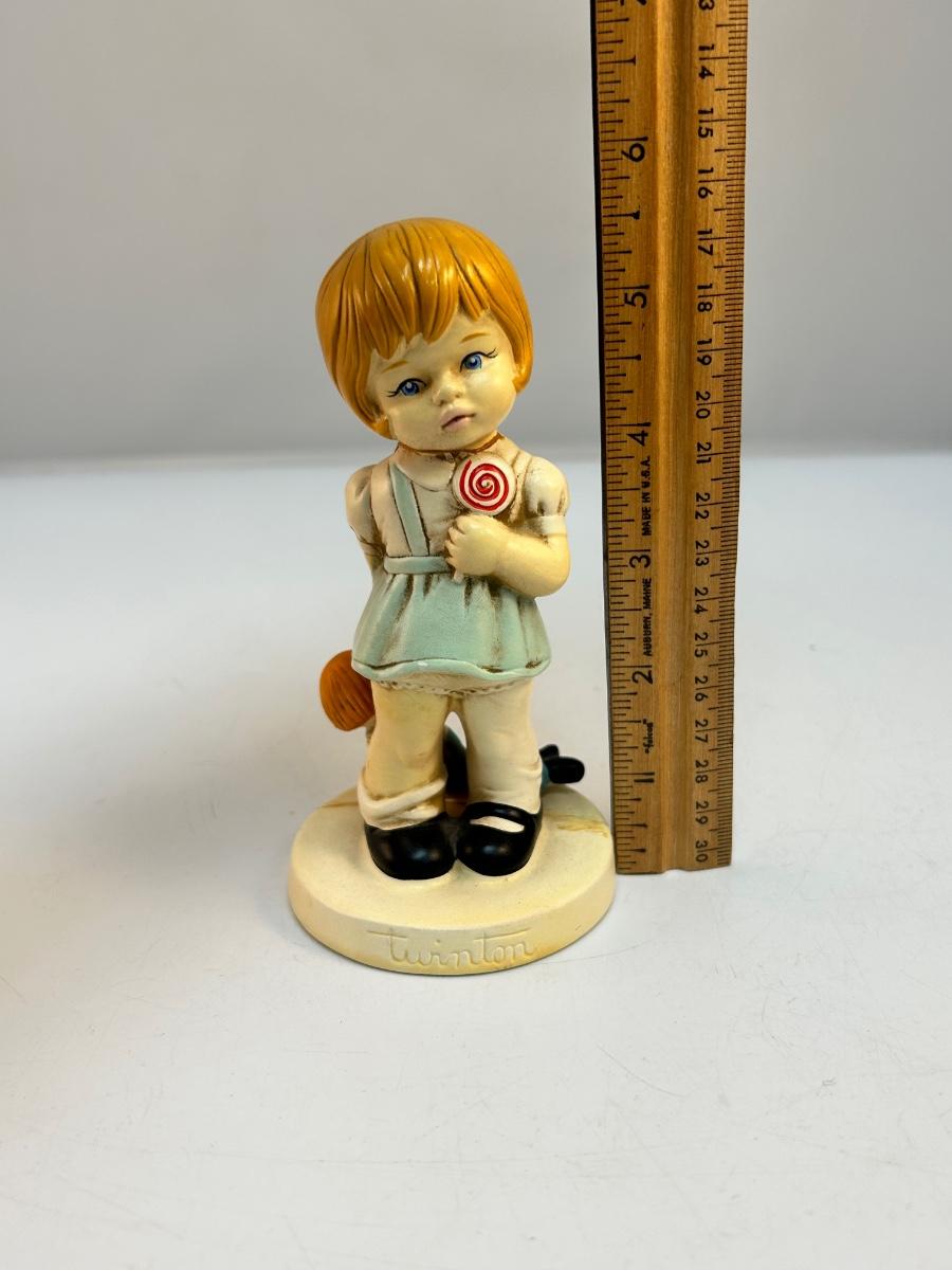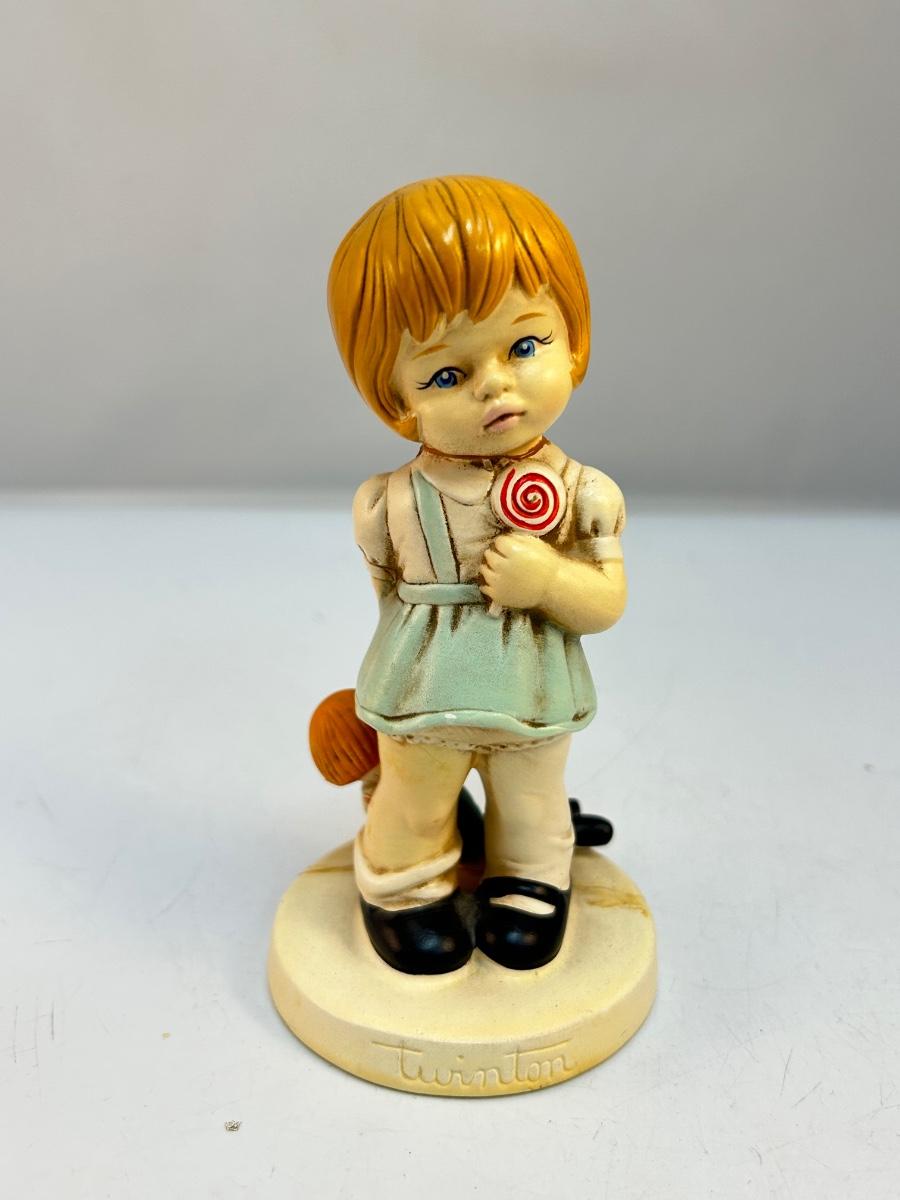 Vintage 1972 Twinton Little Girl with Lollipop and Doll Figurine
