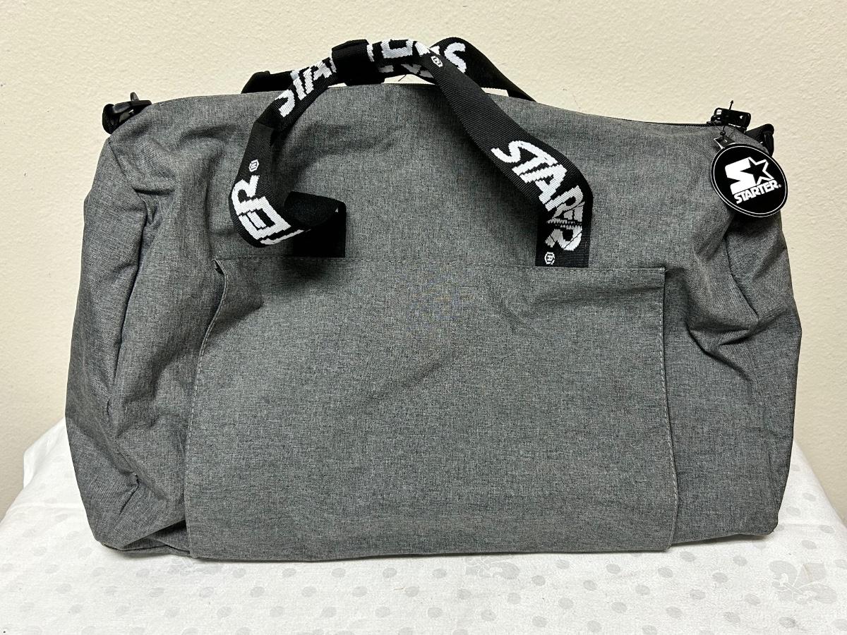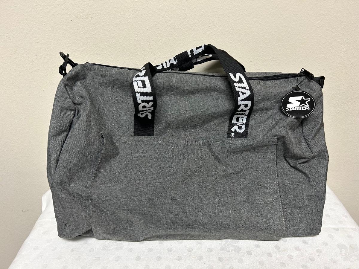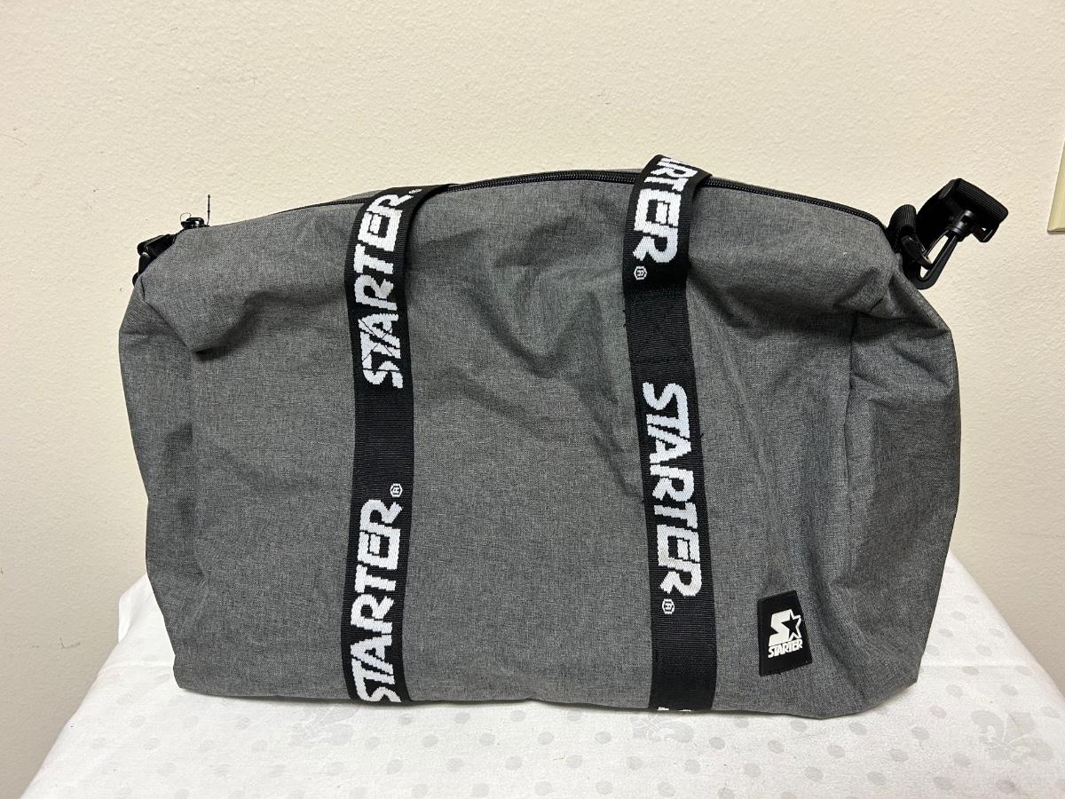 Grey Starter Sports Gym Duffel Bag. Still has hang tag attached. In good condition. About 18" size.