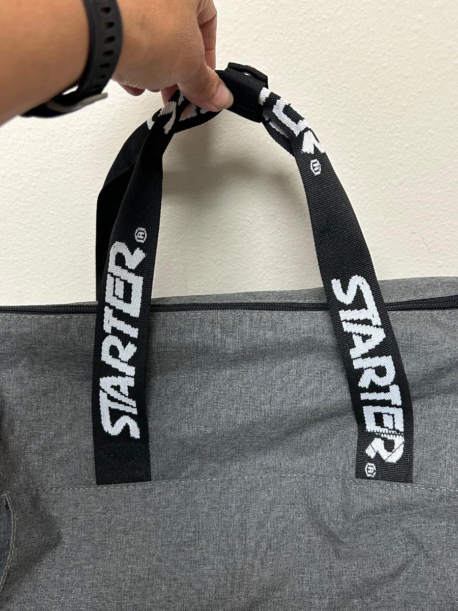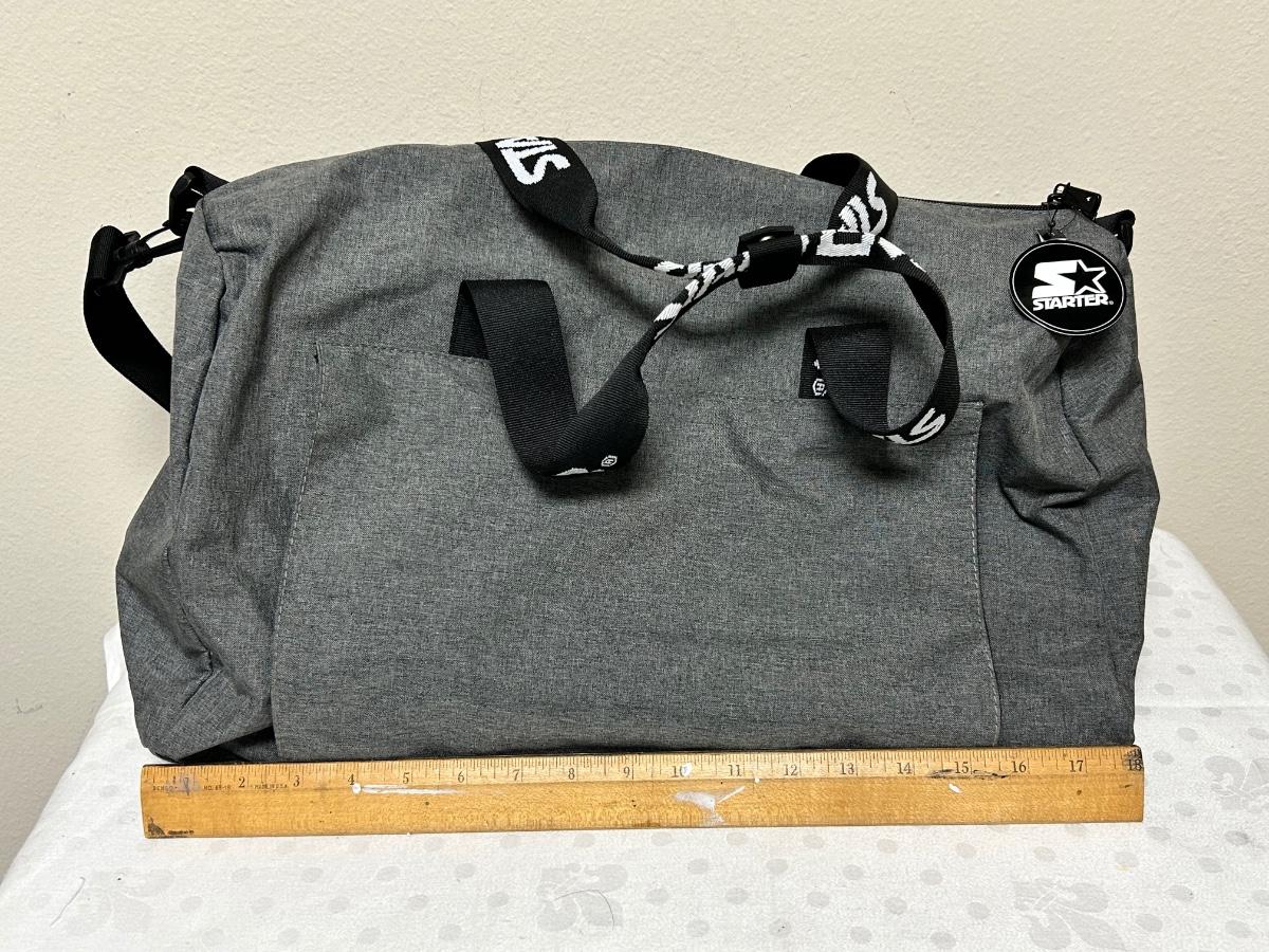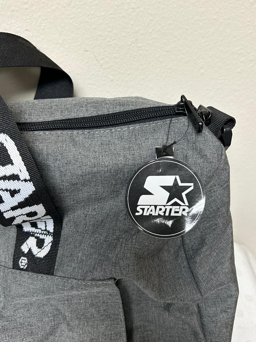 Grey Starter Sports Gym Duffel Bag. Still has hang tag attached. In good condition. About 18" size.