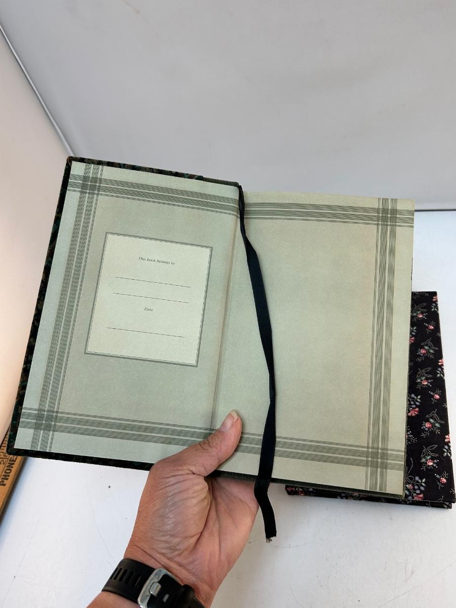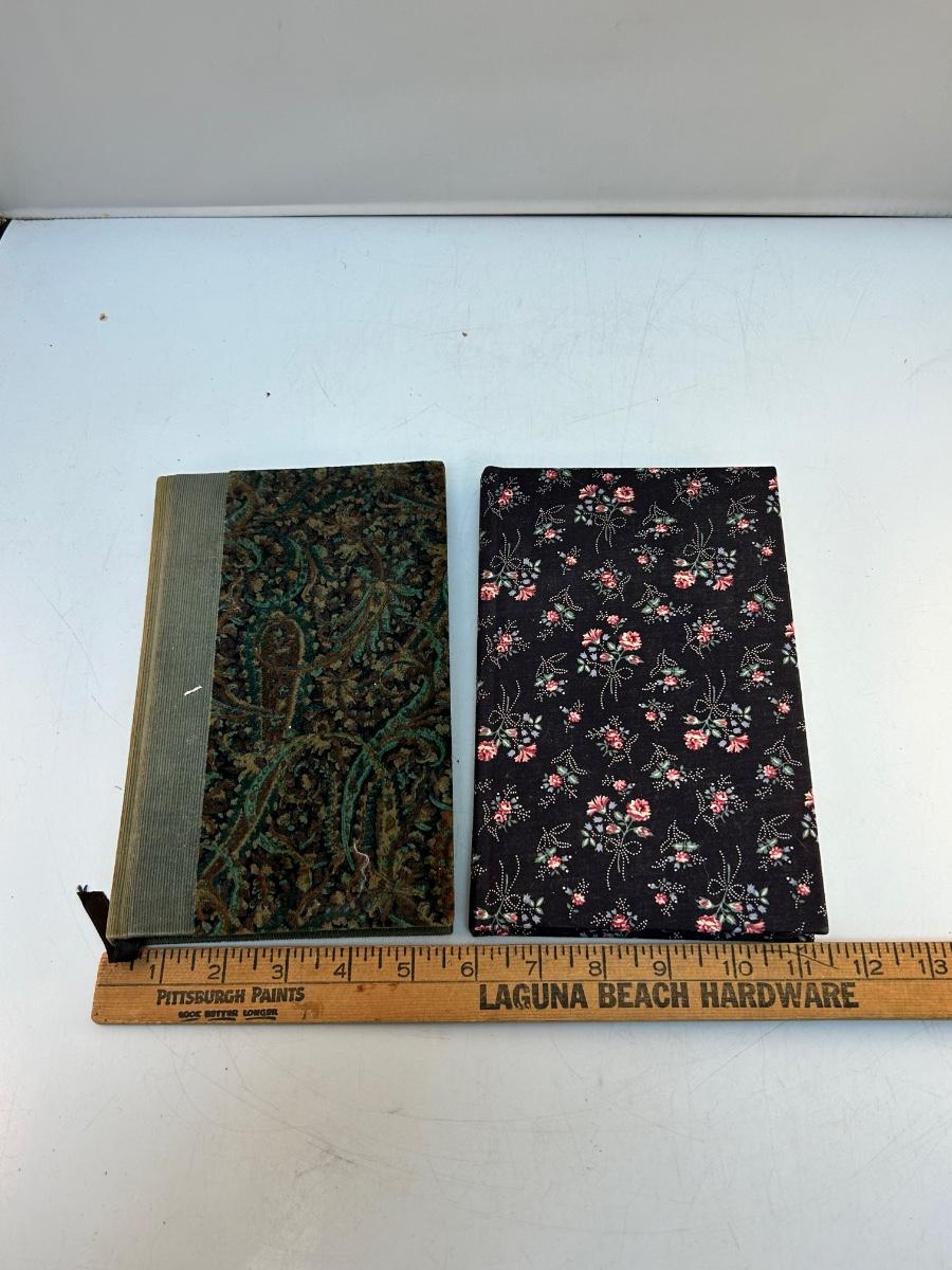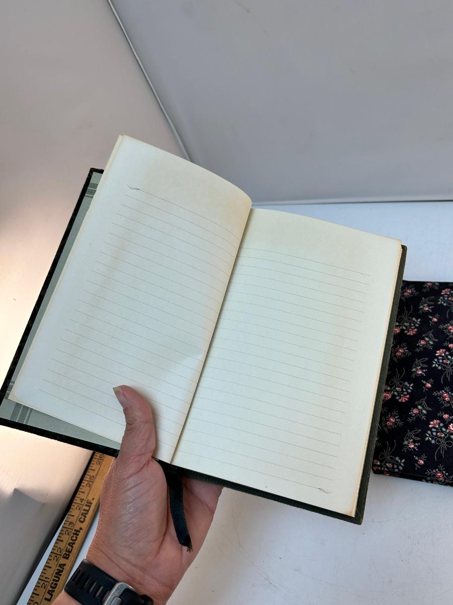 Pair of Unused Cloth Fabric Covered Writing Journal Notebooks. Unused books, may have light yellowing around the page edges from age. Roughly 9"x6" size.