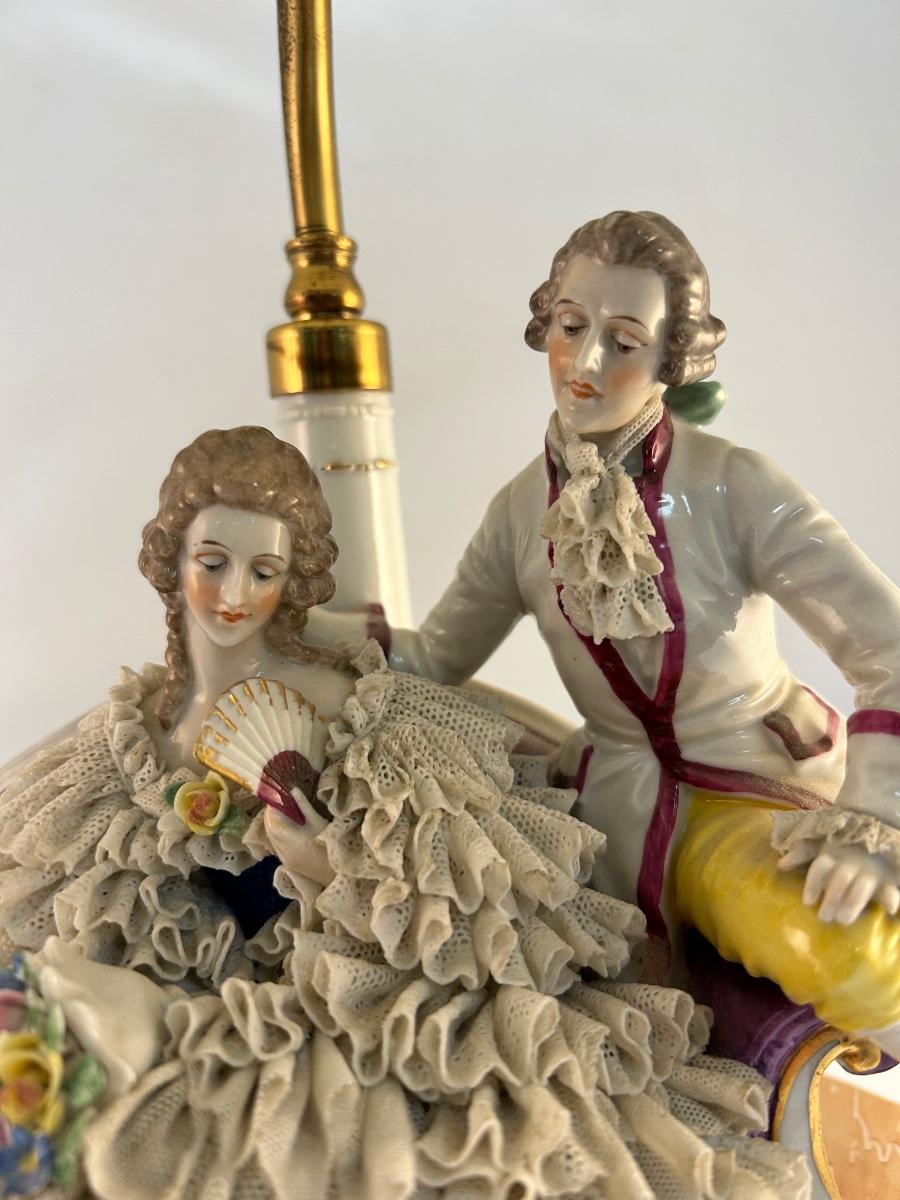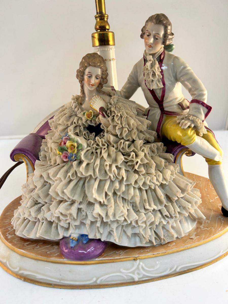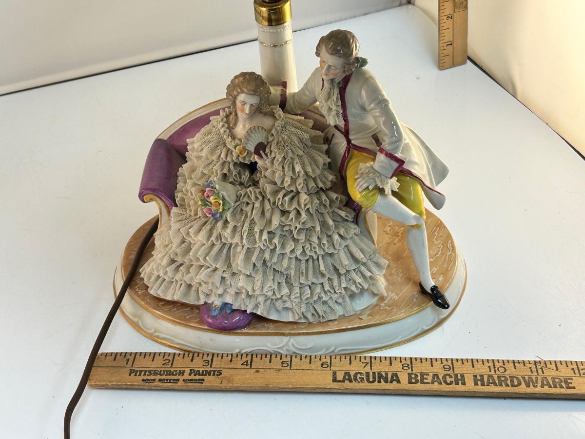 Vintage Antique Porcelain Lace Victorian Couple Boudoir Table Lamp Thuringia Dresden Germany