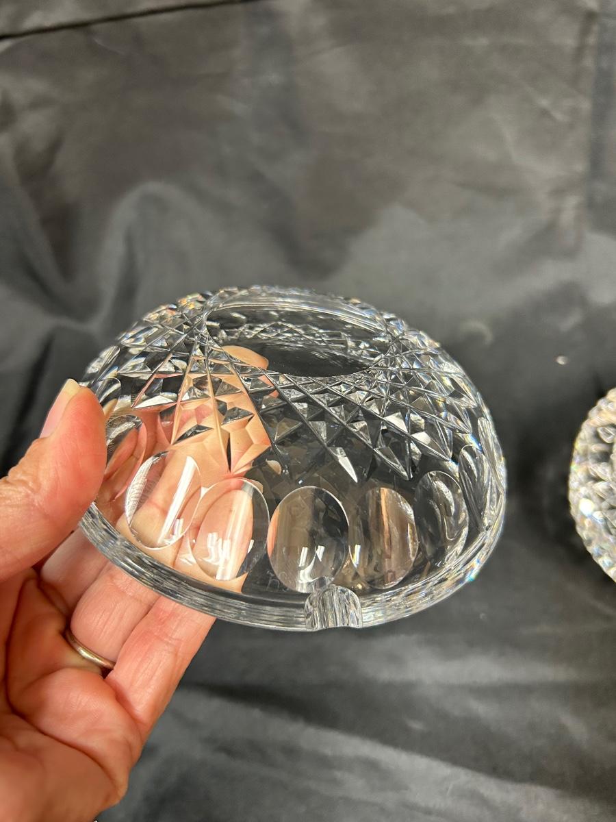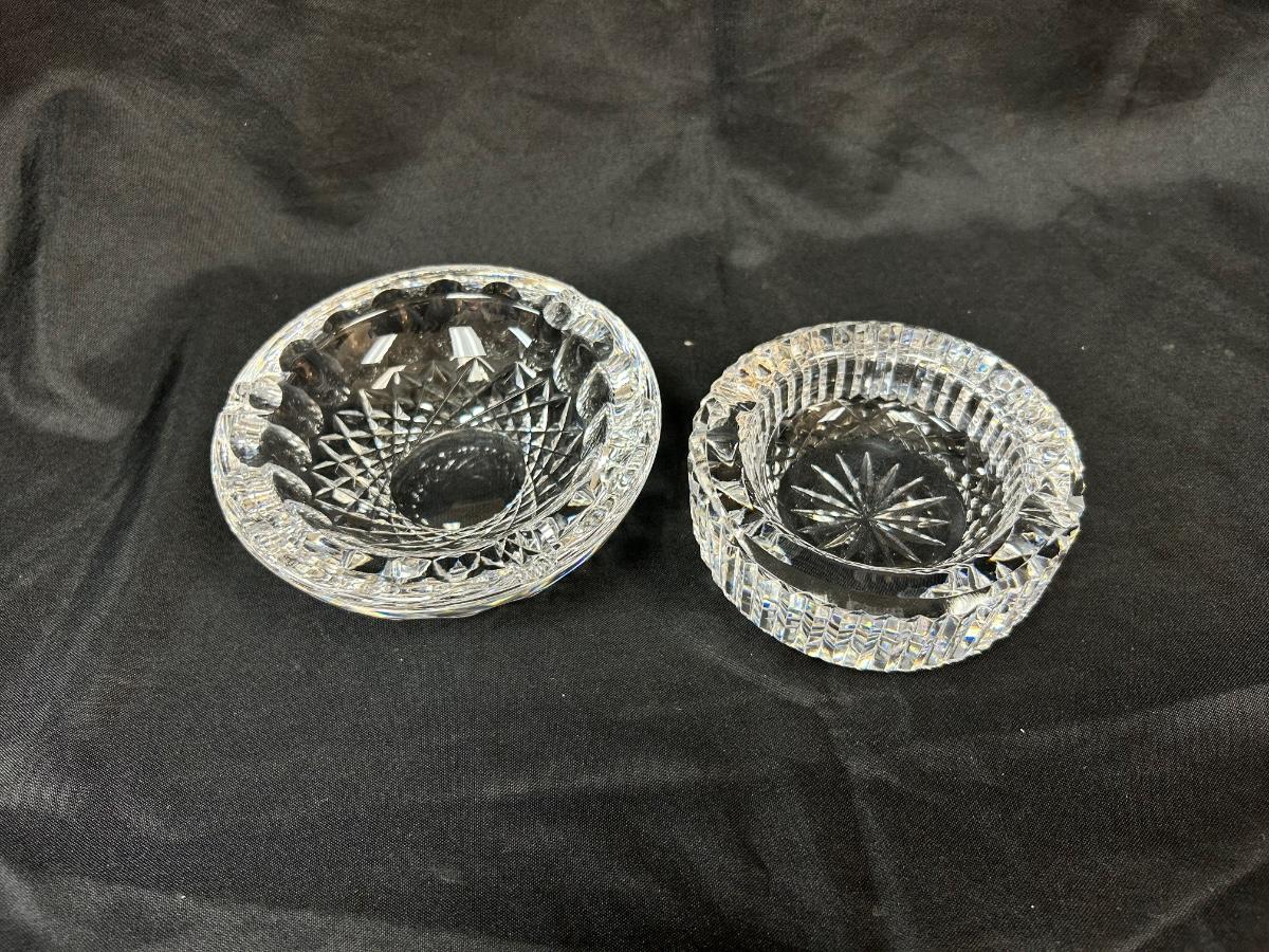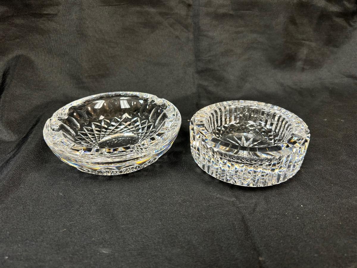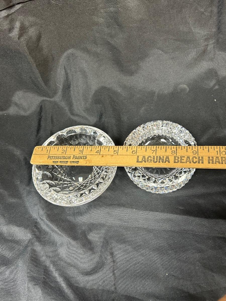 Vintage Pair of Waterford Quality Cut Crystal Ashtrays. Heavy, thick Waterford crystal. Both marked. About 4" to 5" sizes. No damage or chips noticed.