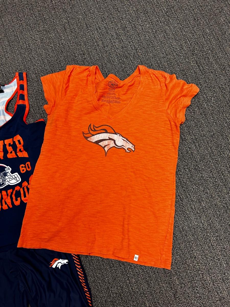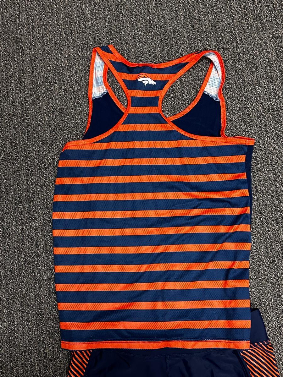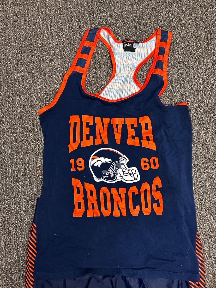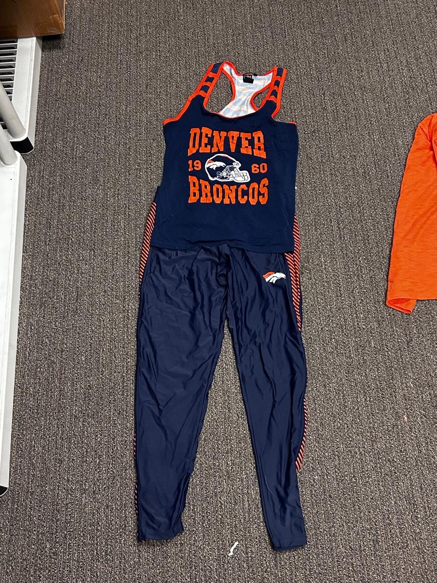 Woman's Denver Broncos NFL Football Team Apparel Tshirt Tank Gym Pants Legging Blue & Orange L XL