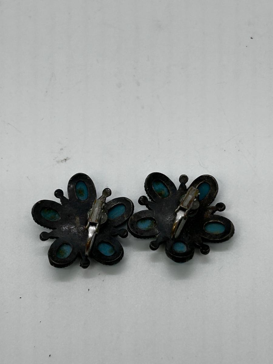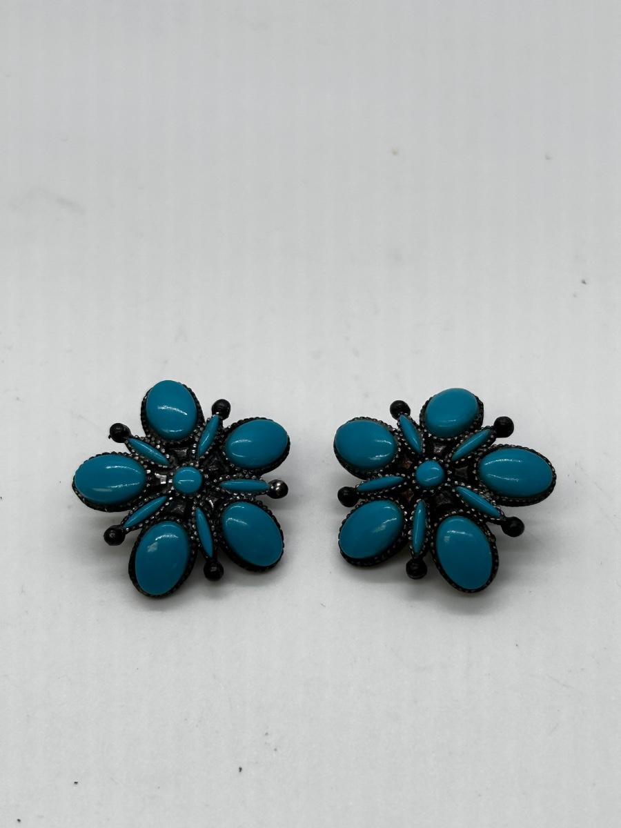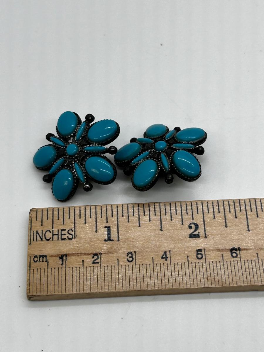Vintage Faux Turquoise Cabochon Flower Shaped Southwestern Style Clip Earrings. In good vintage condition. Unbranded.