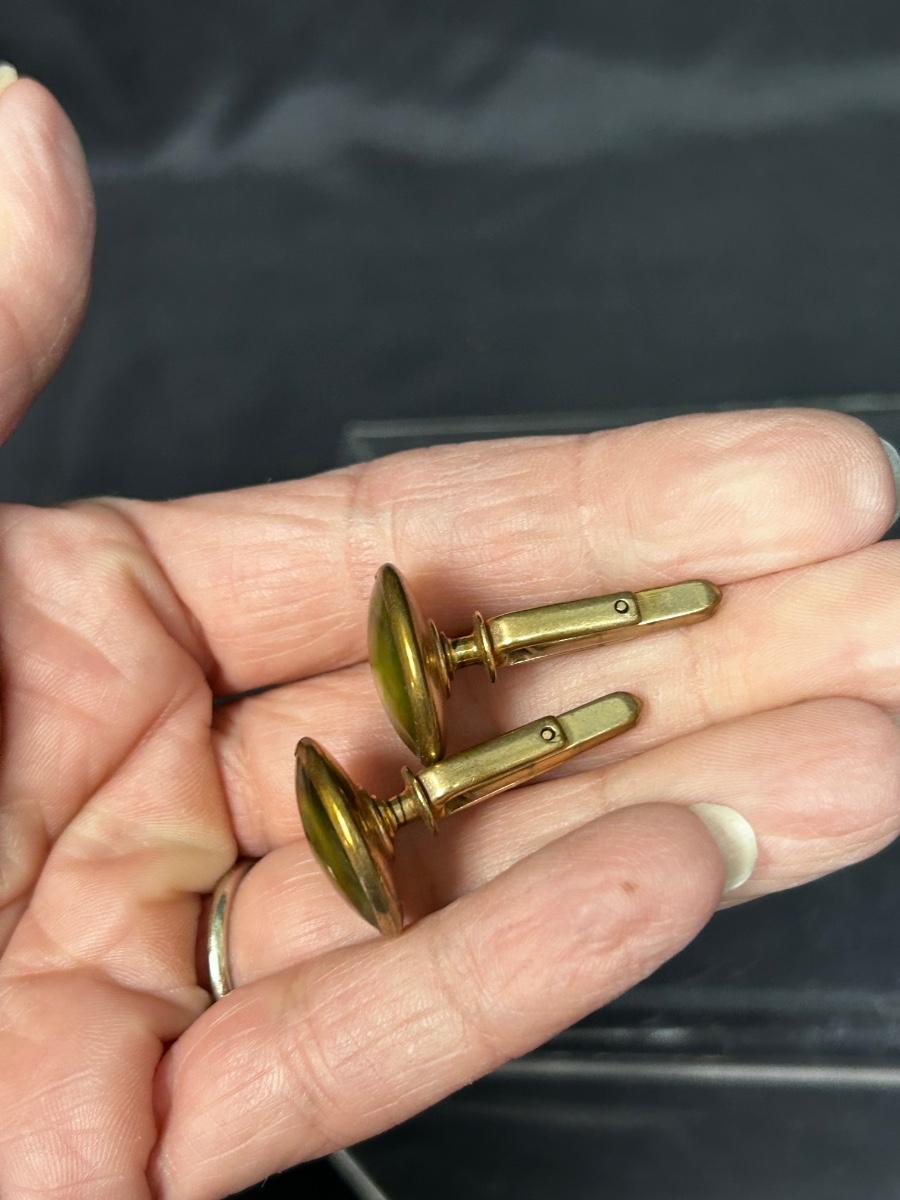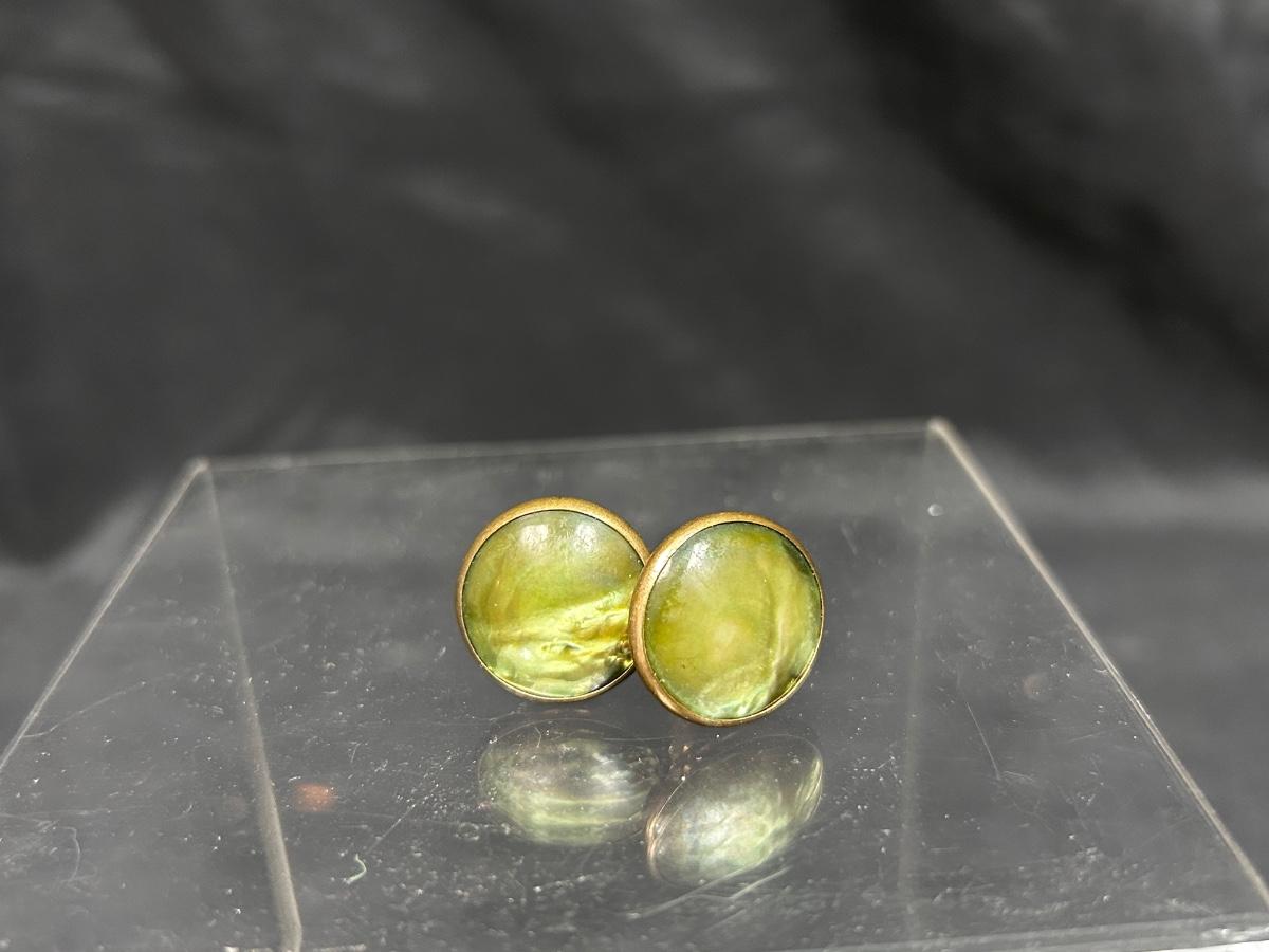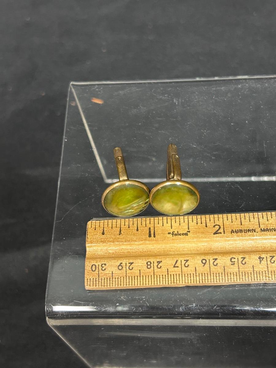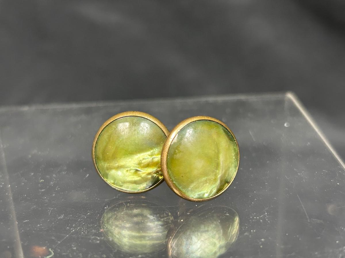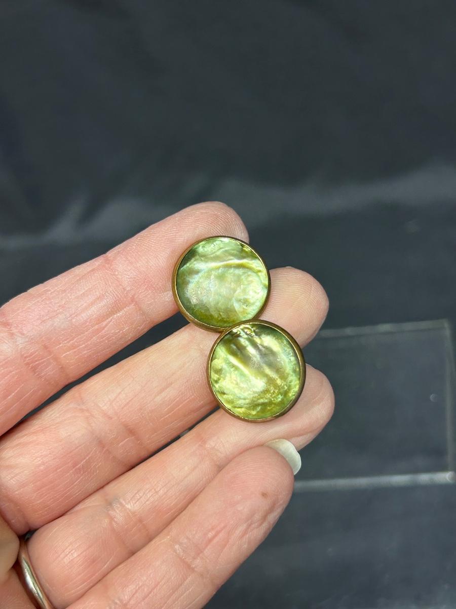 Vintage Gold Tone Cufflinks with Swirled Green Abalone Iridescent Center. In good vintage condition.