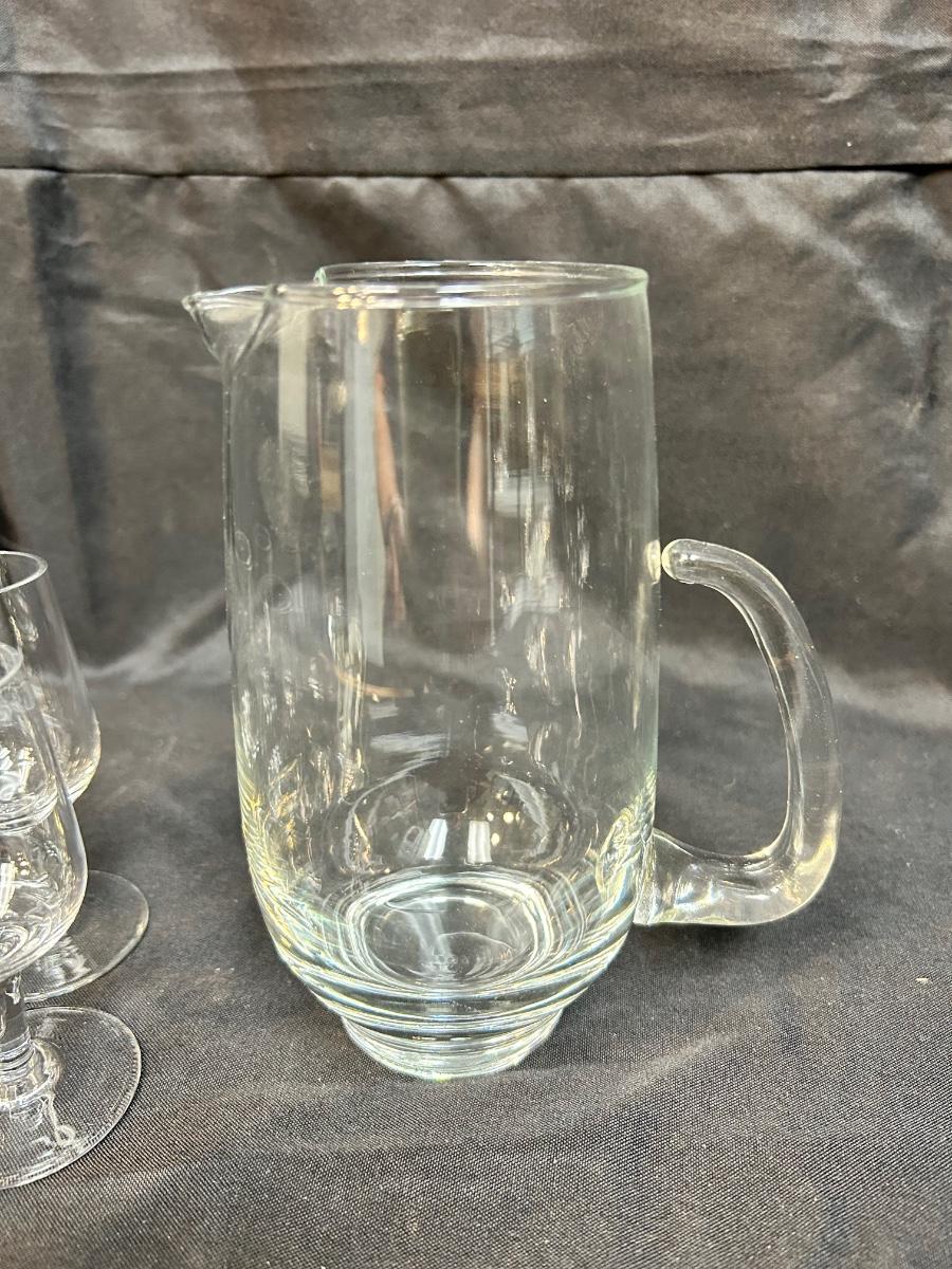 Small Blown Glass Pitcher and Footed Cordial Shot Glasses
