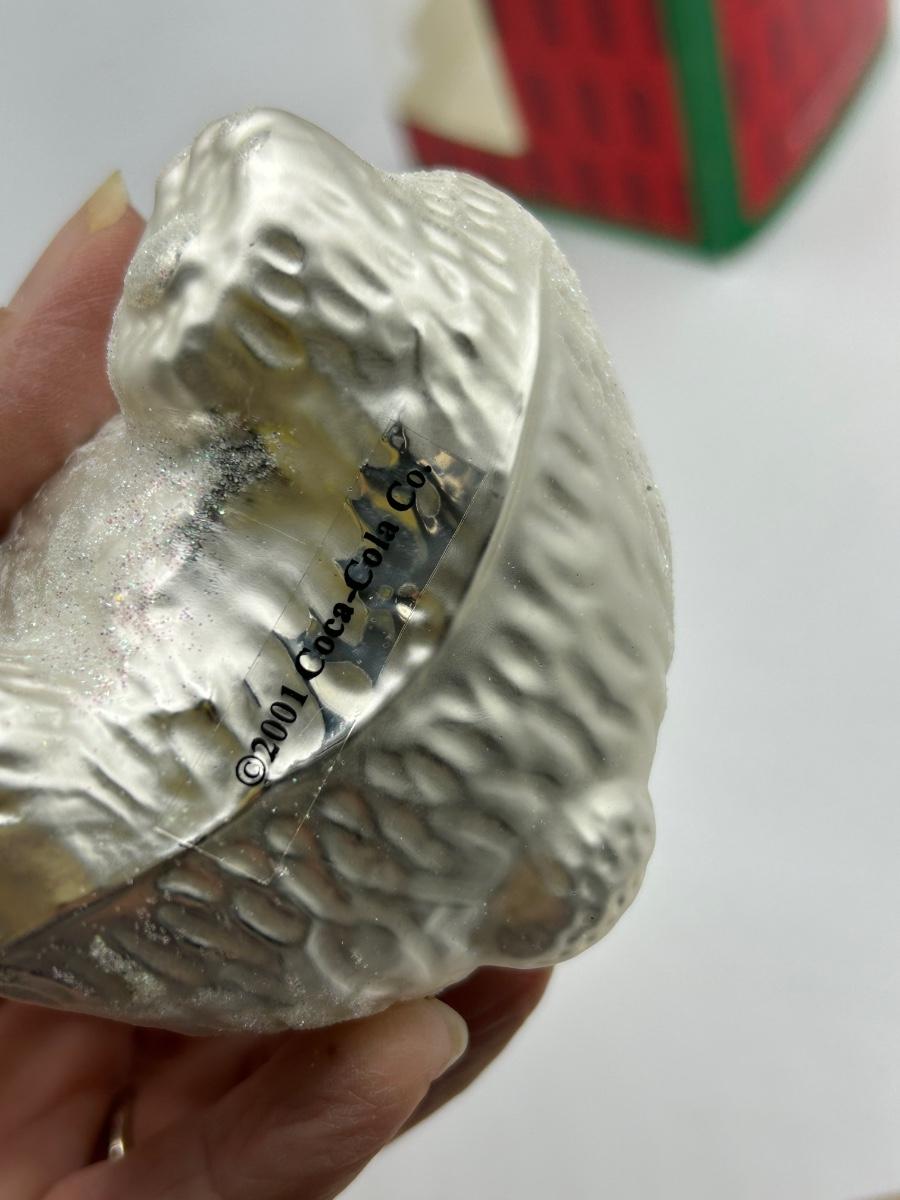 Blown Art Glass Coca Cola Polar Bear Christmas Holiday Ornament with Box
