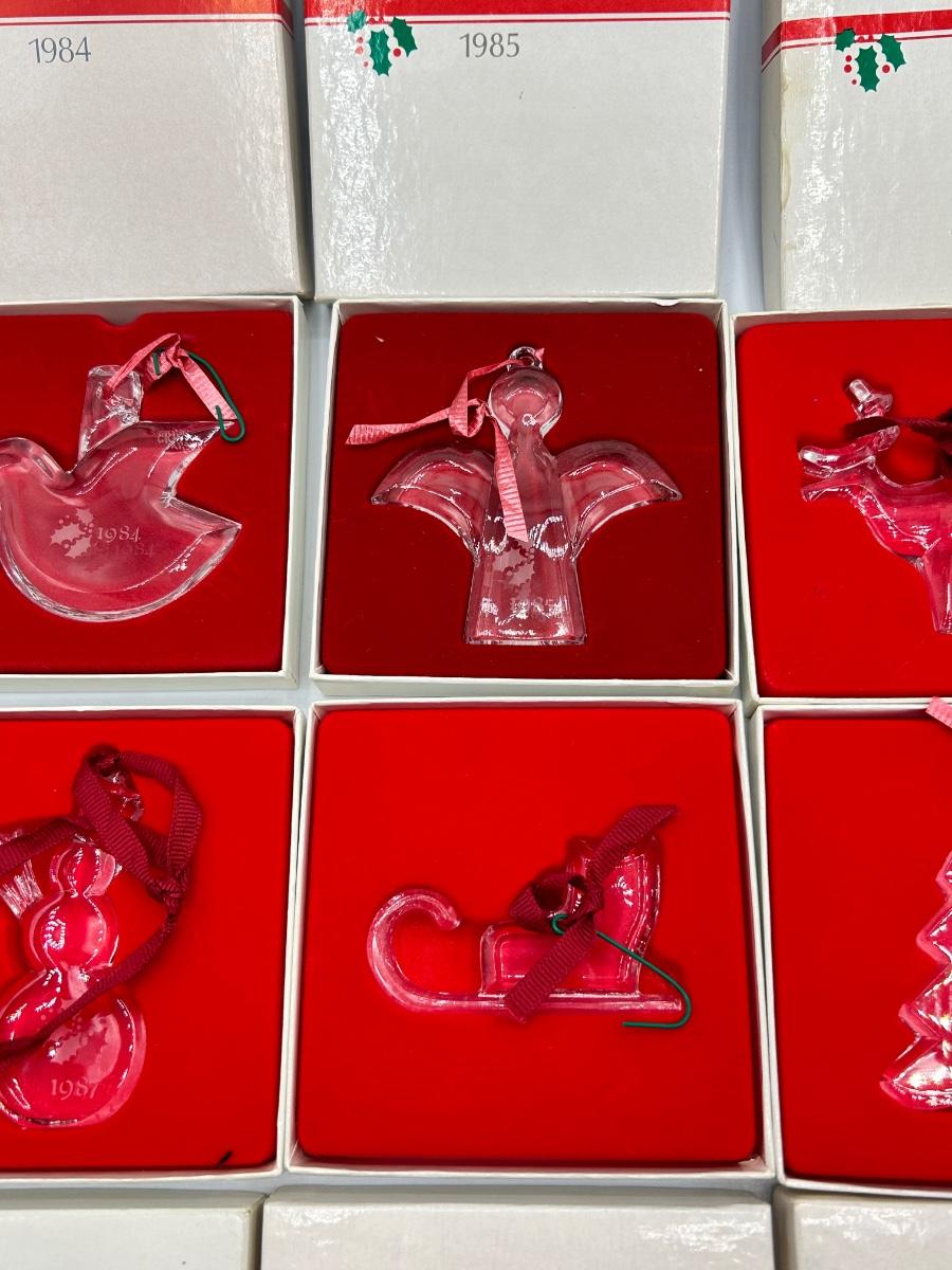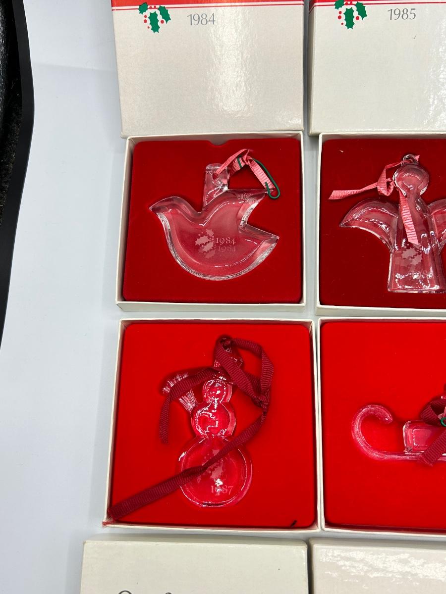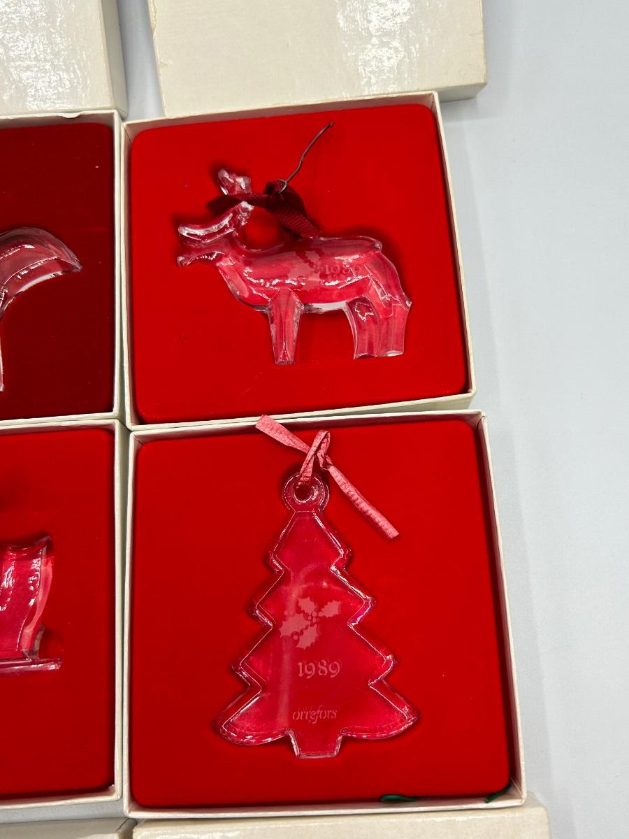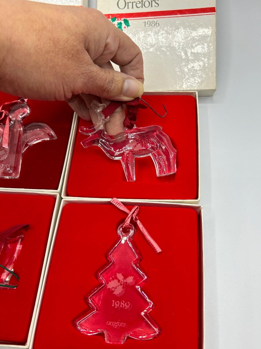 1984-89 Orrefors Limited Edition Dated Crystal Christmas Holiday Tree Ornaments. In good condition. All have original boxes.
