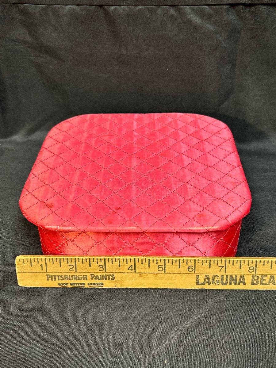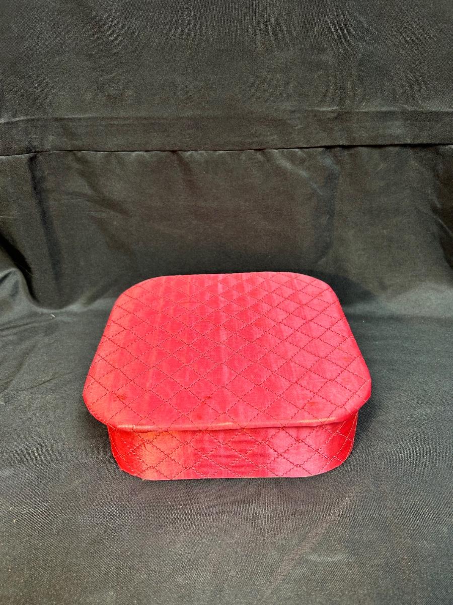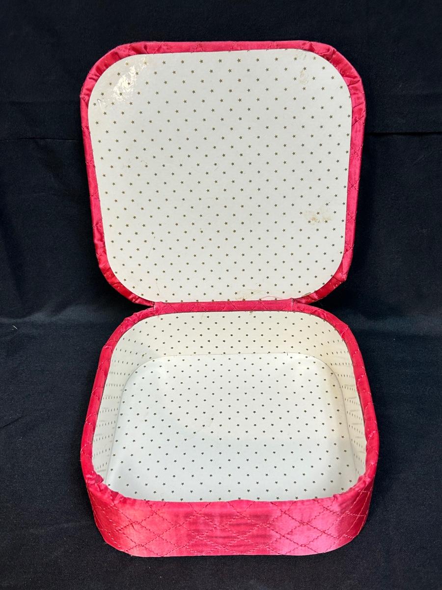 Pink Quilted Rounded Square Hanky Keepsakes Box. Slim for storing in drawers. In good used condition.