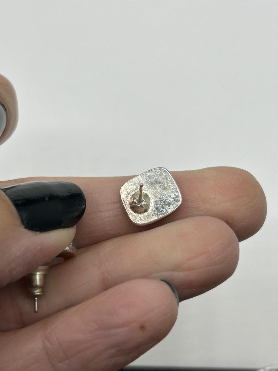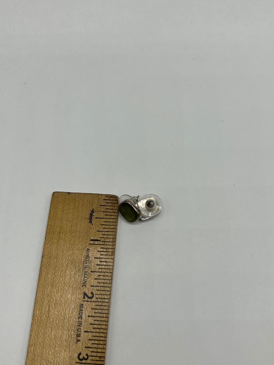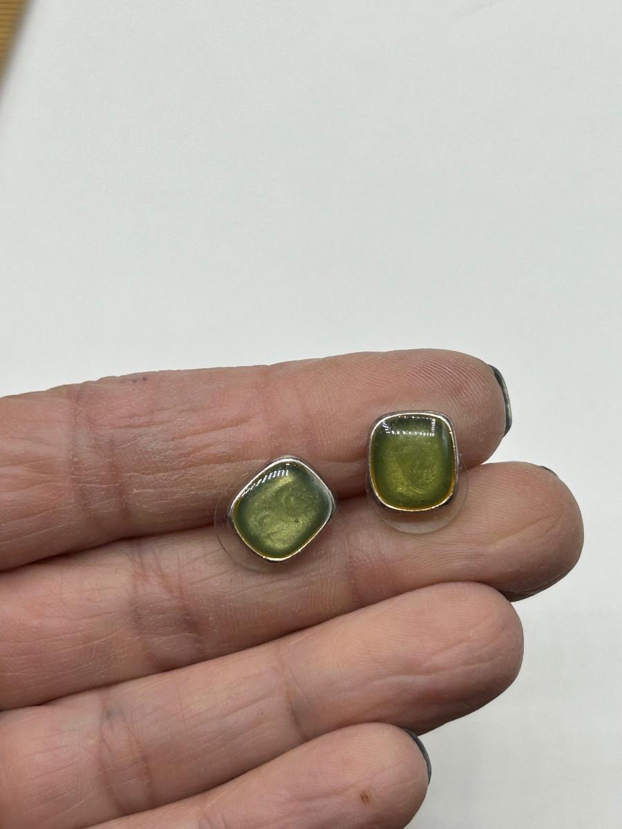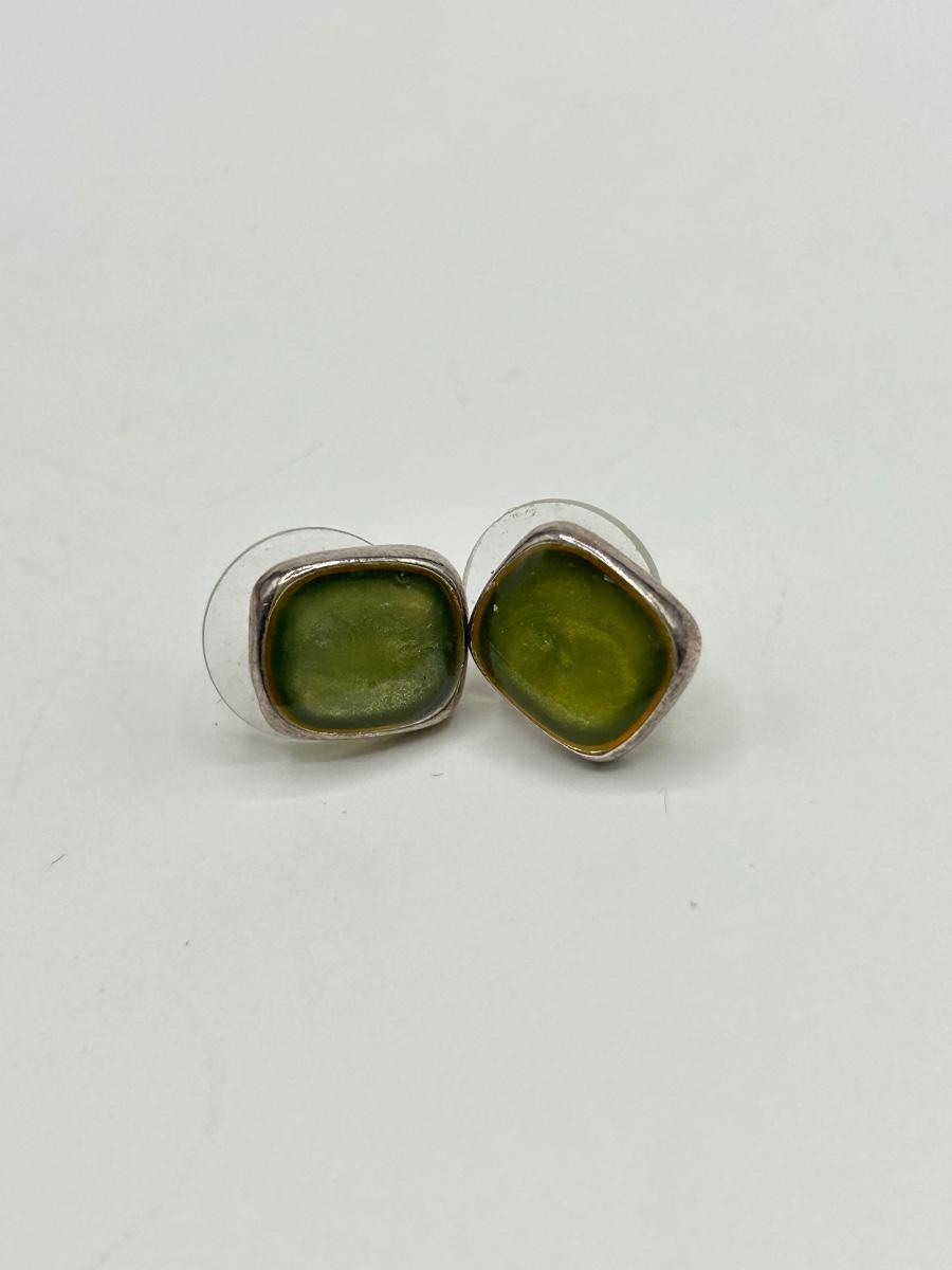 Pair of Small Silver Tone Iridescent Green Enamel Stud Earrings