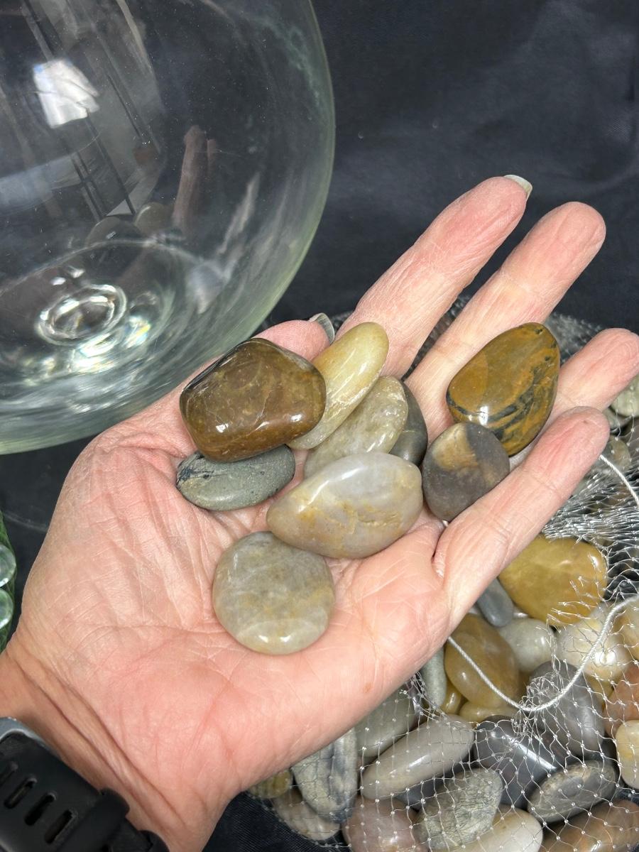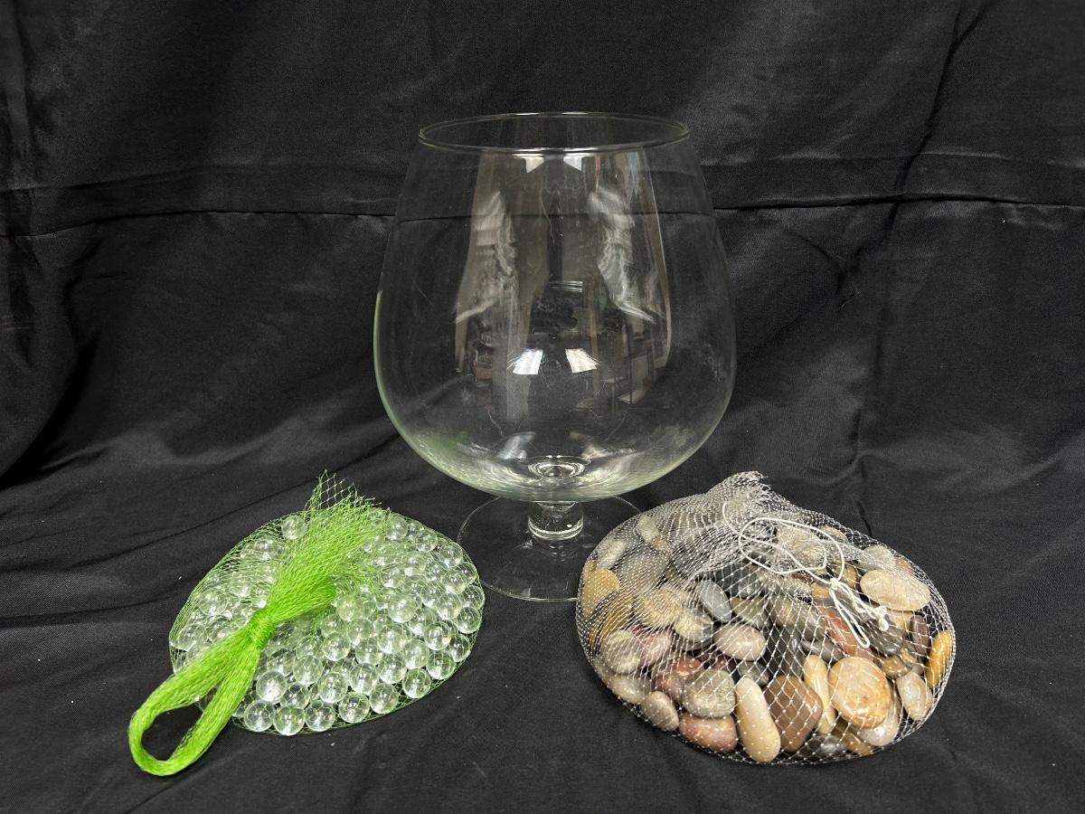 Large Clear Glass Brandy Snifter with Polished Rocks and Marbles for Craft and Decor