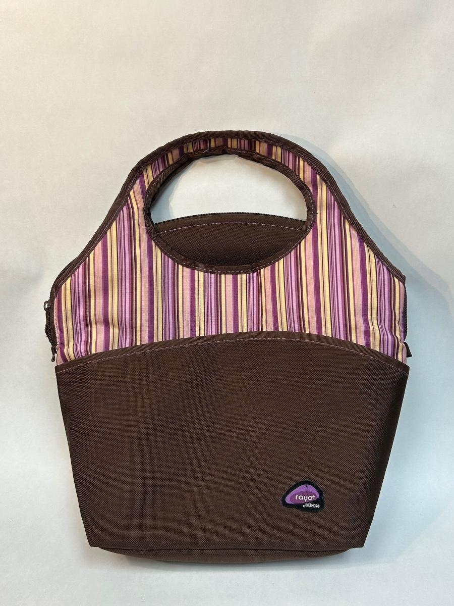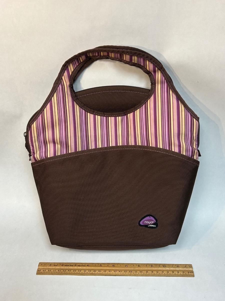 Thermos Brand Soft Sided Lunch Box Bag Brown with Purple Pink Yellow Stripes