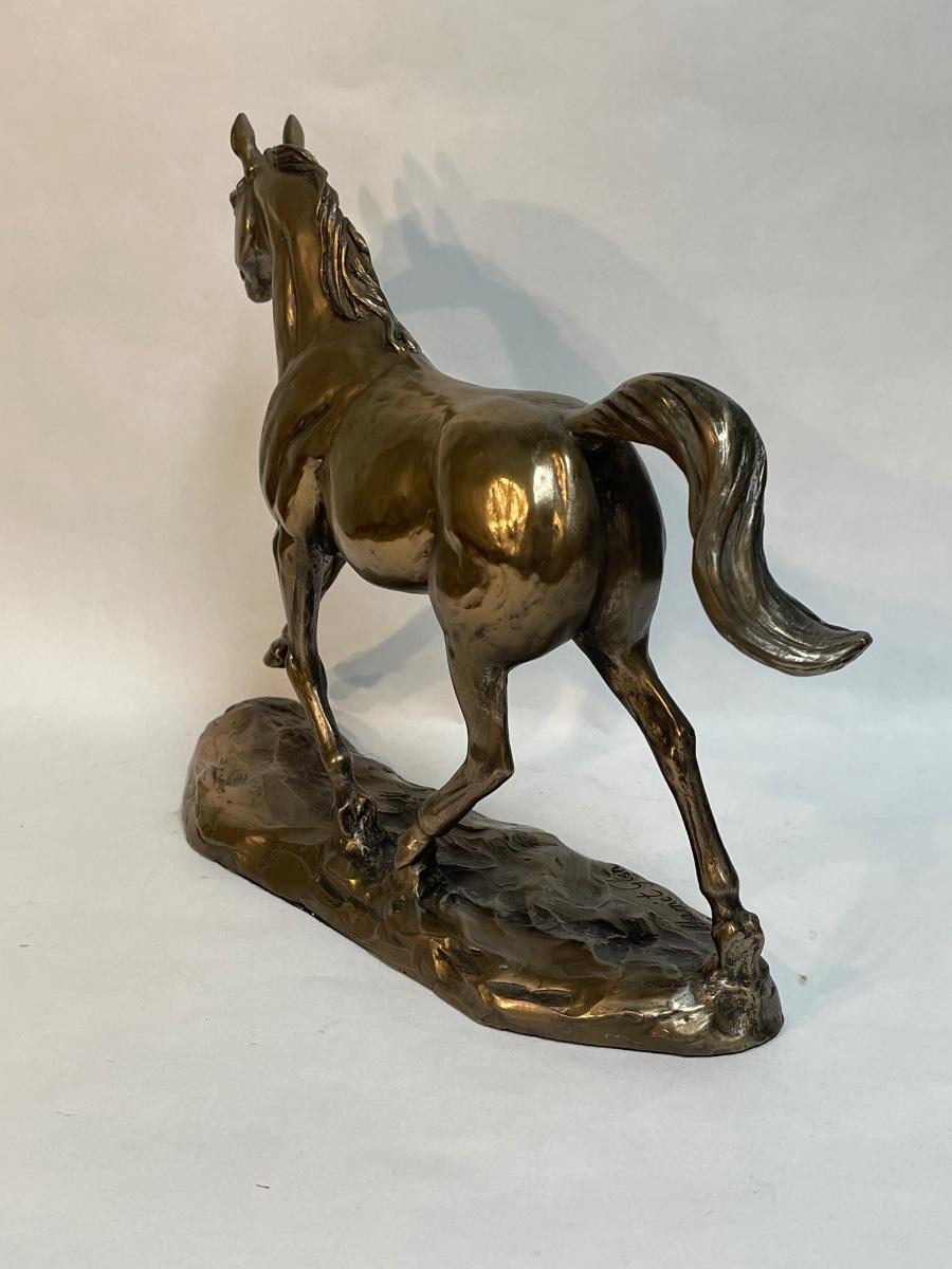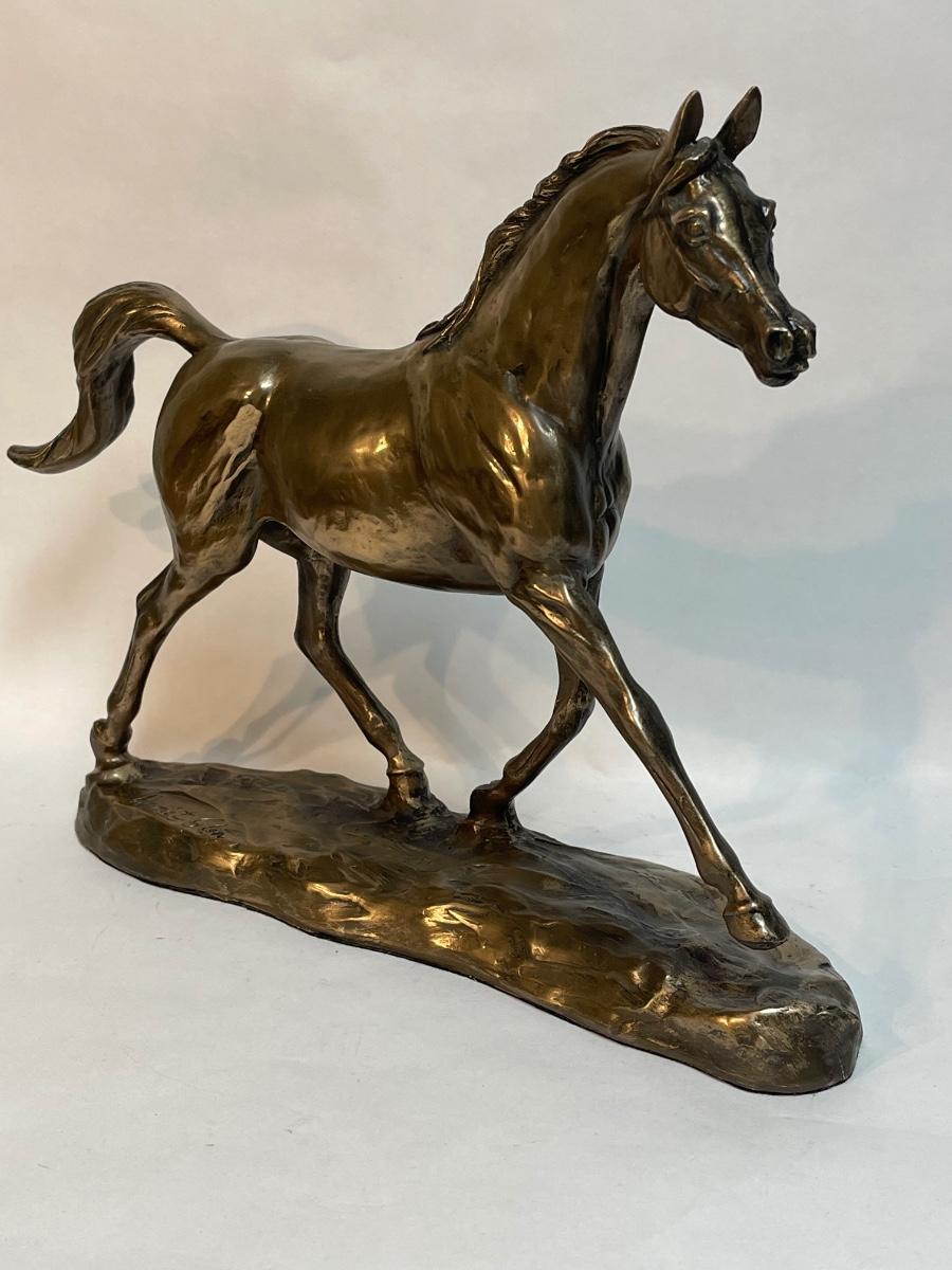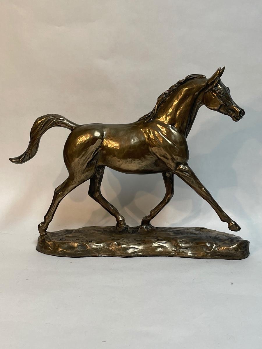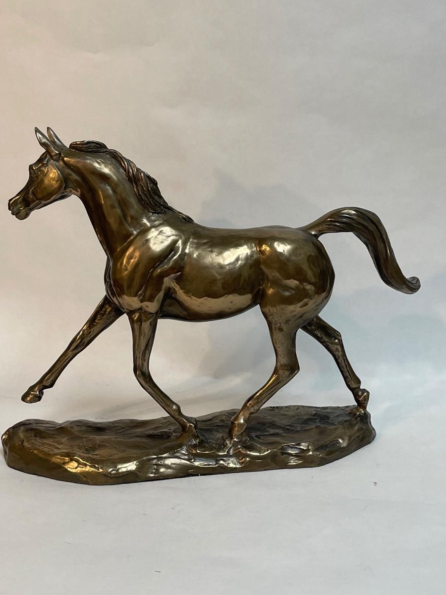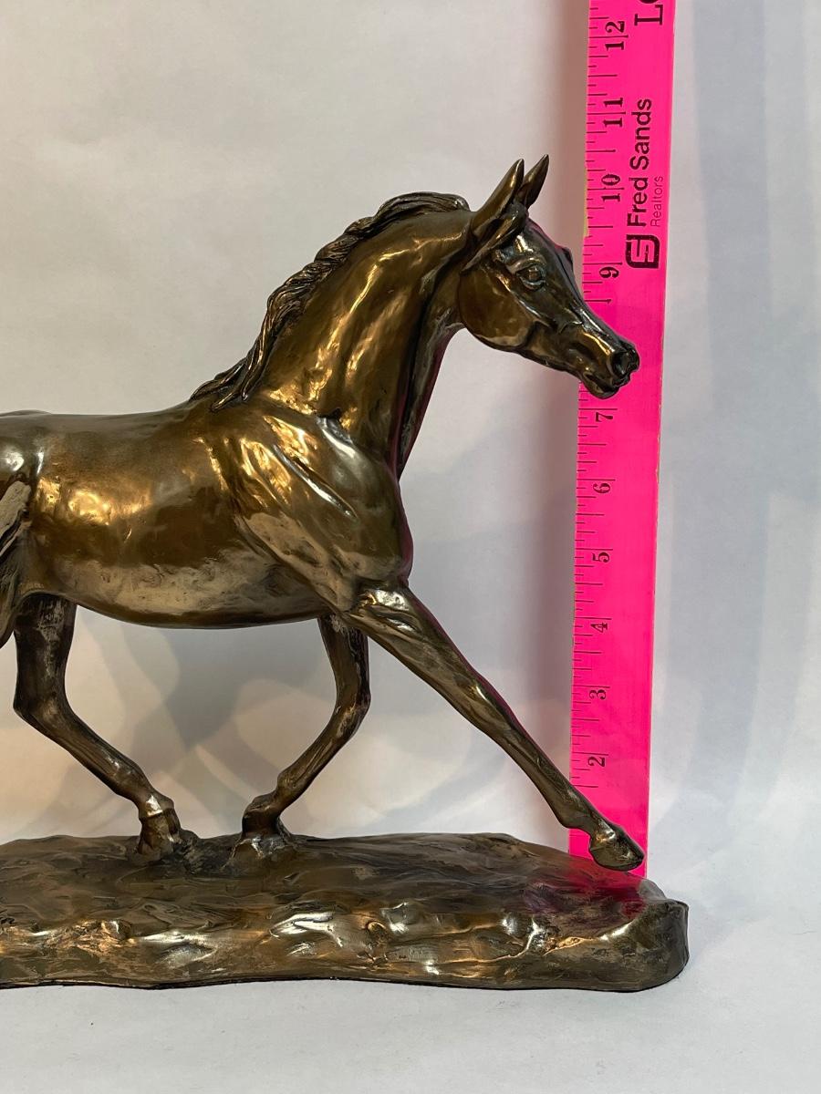 Cold Cast Bronze Resin Galloping Horse Figurine Sculpture by Harriet Glen from England. Title of work is "Elegance Horse Figurine"Approx. 14" long and 10" tall. Great display piece.