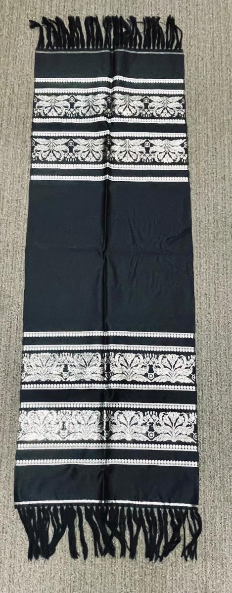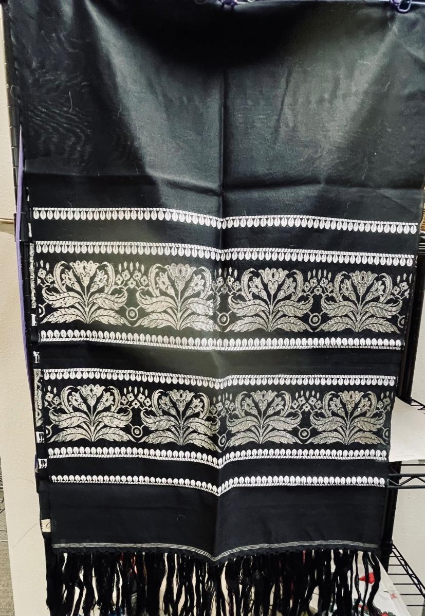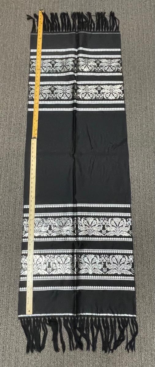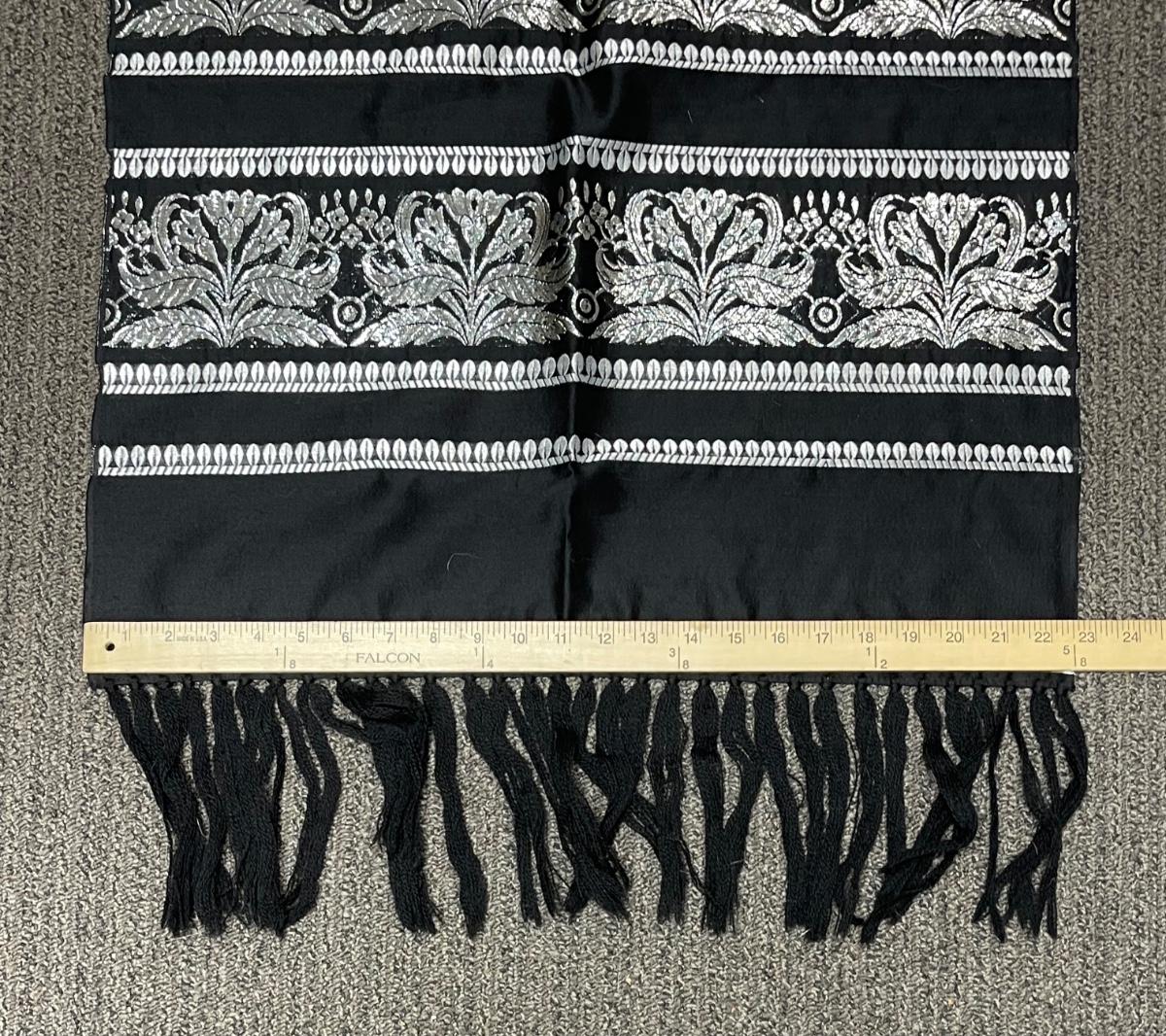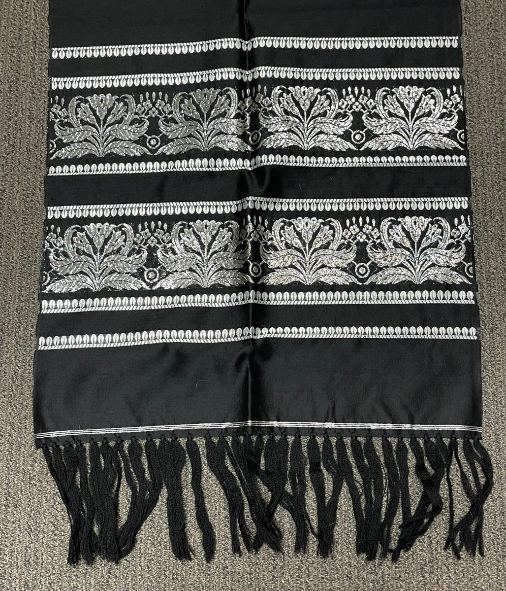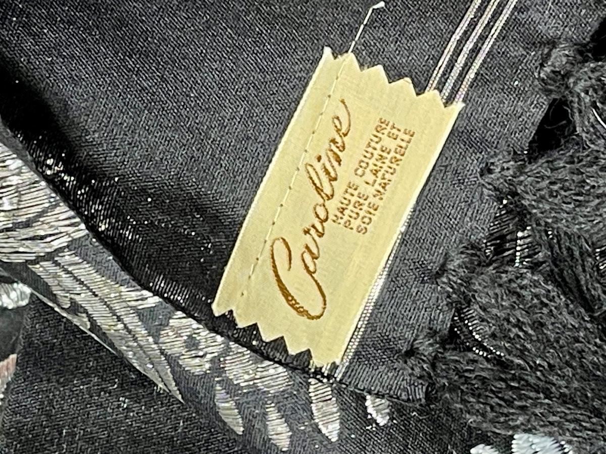 Caroline Haute Couture Black with Silver Embroidered Motif Large Scarf