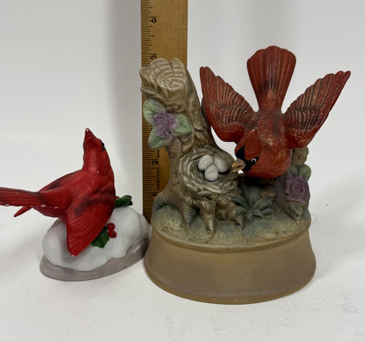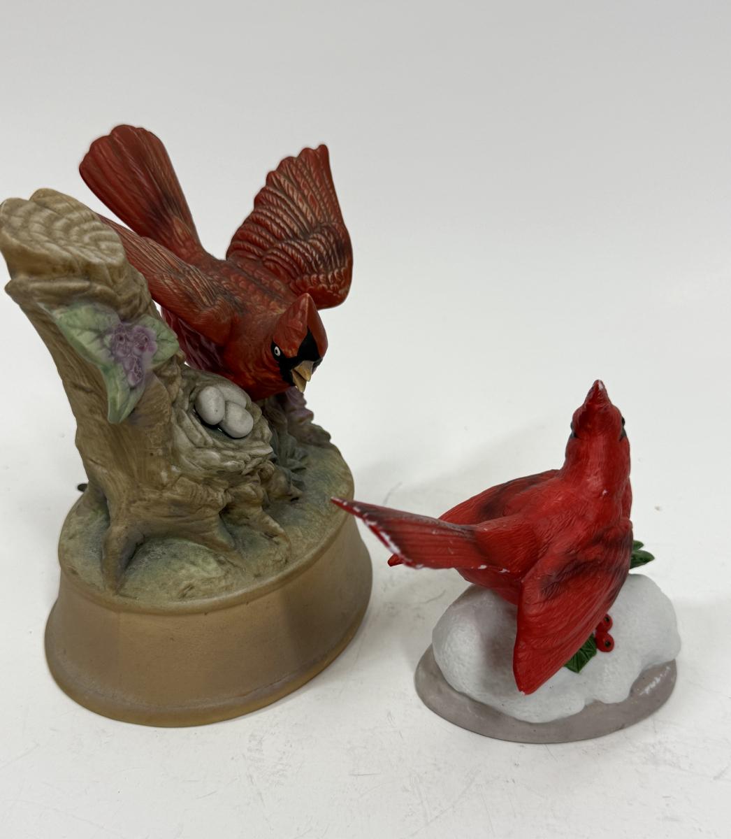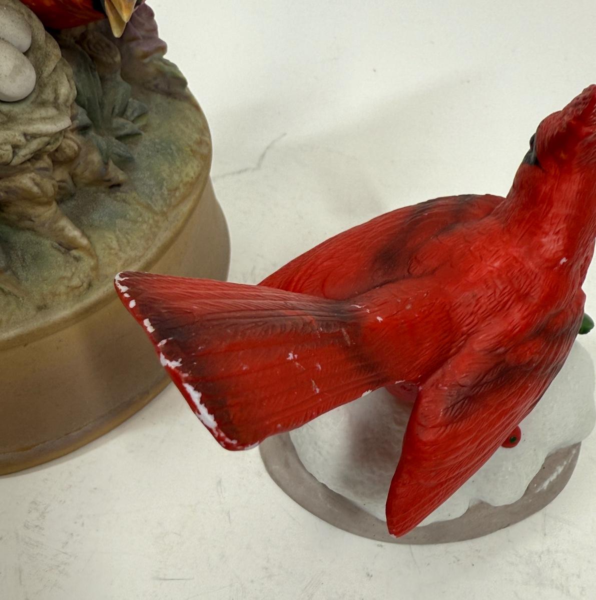 2 Red Cardinal Porcelain Ceramic Bird figurine one with music