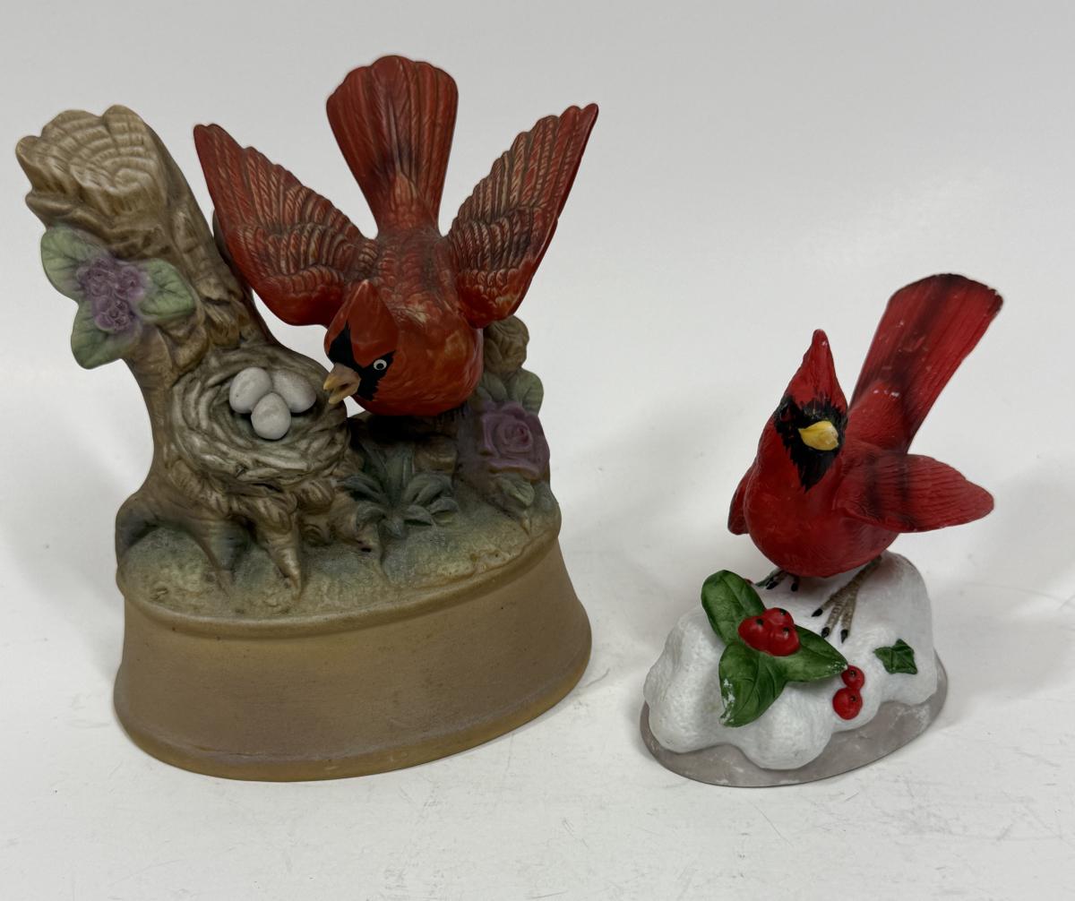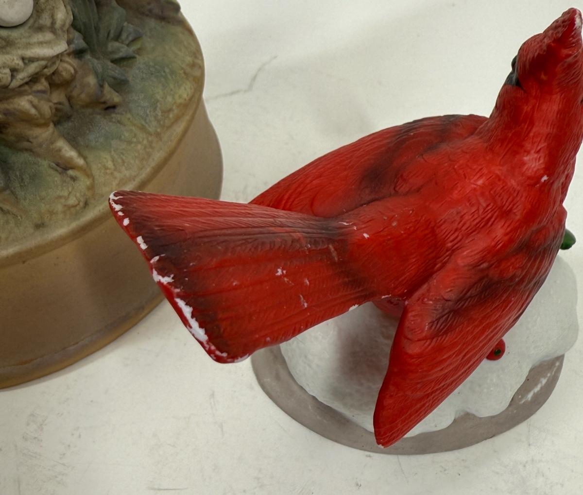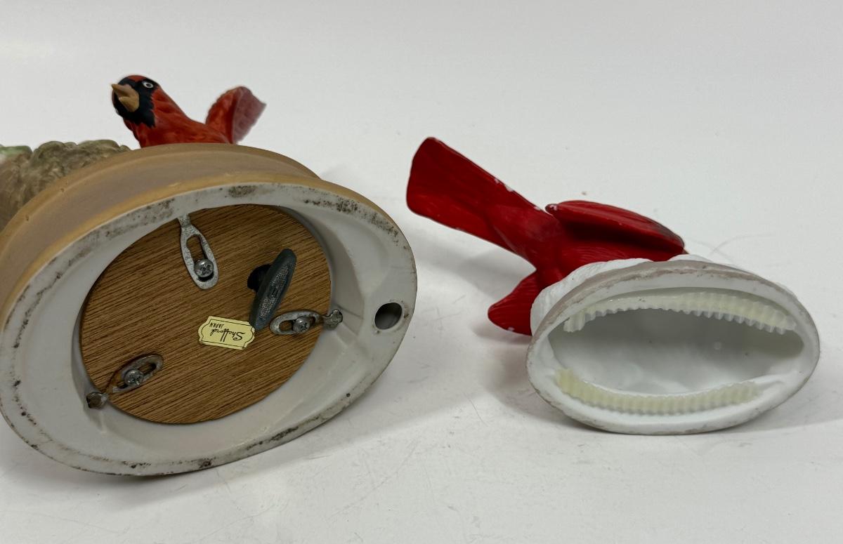 2 Red Cardinal Porcelain Ceramic Bird figurine one with music