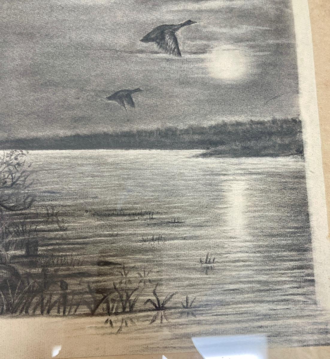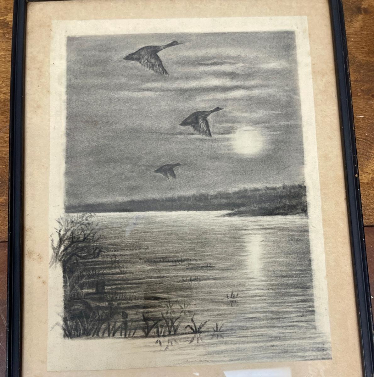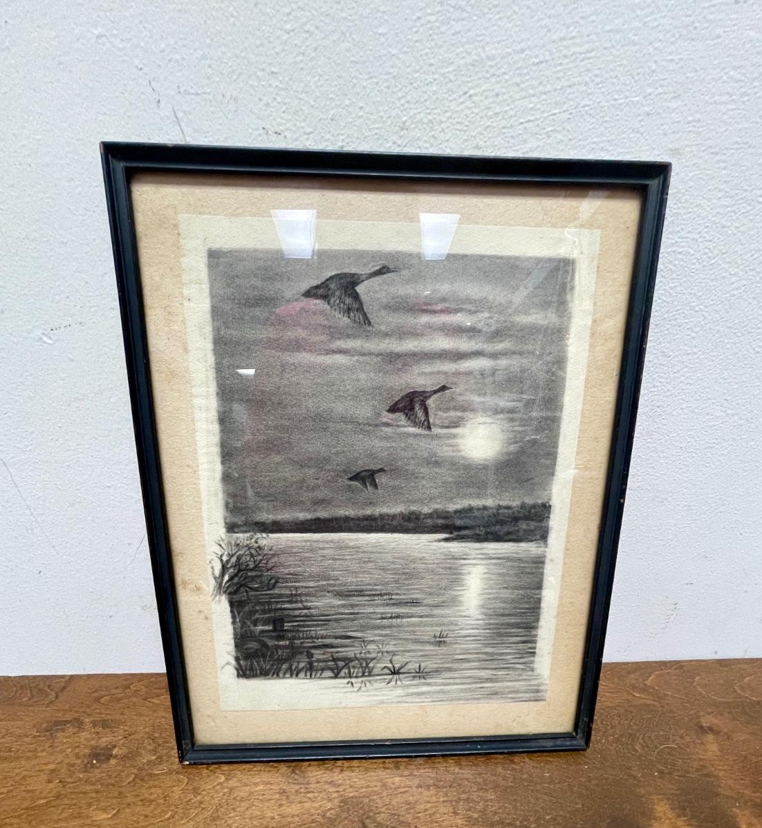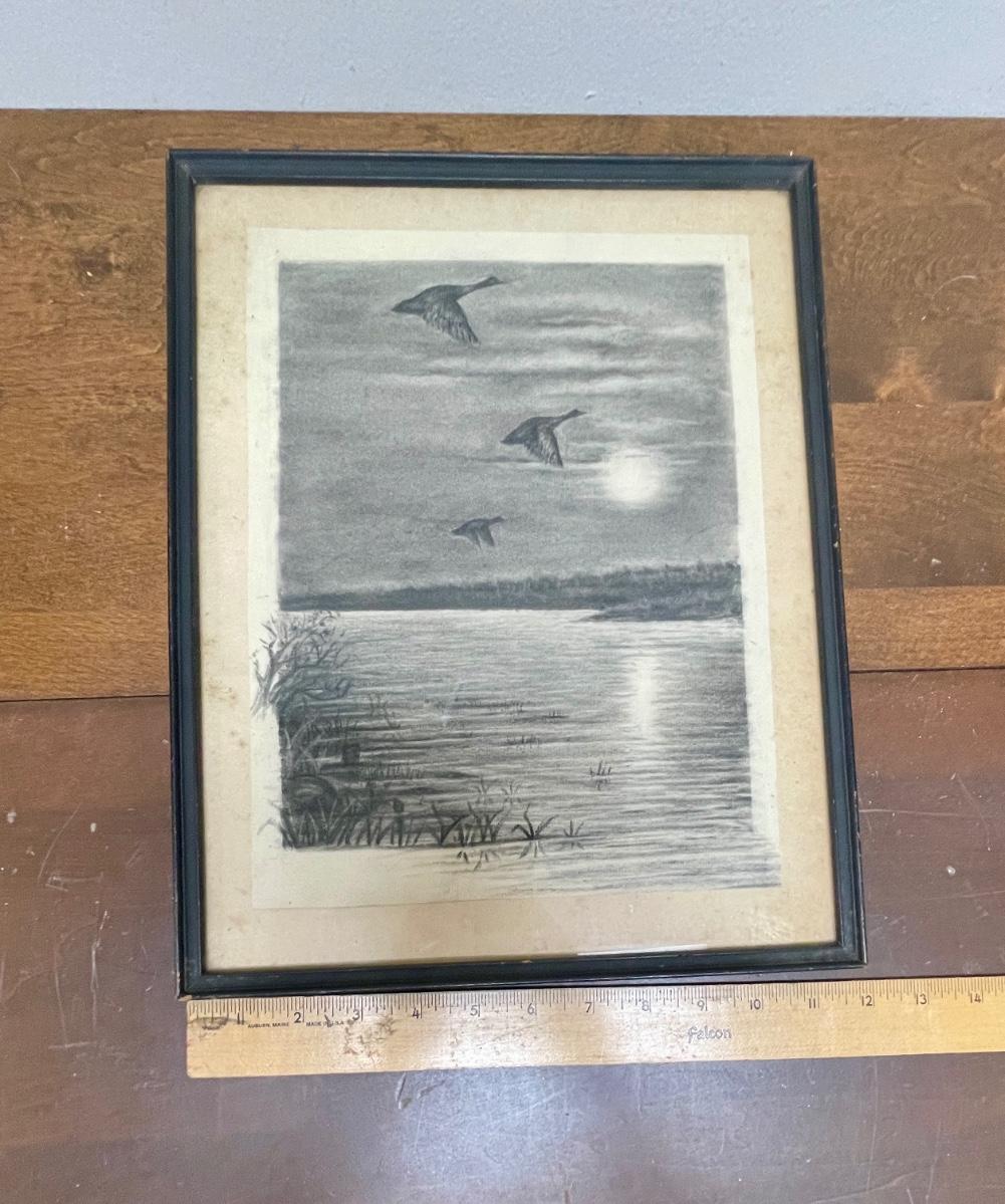 Pencil and Charcoal Framed Art: Ducks Taking Off