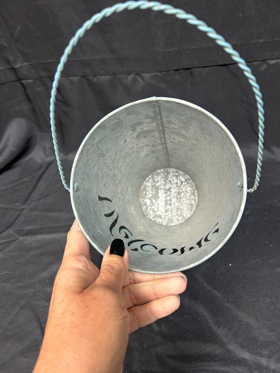 Welcome Cut Out Daisy Painted Metal Bucket Planter Garden Yard Art