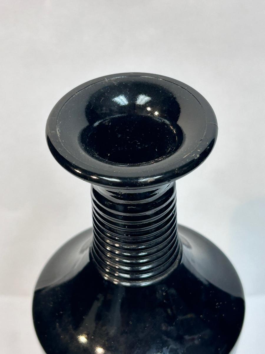 Vintage Black Glass Decanter Bottle Vase Greek Roman Man Solider with Spear