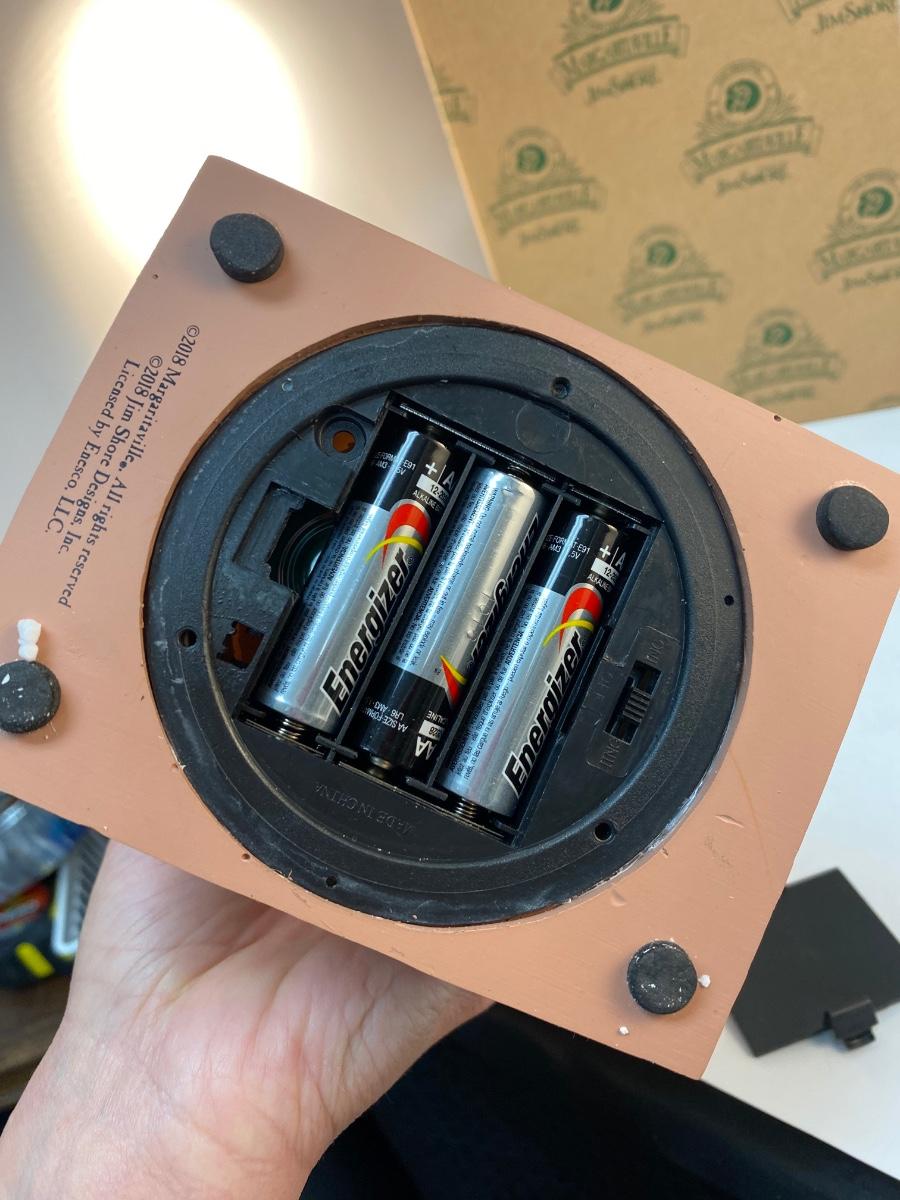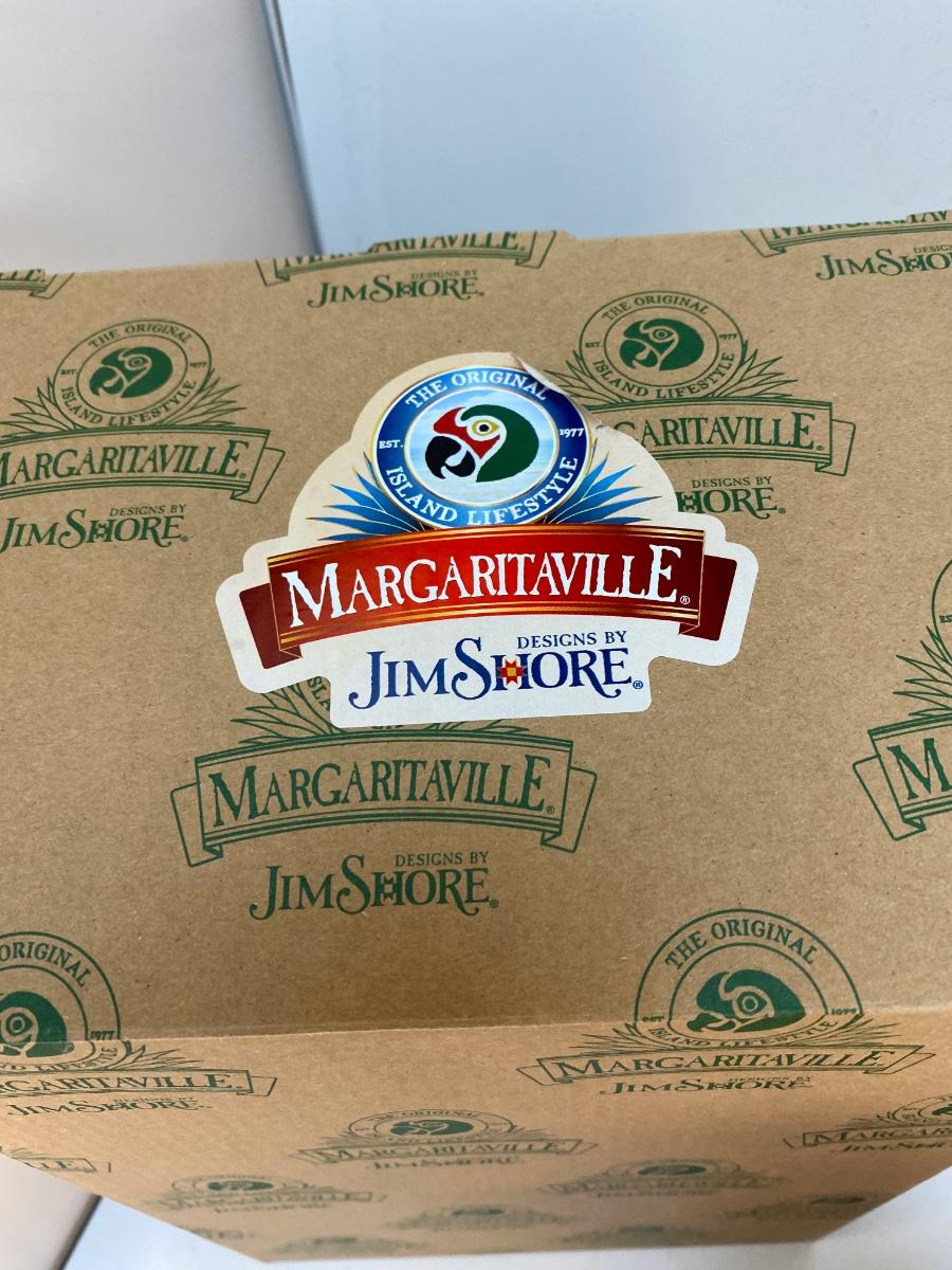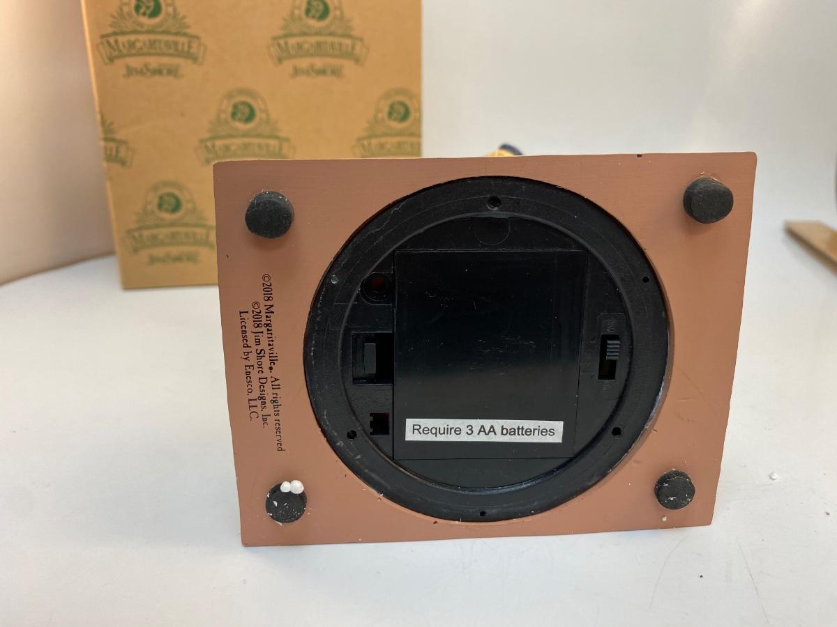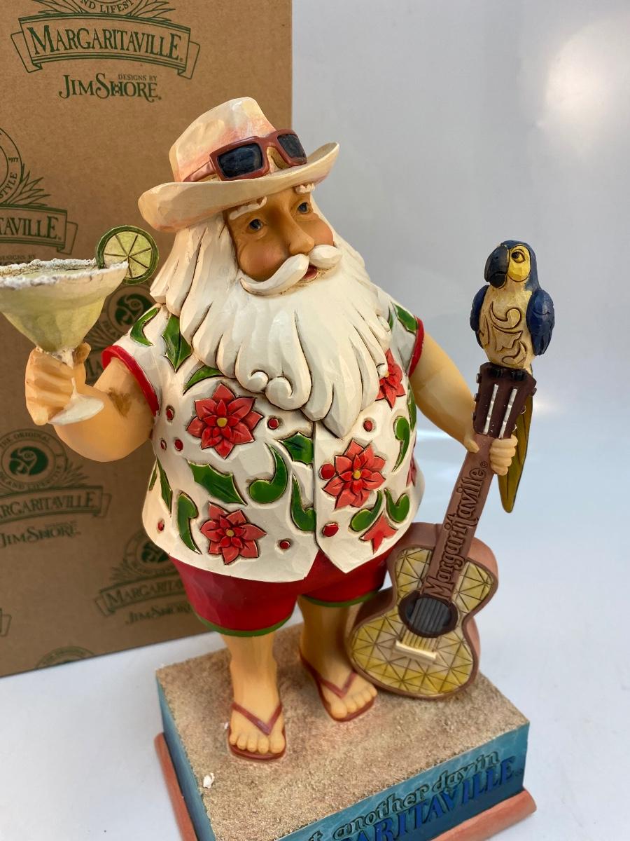 Jim Shore Margaritaville Santa Claus with Drink and Parrot Figurine Musical with Box. Looks great, displays nice. Plays Margaritaville but is untested, needs new batteries, terminal is clean no corrosion. Comes with original box.