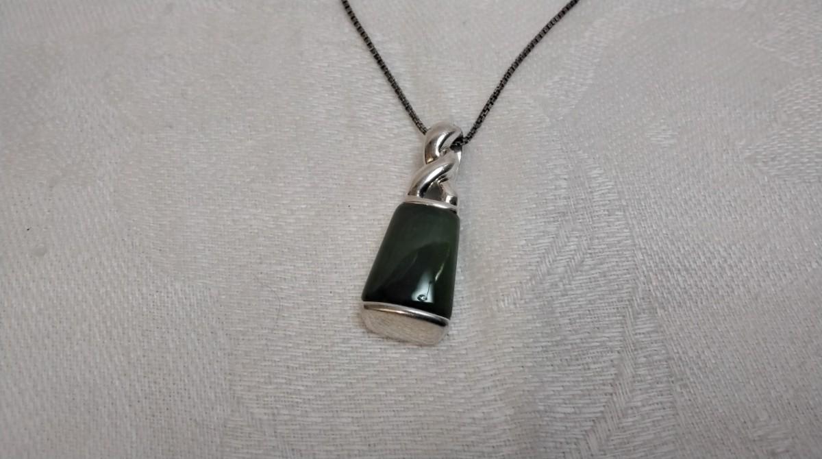 A beautiful piece of jade. It is hallmarked but not one we could find, It's probably made by an artesan.