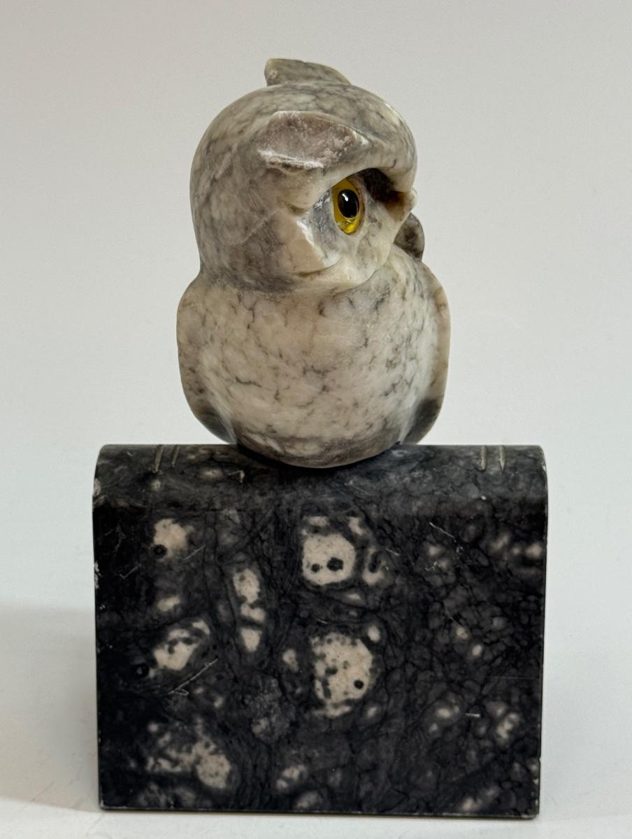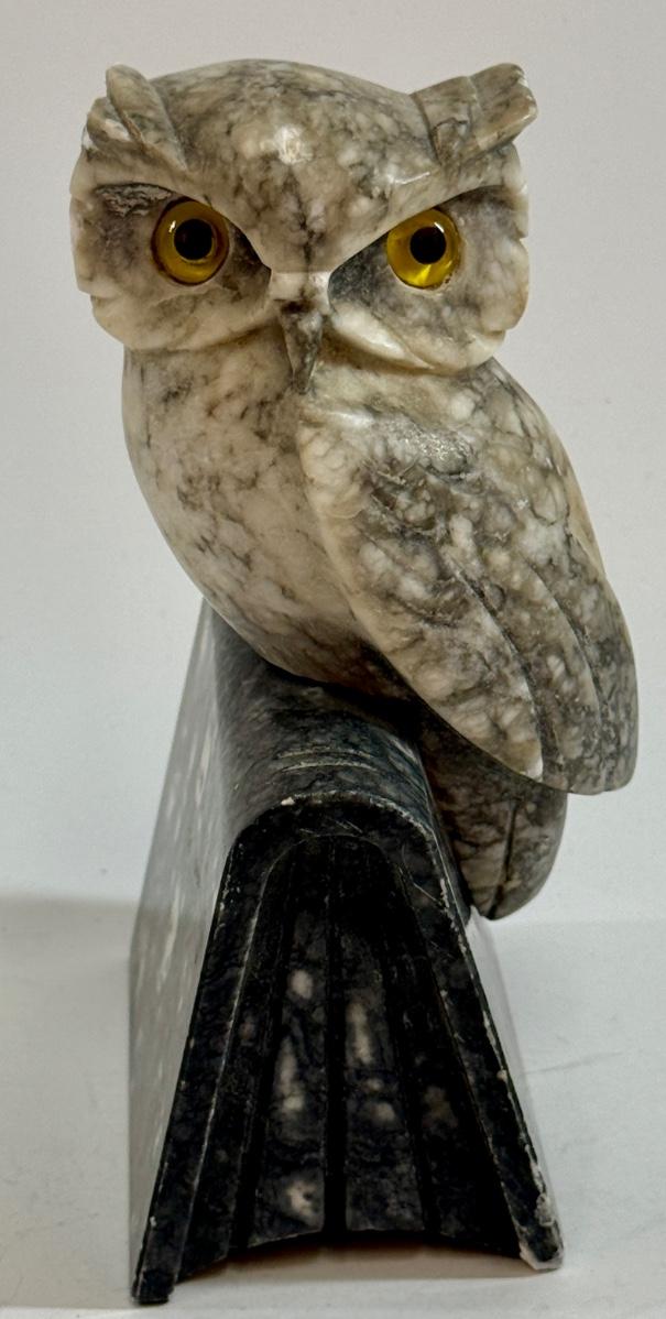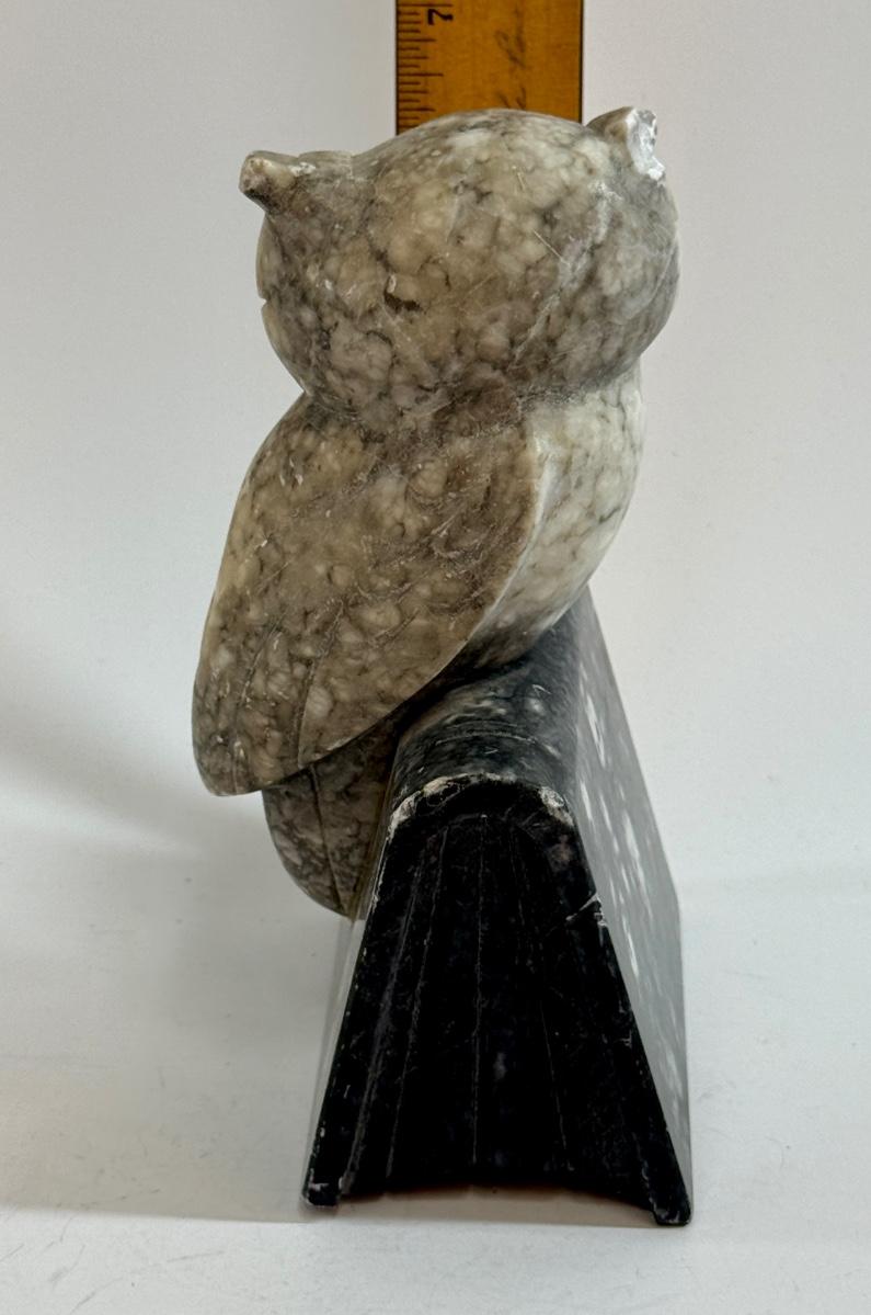 Vintage Alabaster Owl Bookend Hand Carved with Glass Eyes Mid Century style MCM
