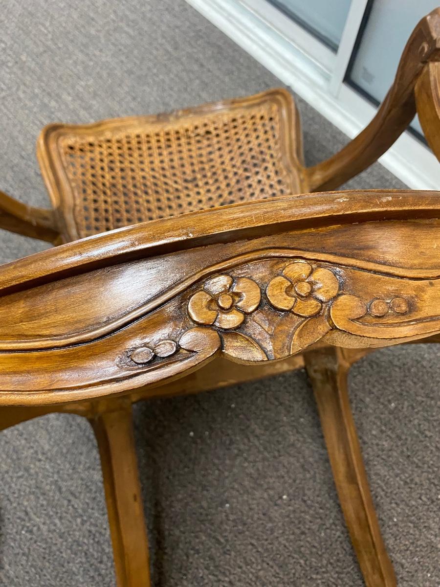 Vintage Retro Cane Back & Seat Armchair Captains Side Chair with Cushion